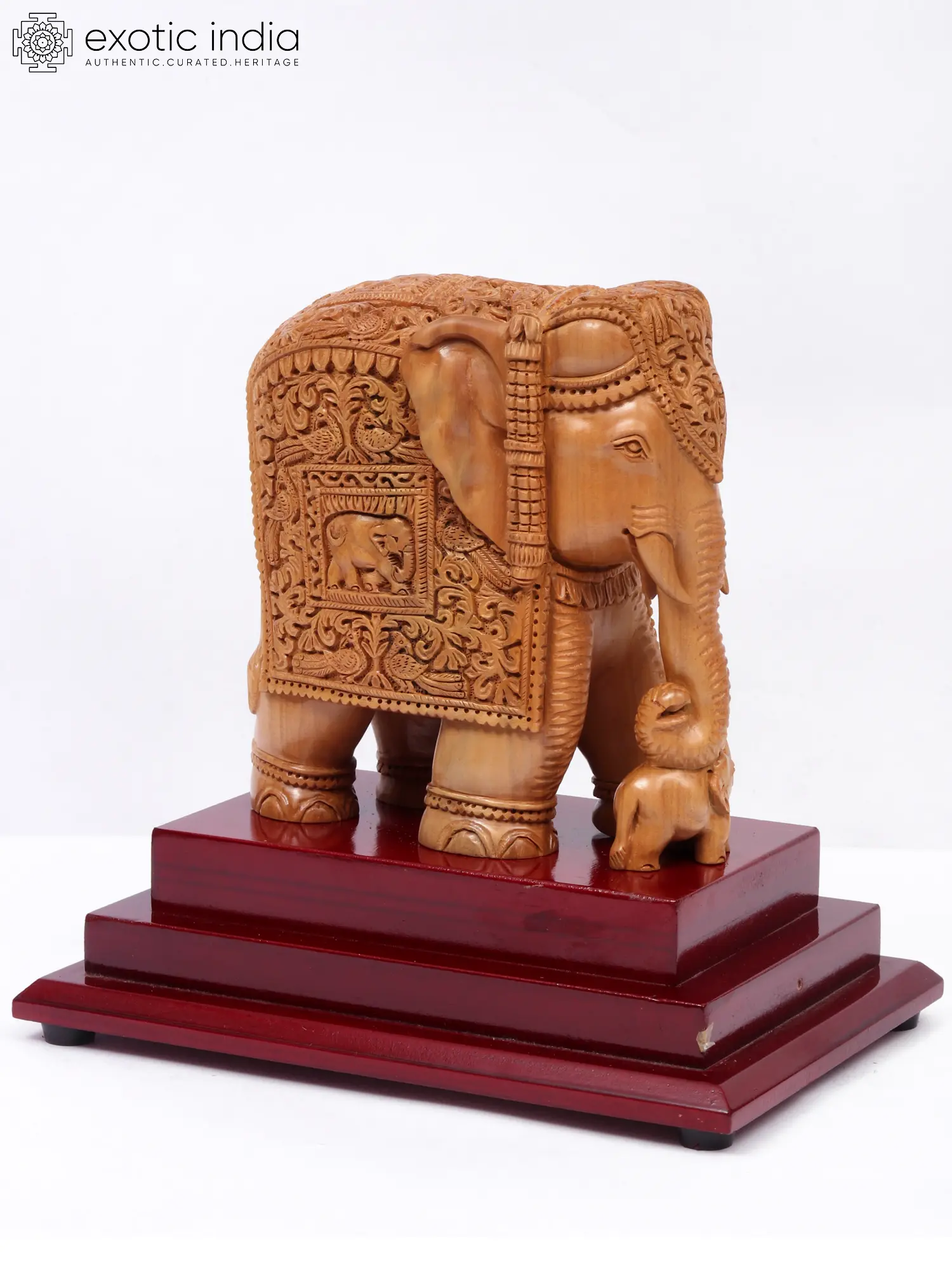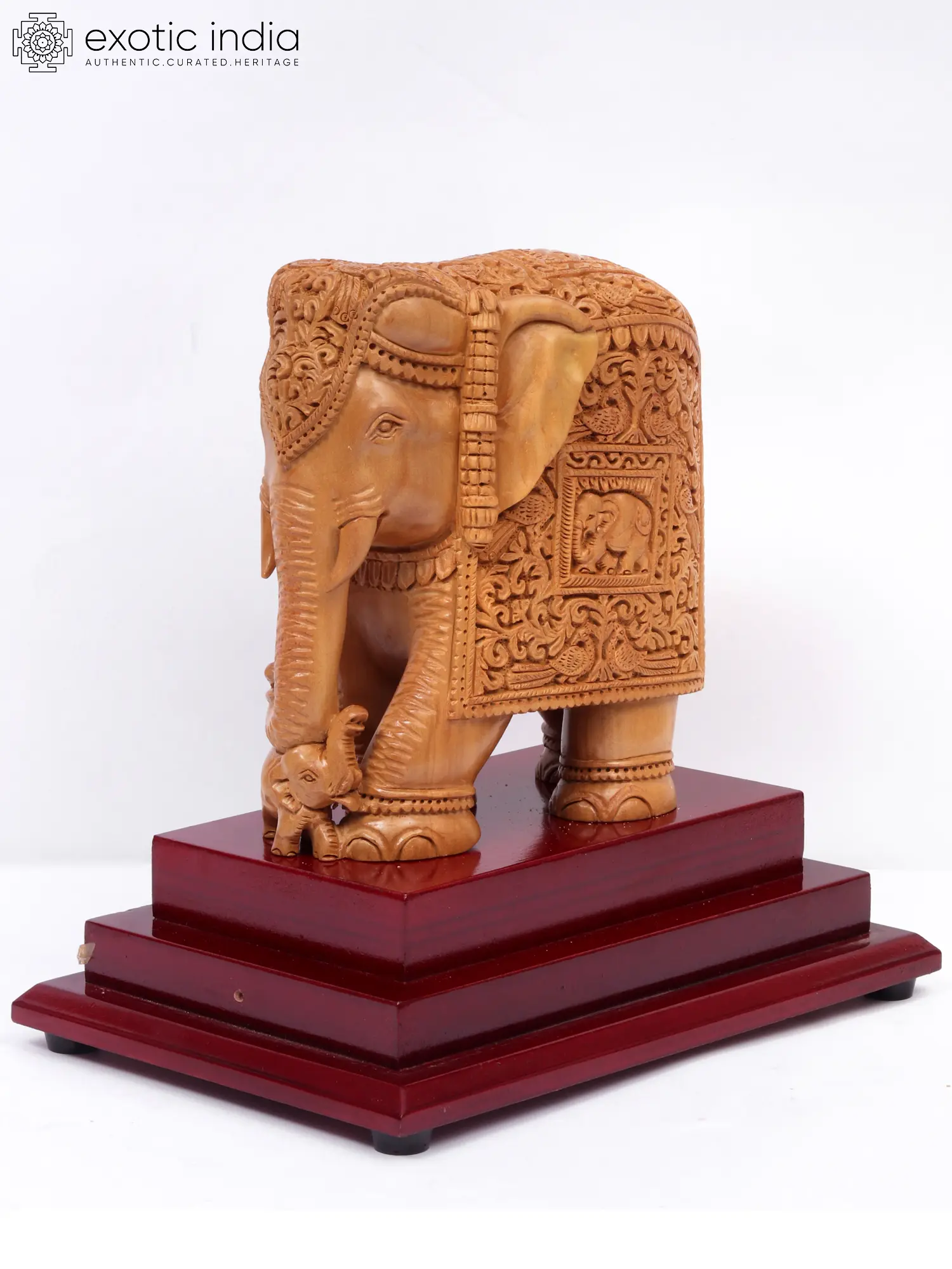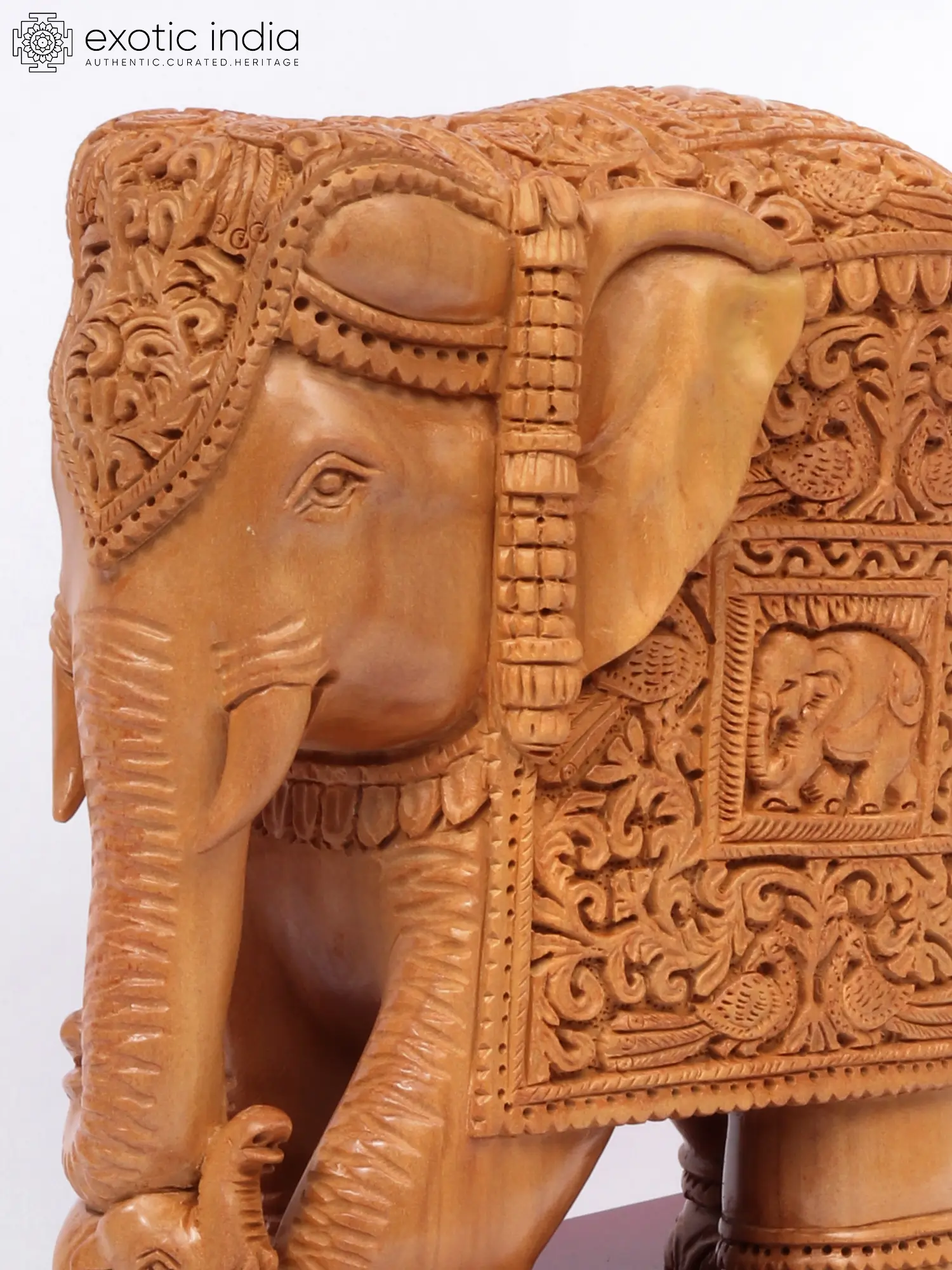 12" Beautiful Wood Idol Of Ambari Elephant Ride With Hand Carving
