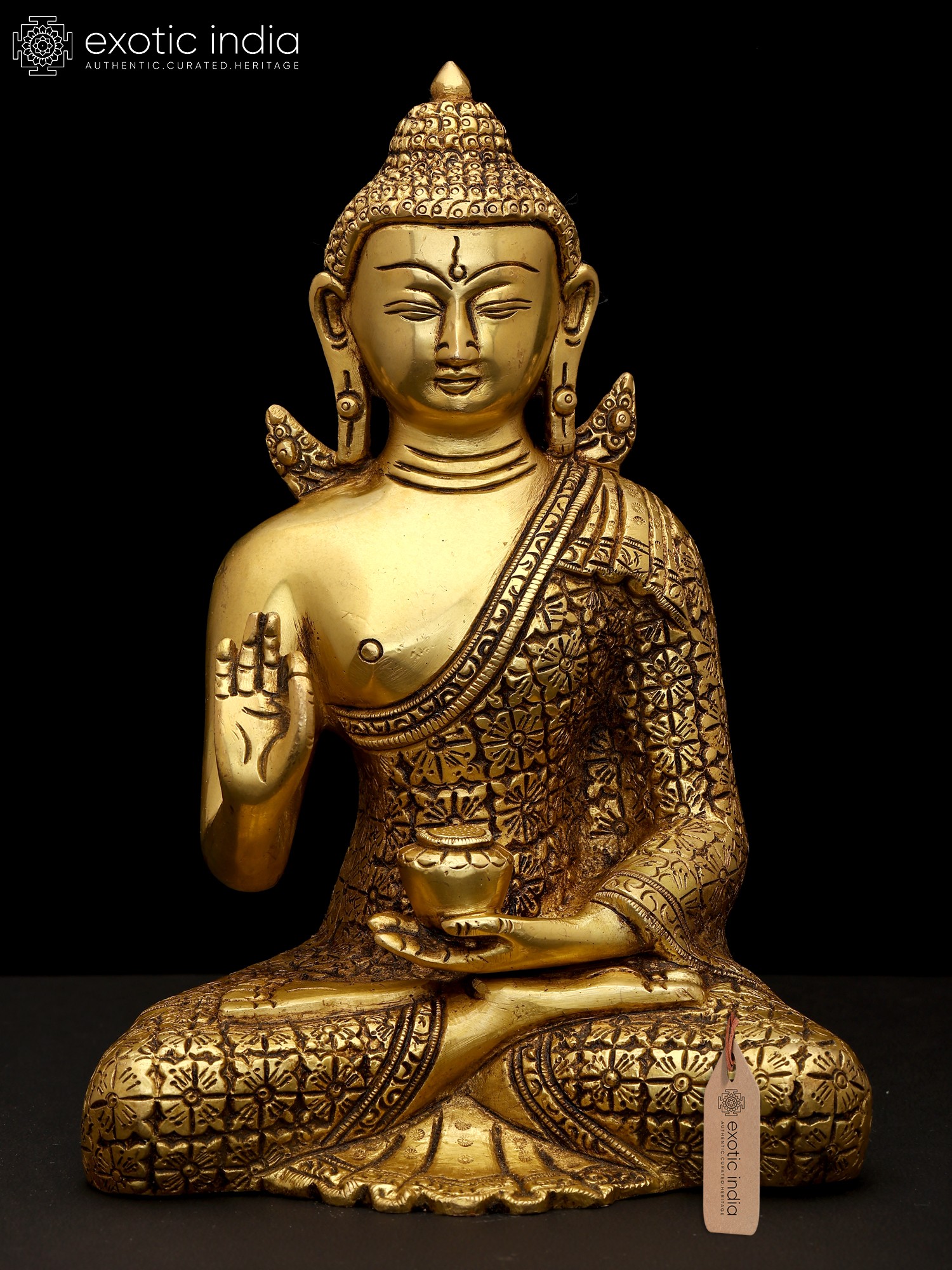 7" Sitting Lord Buddha in Vitark Mudra | Brass Statue
