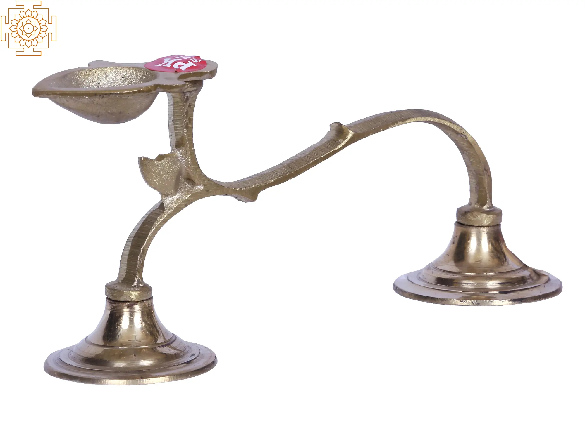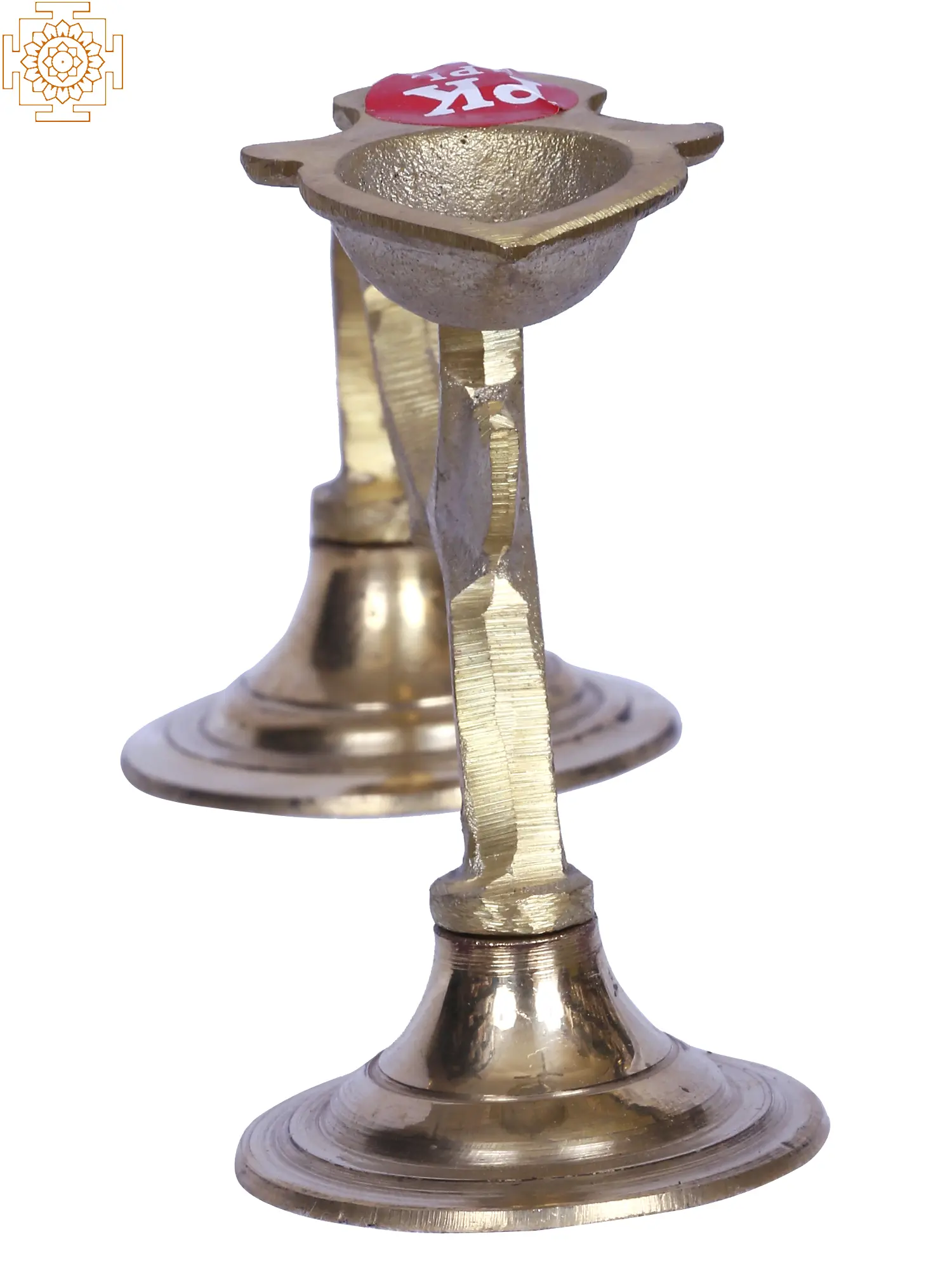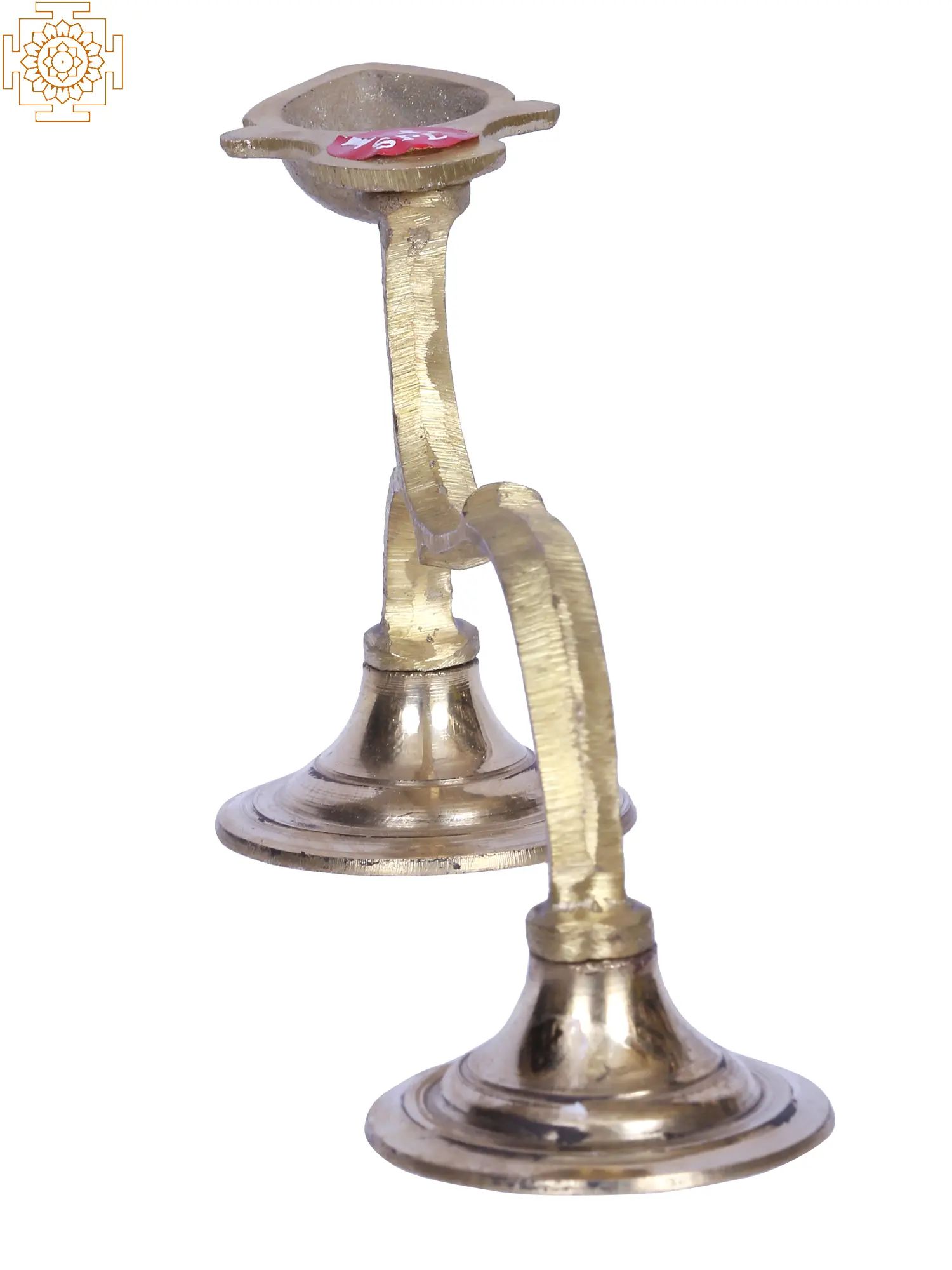 This brass portable Arti Diya is an instrument for offering the almighty a soft glow of devotion. When lighted, this single-wick Camphor Aarti Diya provides the auspicious warmth of camphor as well as its delicate aroma to a place. It is made with devotion and features a robust stand with two legs. The Diya is a spiritual symbol, embodying old worship and reverence practices.