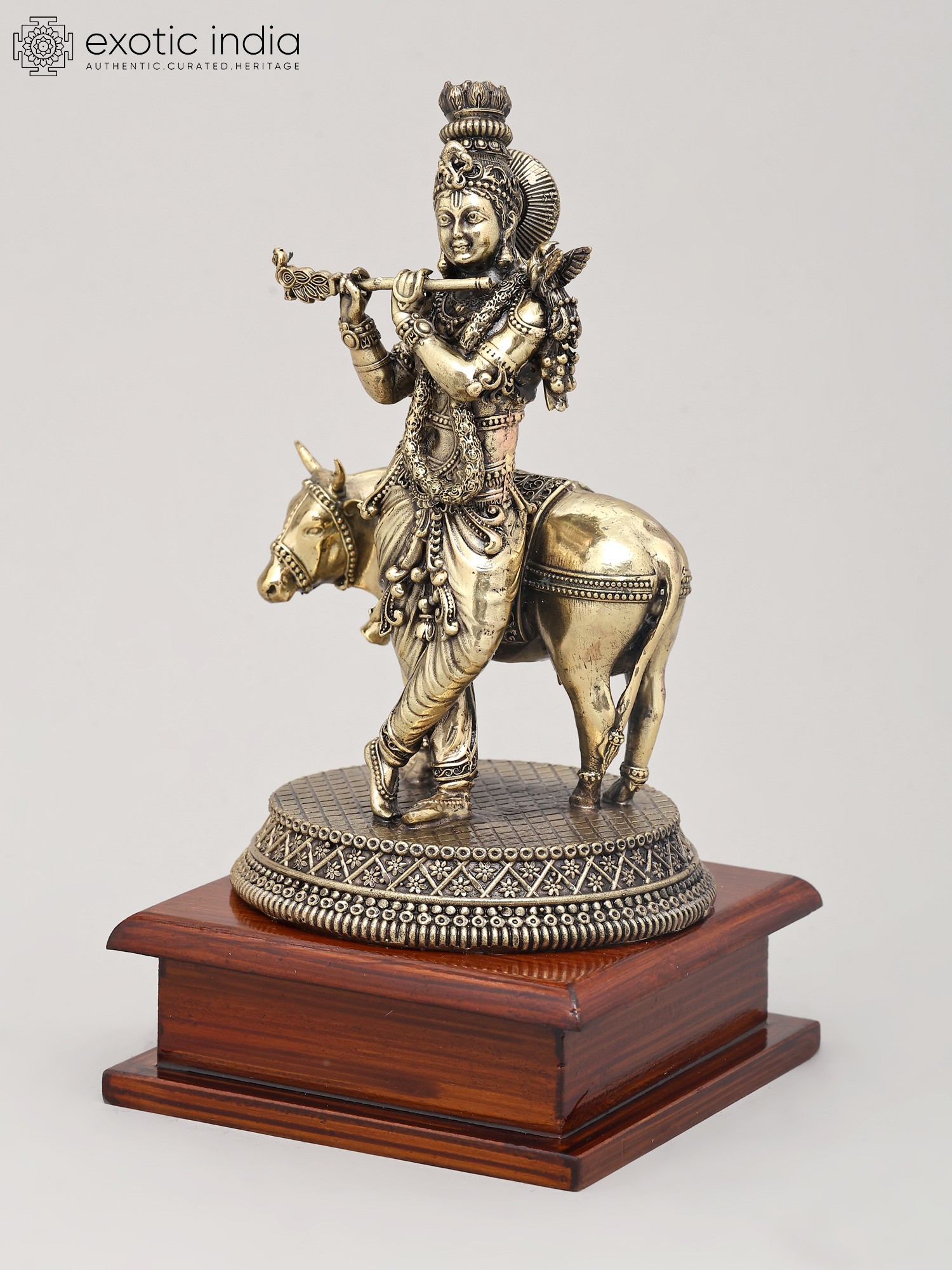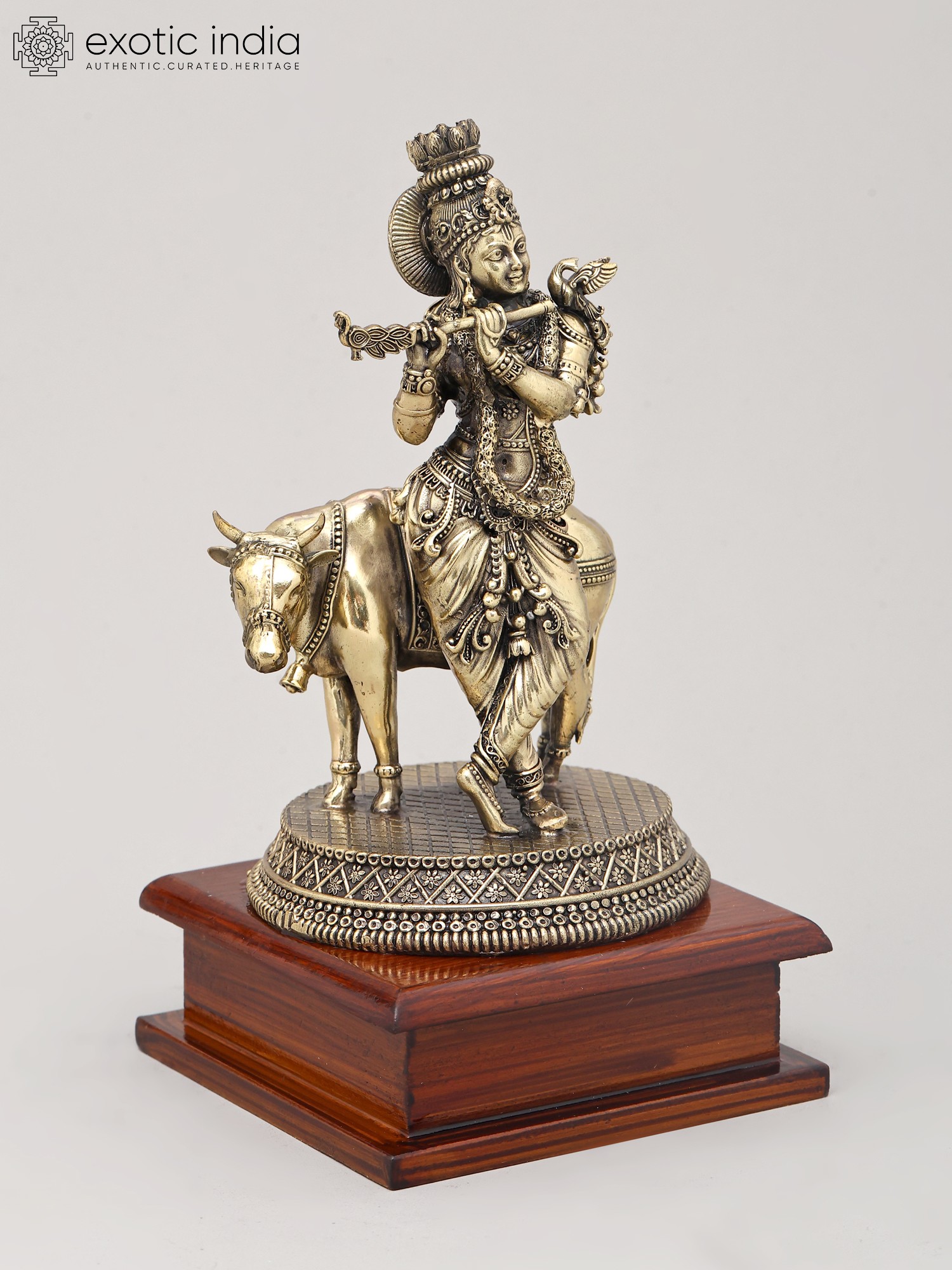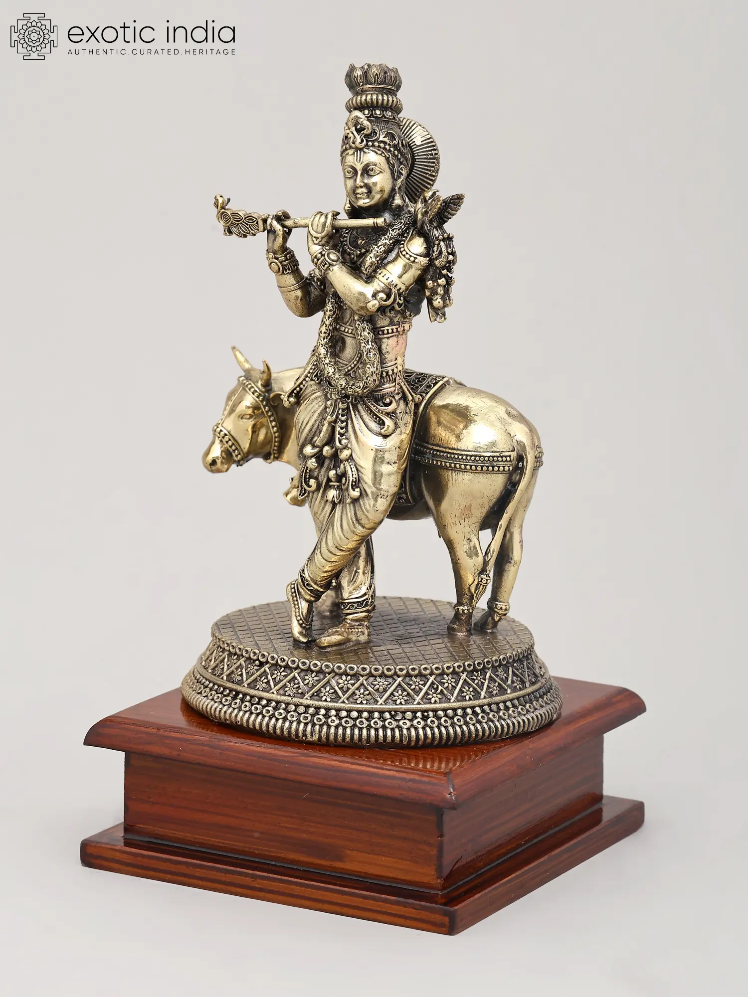 7" Superfine Silver-Plated Lord Krishna Idol Playing Flute | Brass Statue (Different Sizes)