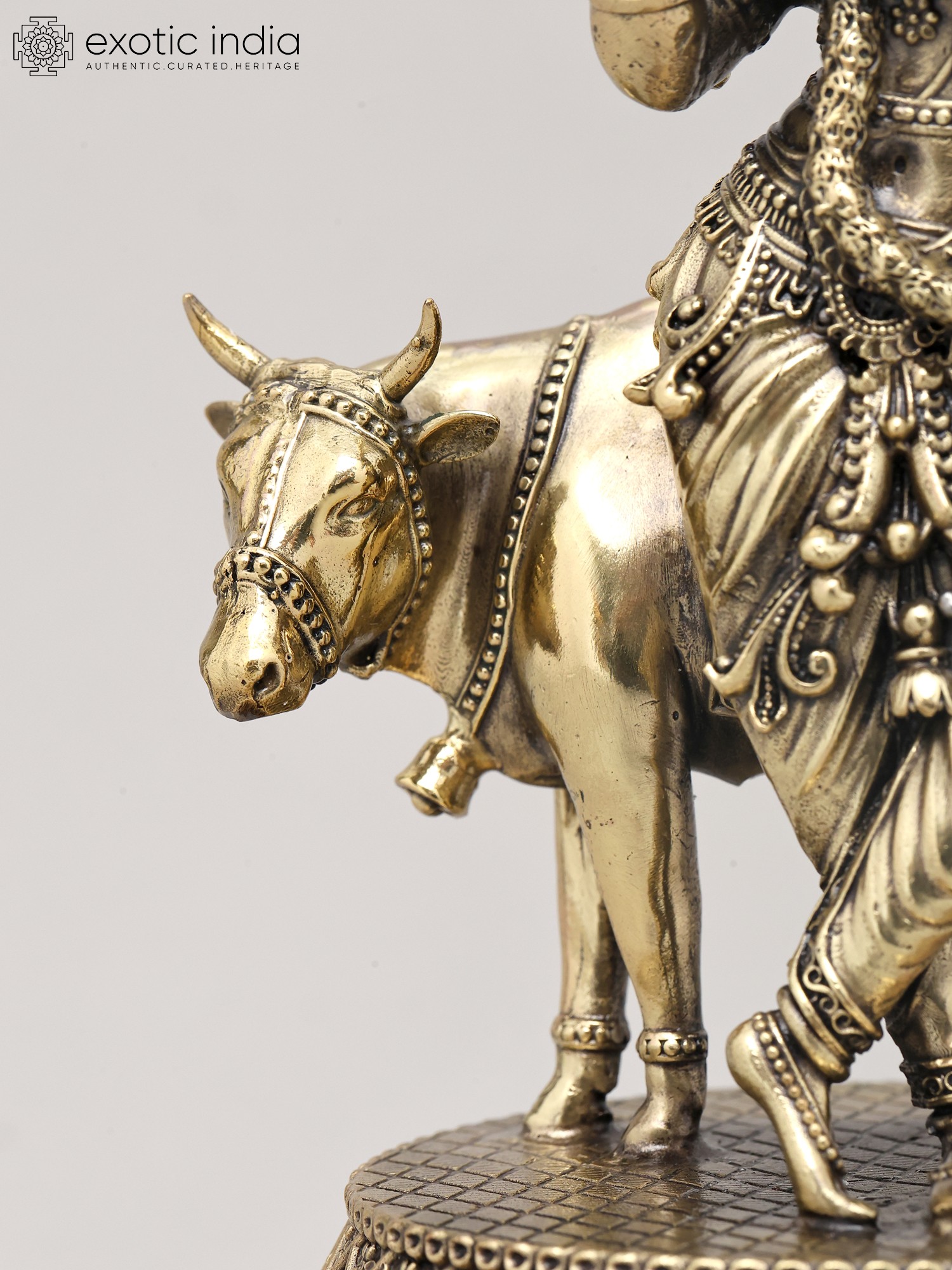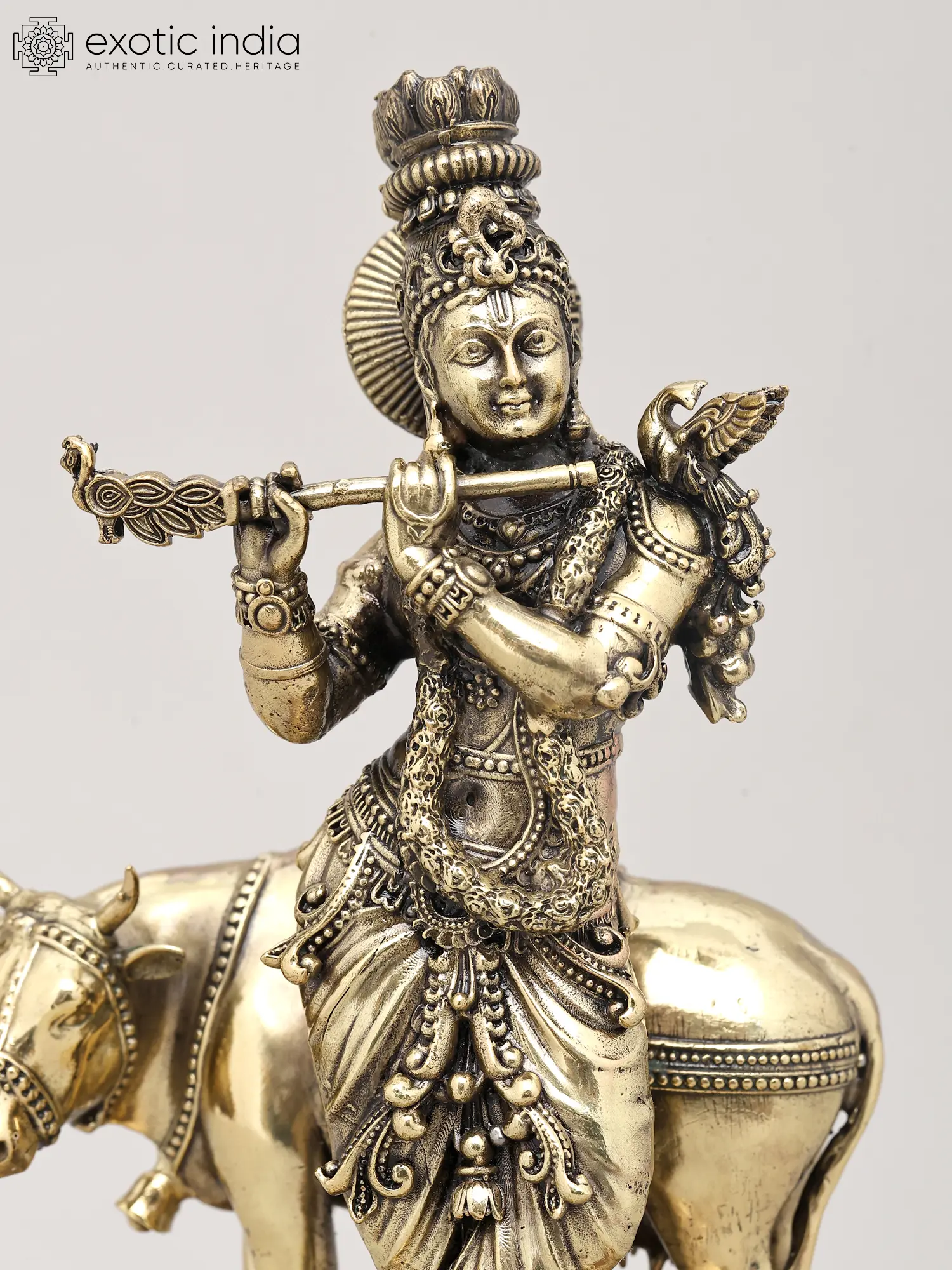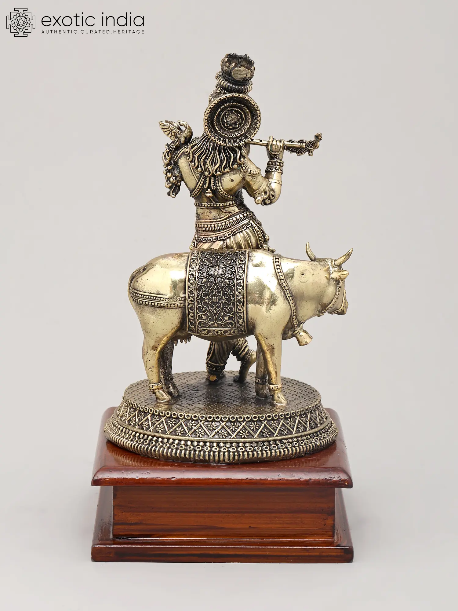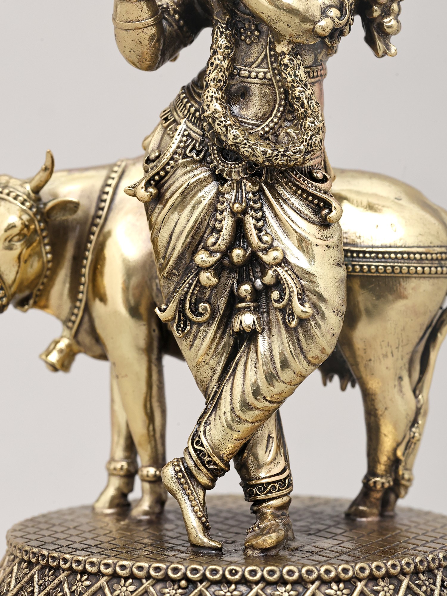 7" Superfine Silver-Plated Lord Krishna Idol Playing Flute | Brass Statue (Different Sizes)