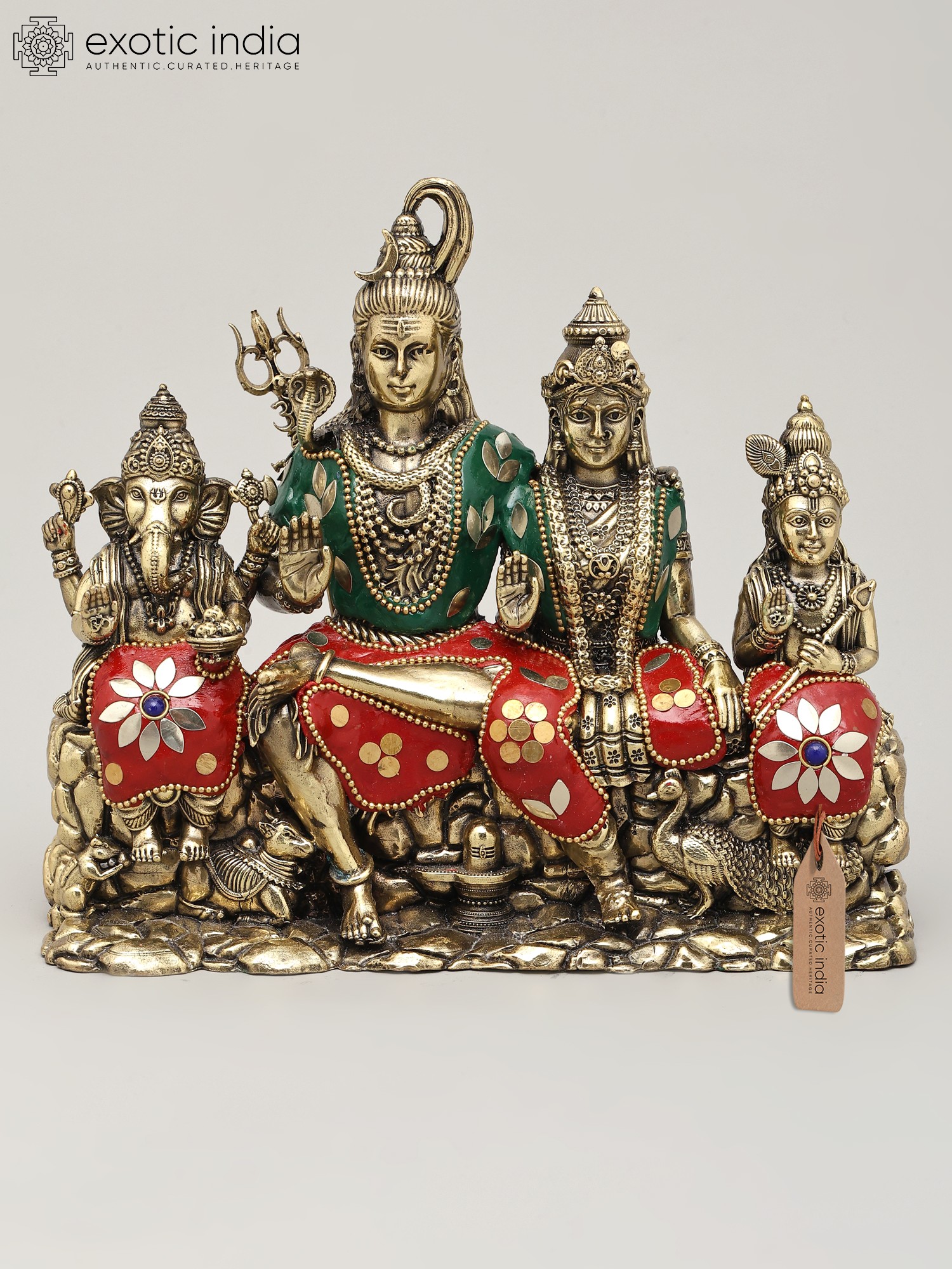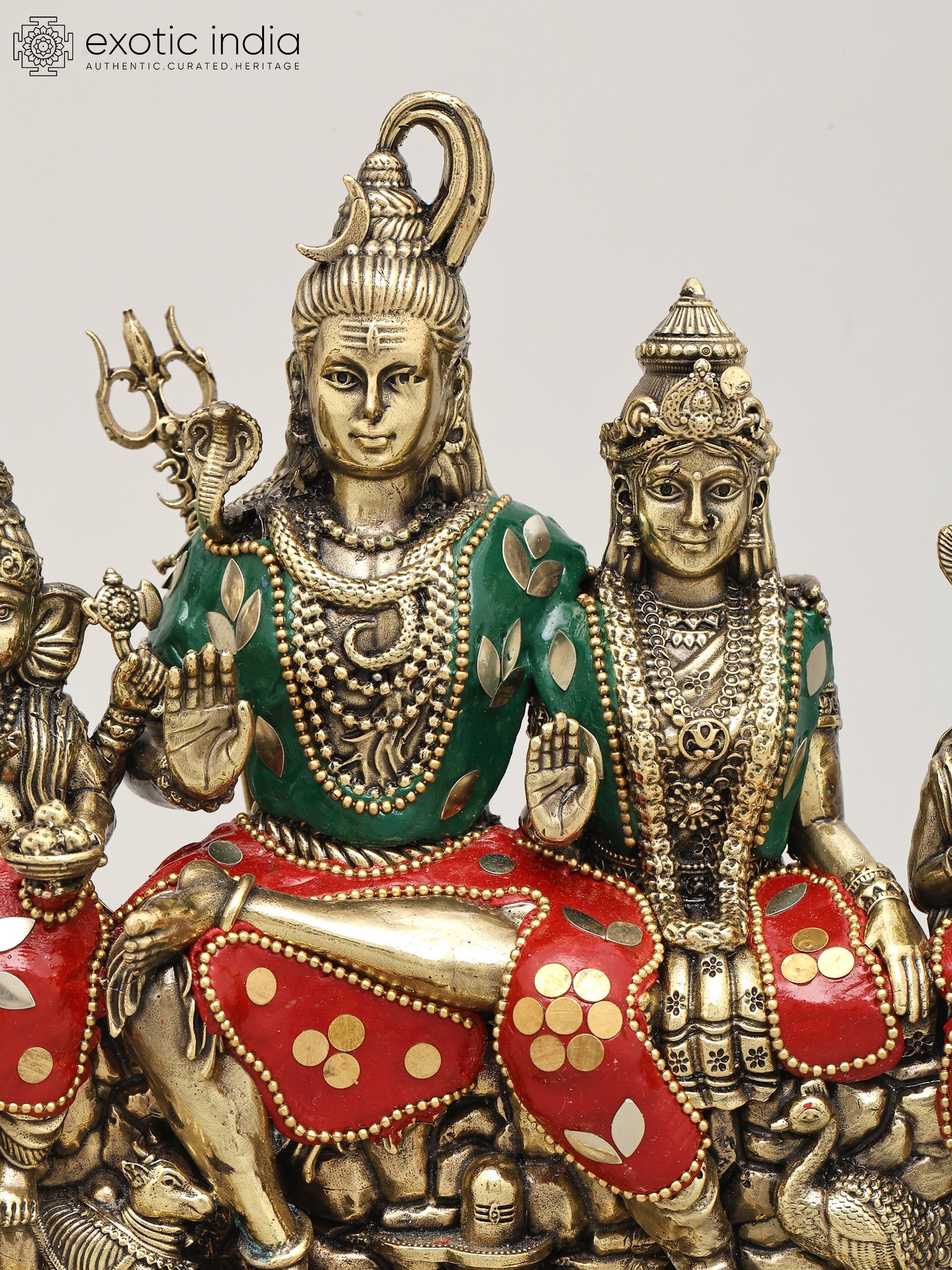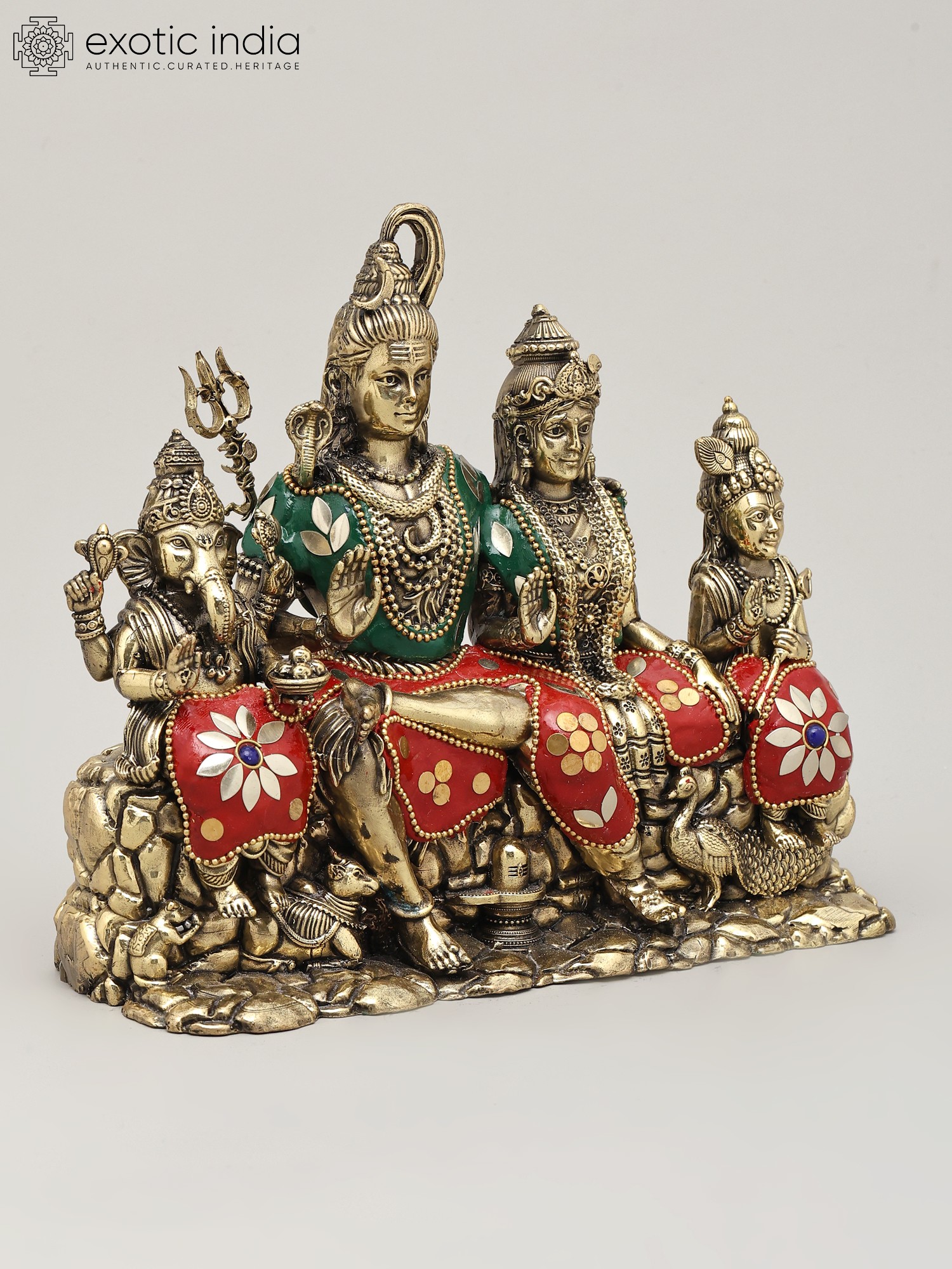9" Shiva Family Statue in Brass | Handmade | Made in India