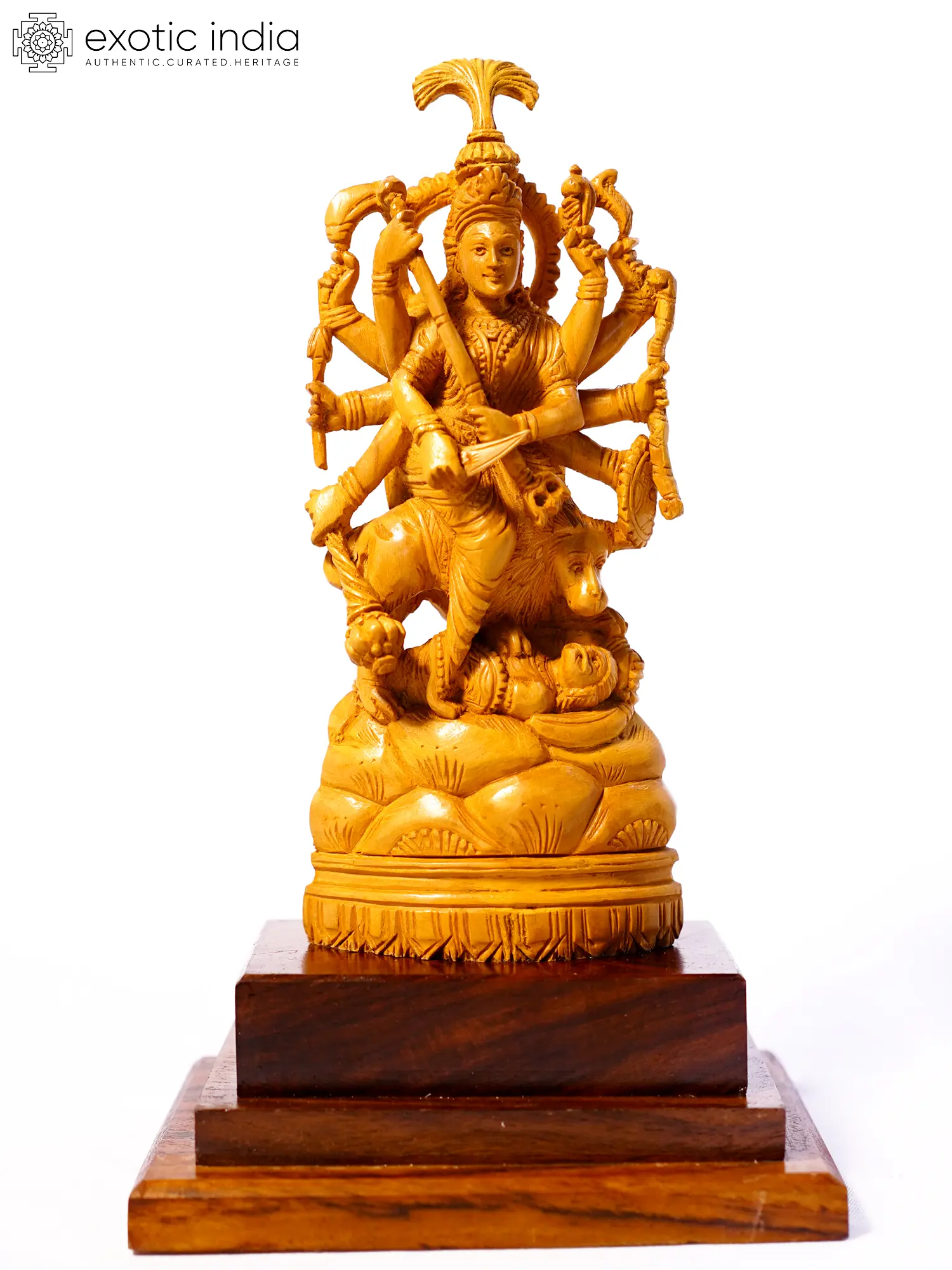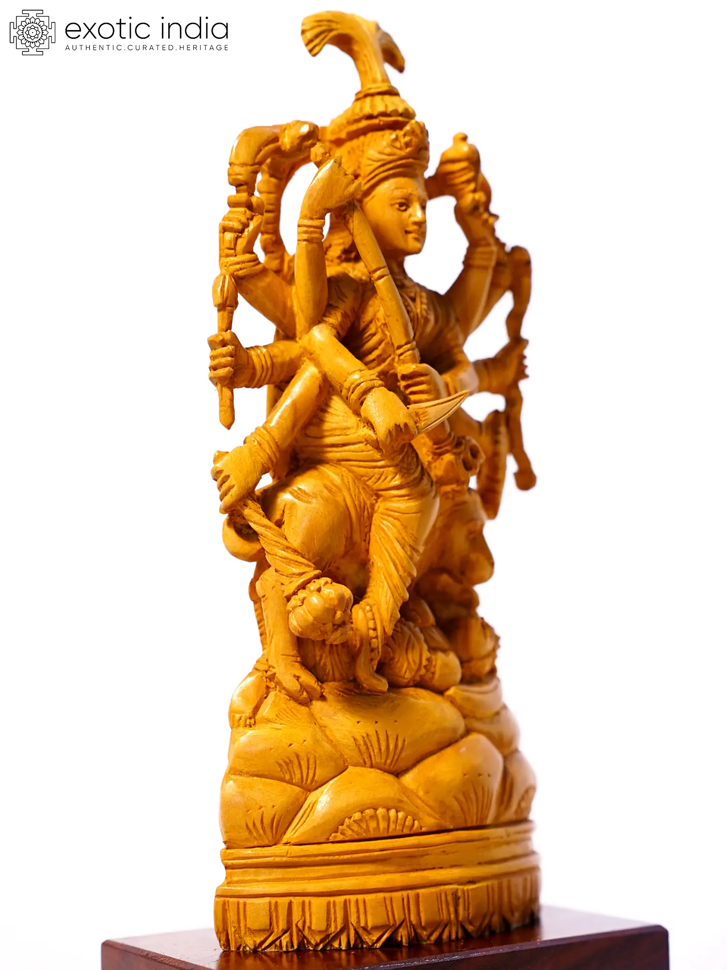 8" Ten Armed Goddess Durga | Sandalwood Carved Statue