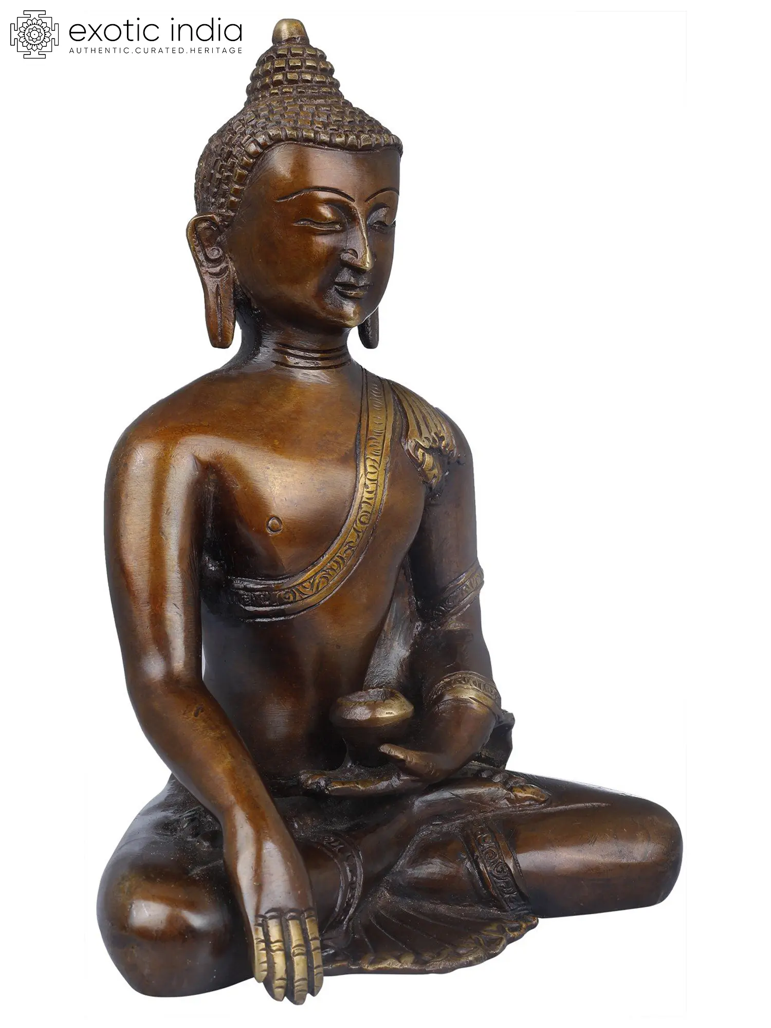8" Tibetan Buddhist Bhumisparsha Buddha in Brass | Handmade | Made In India