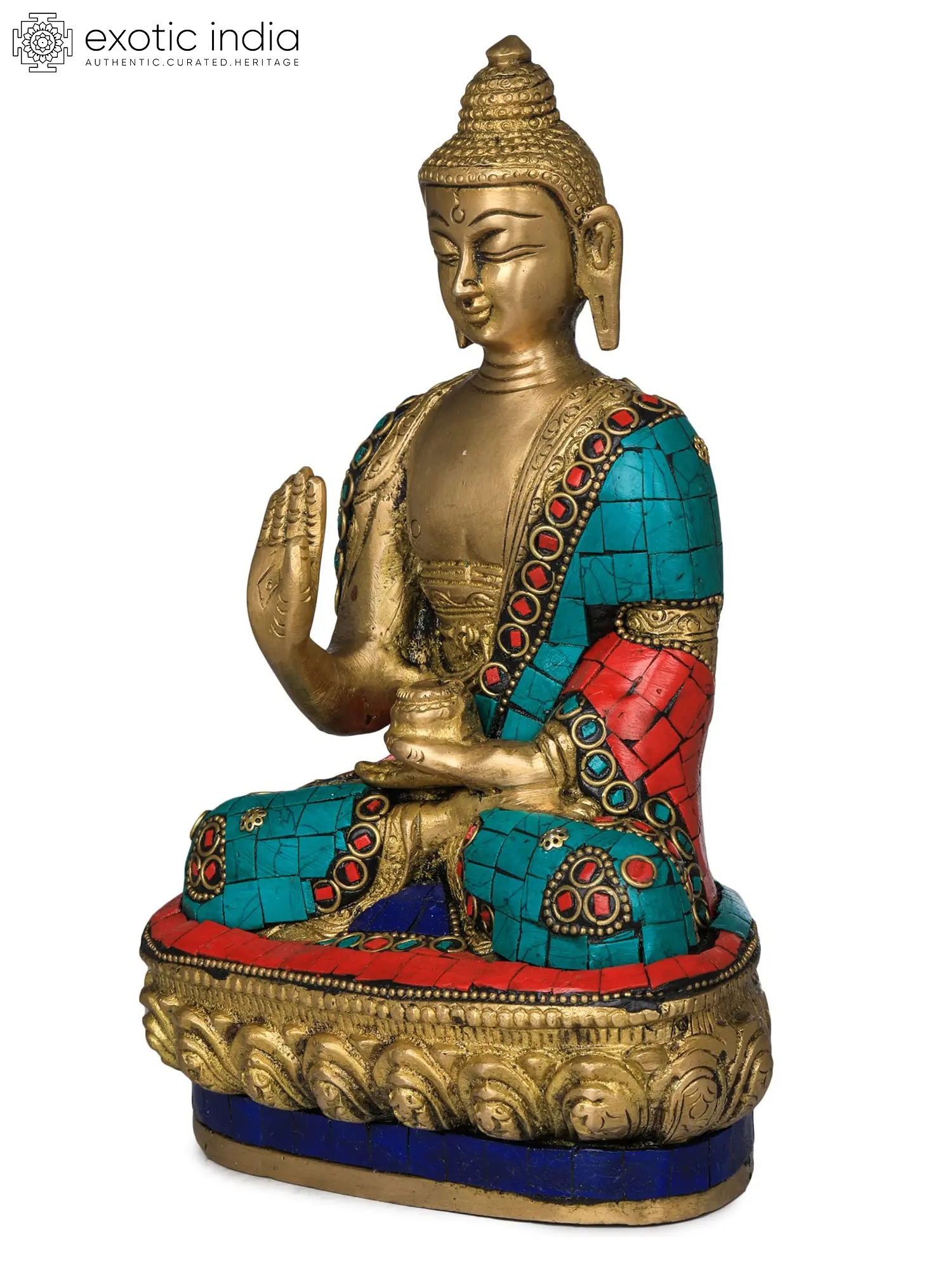 8" Tibetan Buddhist Deity Buddha in Ashirwad Mudra In Brass | Handmade | Made In India