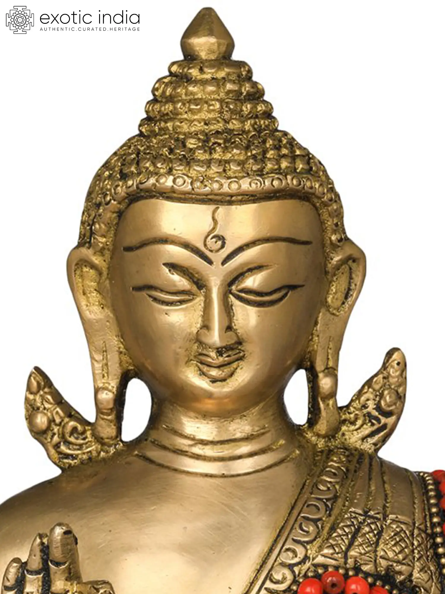 8" Tibetan Buddhist Deity Buddha in Vitark Mudra In Brass | Handmade | Made In India