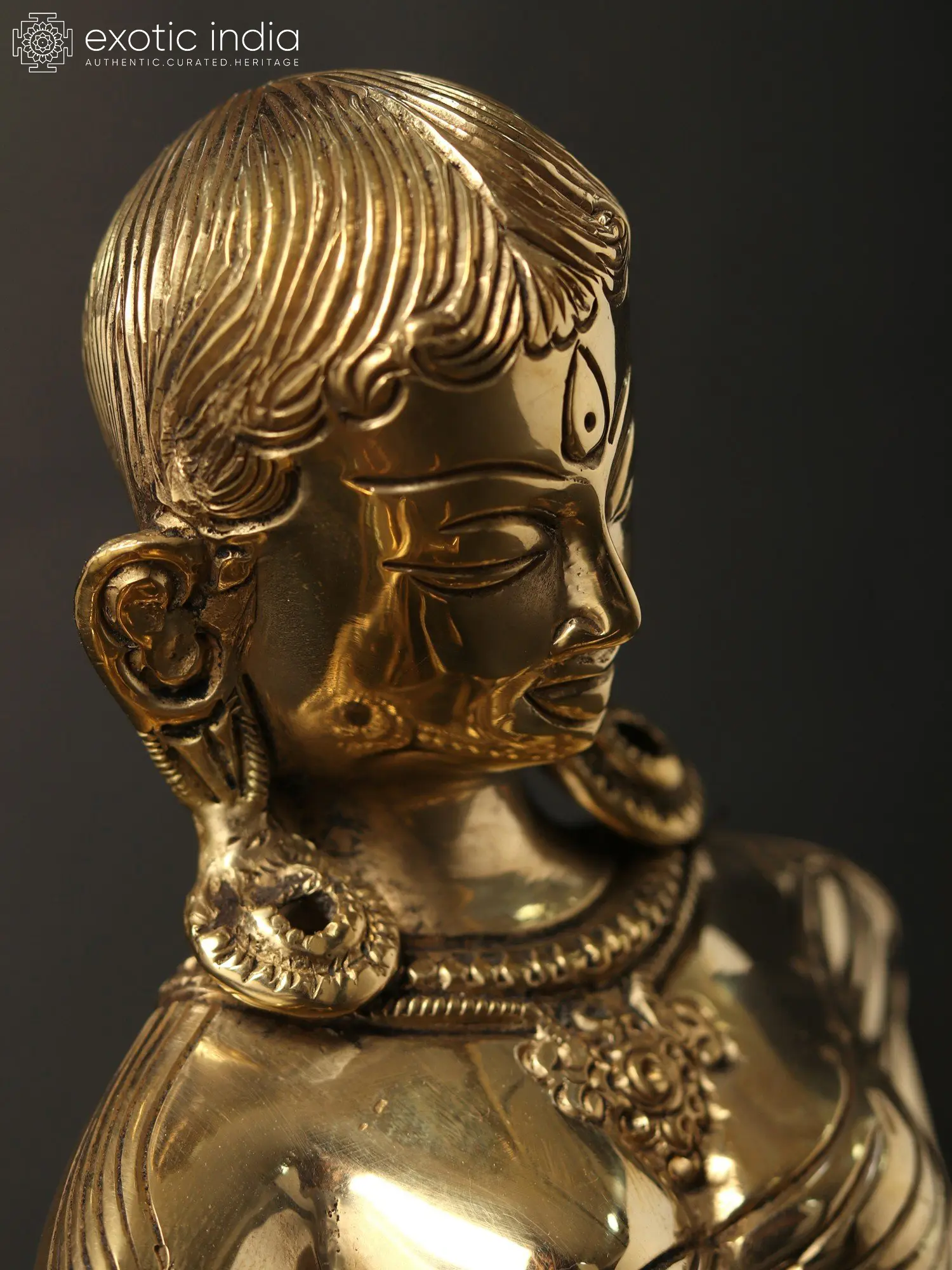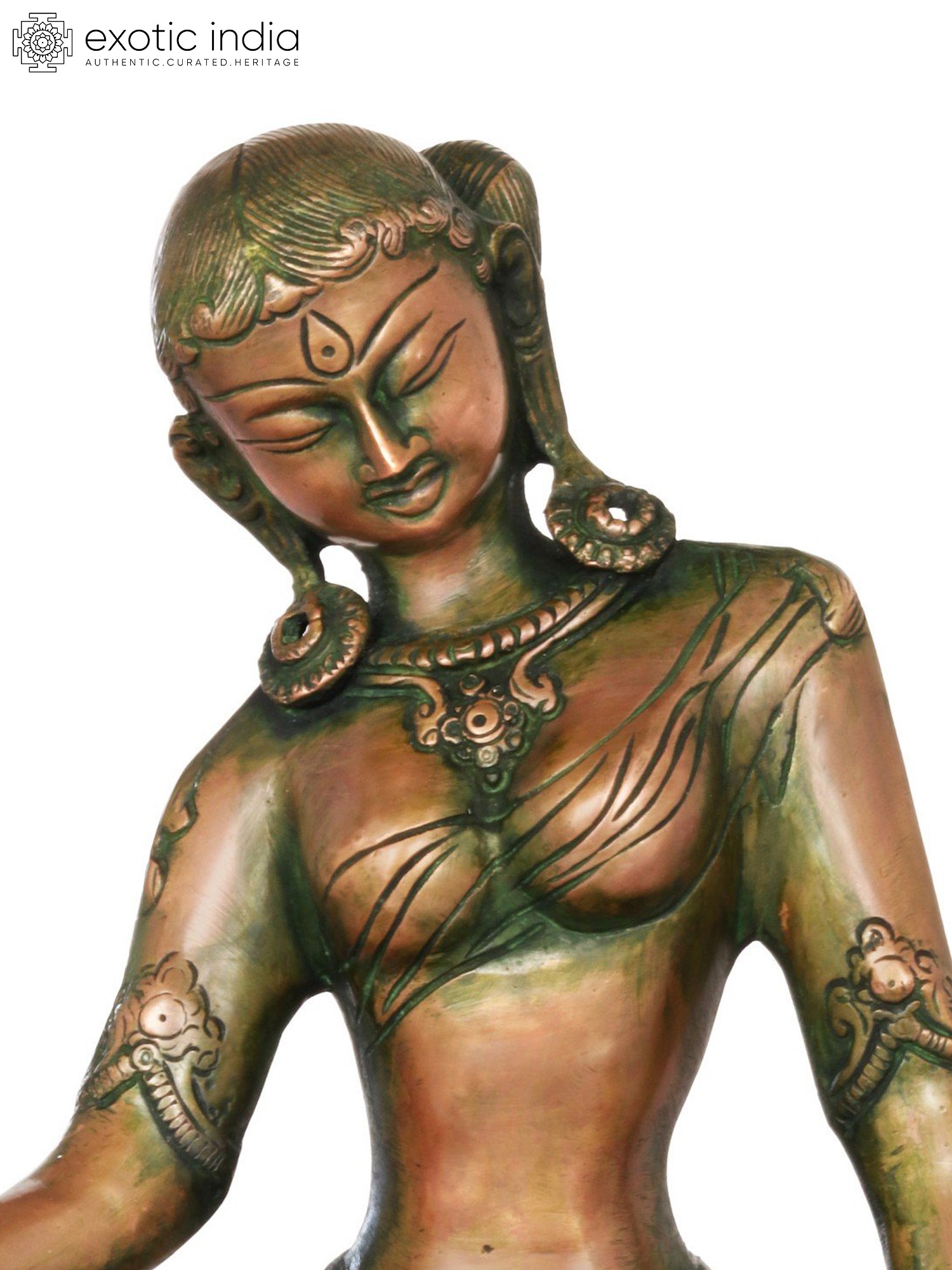 Immerse yourself in the compassionate and protective energy of Green Tara with our finely crafted brass sculpture. Handmade with deep reverence in India, this artwork embodies the essence of compassion, guidance, and protection, central to Tibetan Buddhist philosophy. As you study this sculpture, you'll appreciate the intricate details that convey Green Tara's serene countenance and the symbolism in every aspect of her form. Green Tara's role as the swift savior and compassionate guide is central to Tibetan Buddhist philosophy, and this sculpture serves as a constant reminder of her loving presence and the path to spiritual liberation.