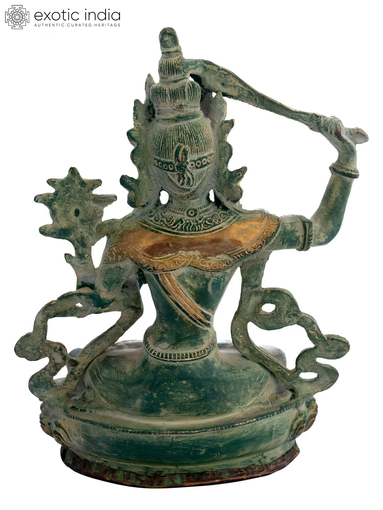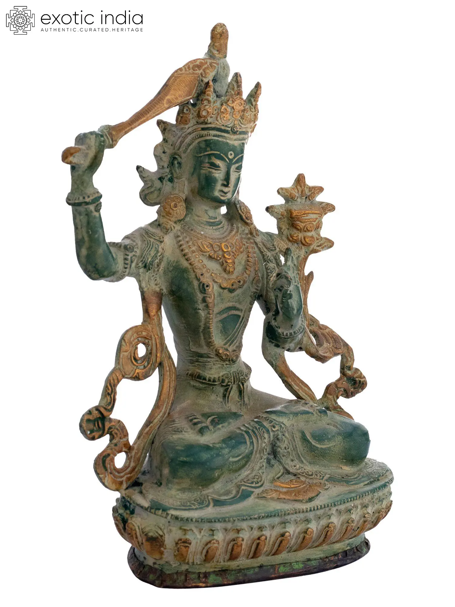 Embrace the wisdom and enlightenment of Tibetan Buddhism with our finely crafted brass sculpture of Manjushri, the deity of transcendent wisdom. Handmade with deep reverence in India, this artwork embodies the profound philosophy of wisdom and enlightenment, central to Buddhist teachings. As you study this sculpture, you'll appreciate the intricacies of Manjushri's form, the wisdom sword symbolising the cutting through of ignorance, and the serene expression that exudes inner peace. The sculpture is not just art; it's an invitation to explore the depths of Buddhist philosophy, emphasising wisdom as the path to liberation.