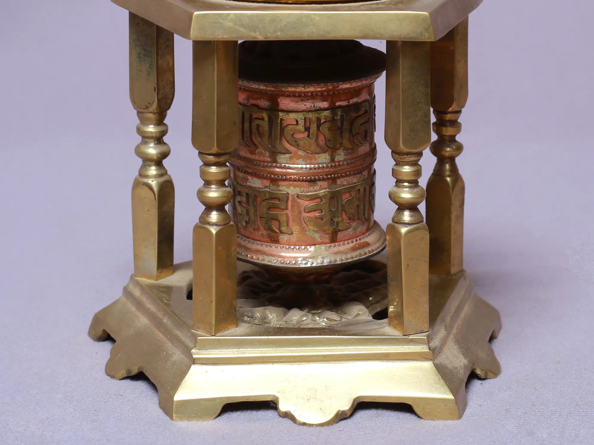 Tibetan Buddhist Prayer Wheel with Victory Banner (Ashtamangala)