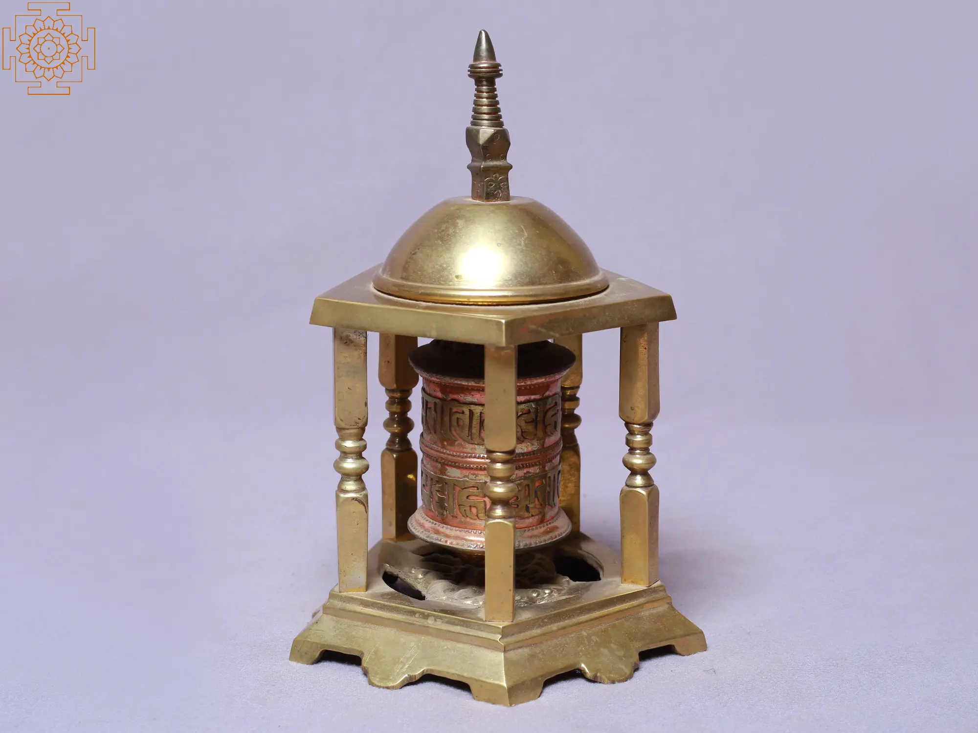 7" Brass Prayer Wheel with Dharma-chakra (Ashtamangala) | Handmade | Made in India