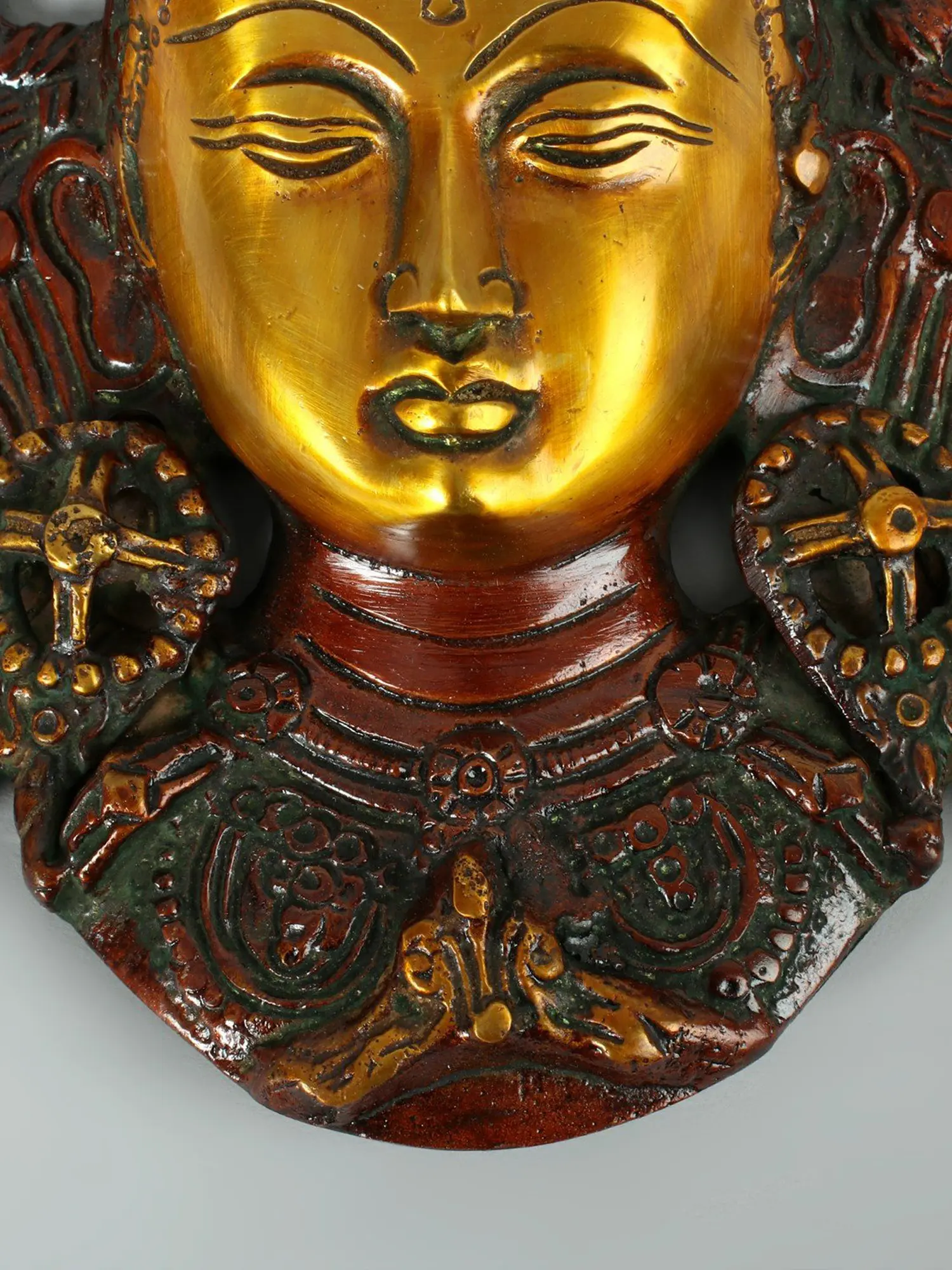 8" Tibetan Buddhist Goddess Tara Mask (Wall Hanging) In Brass | Handmade | Made In India