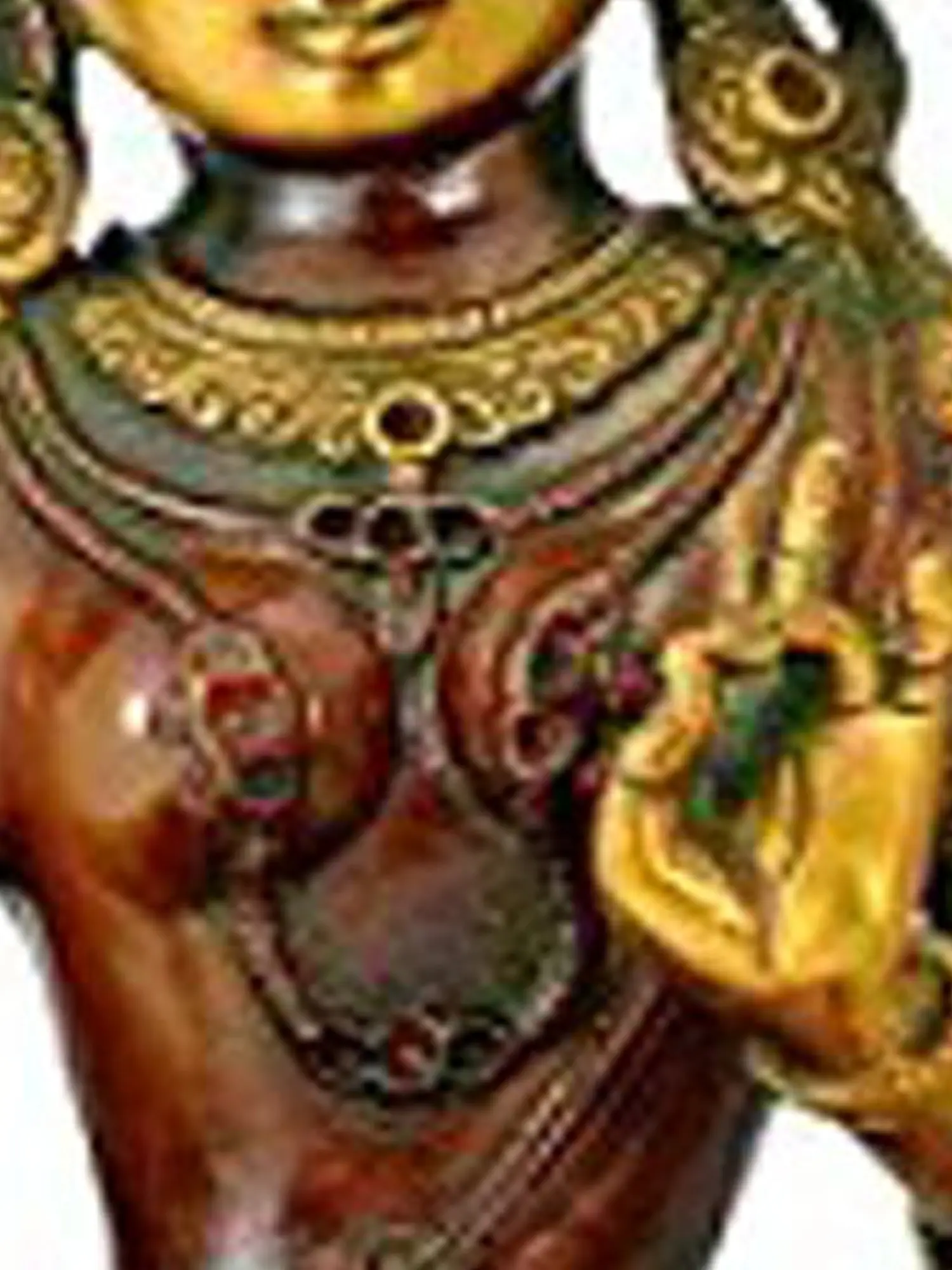 Tara is an important and revered deity in Tibetan Buddhism who appears as a female Bodhisattva. Buddhist monks and followers meditate on the image or deity of Tara to develop some good qualities such as compassion and kindness. Tara is known as the mother of compassion or liberation and is considered the female aspect of Avalokiteshvara (who possesses the compassion of all Buddhas). She manifests in different forms such as Green Tara and White Tara. Green Tara is associated with fearlessness and White Tara, as radiant as the moon, is associated with good health. Tara also appears in red, blue, and yellow colors.