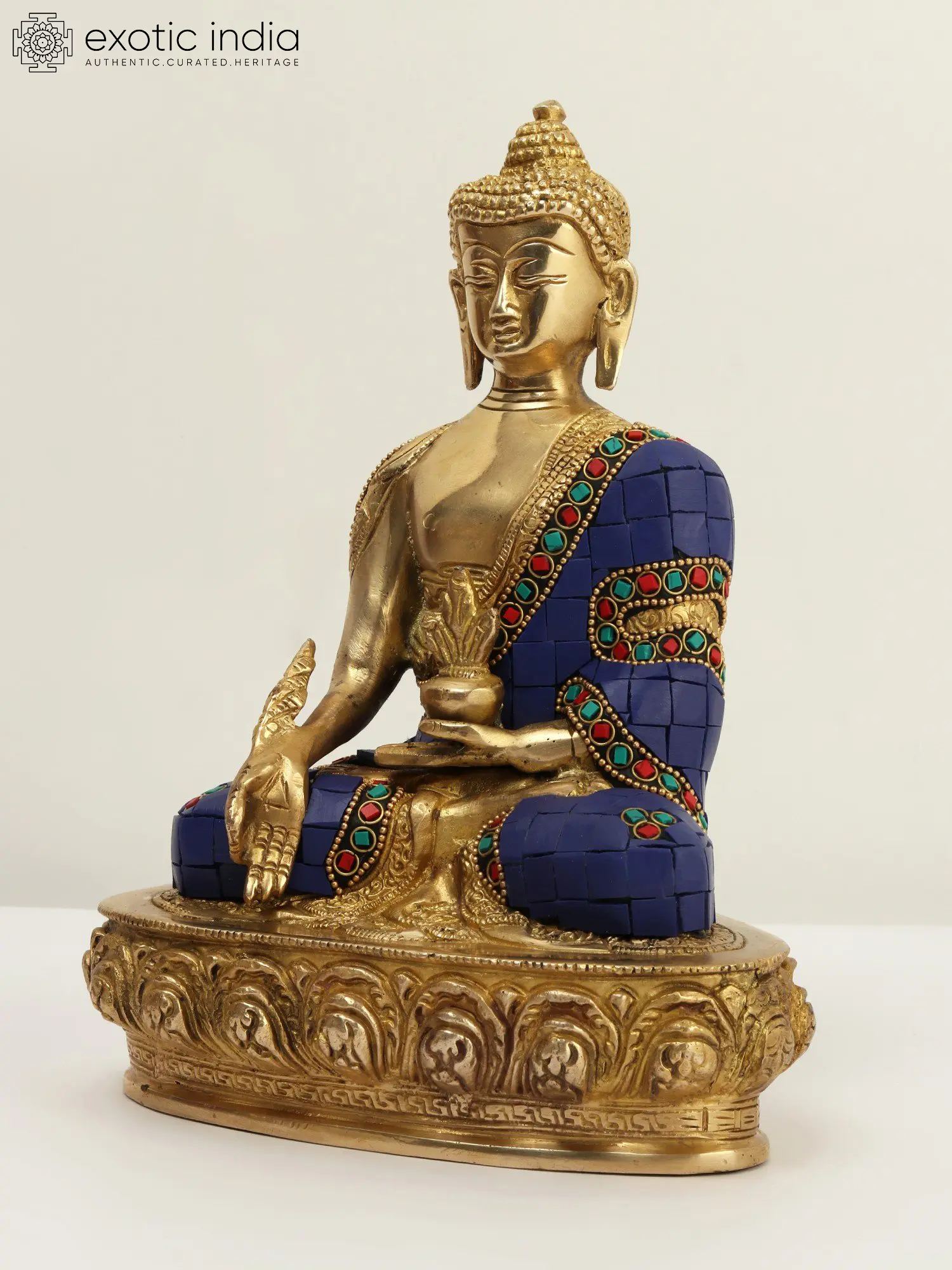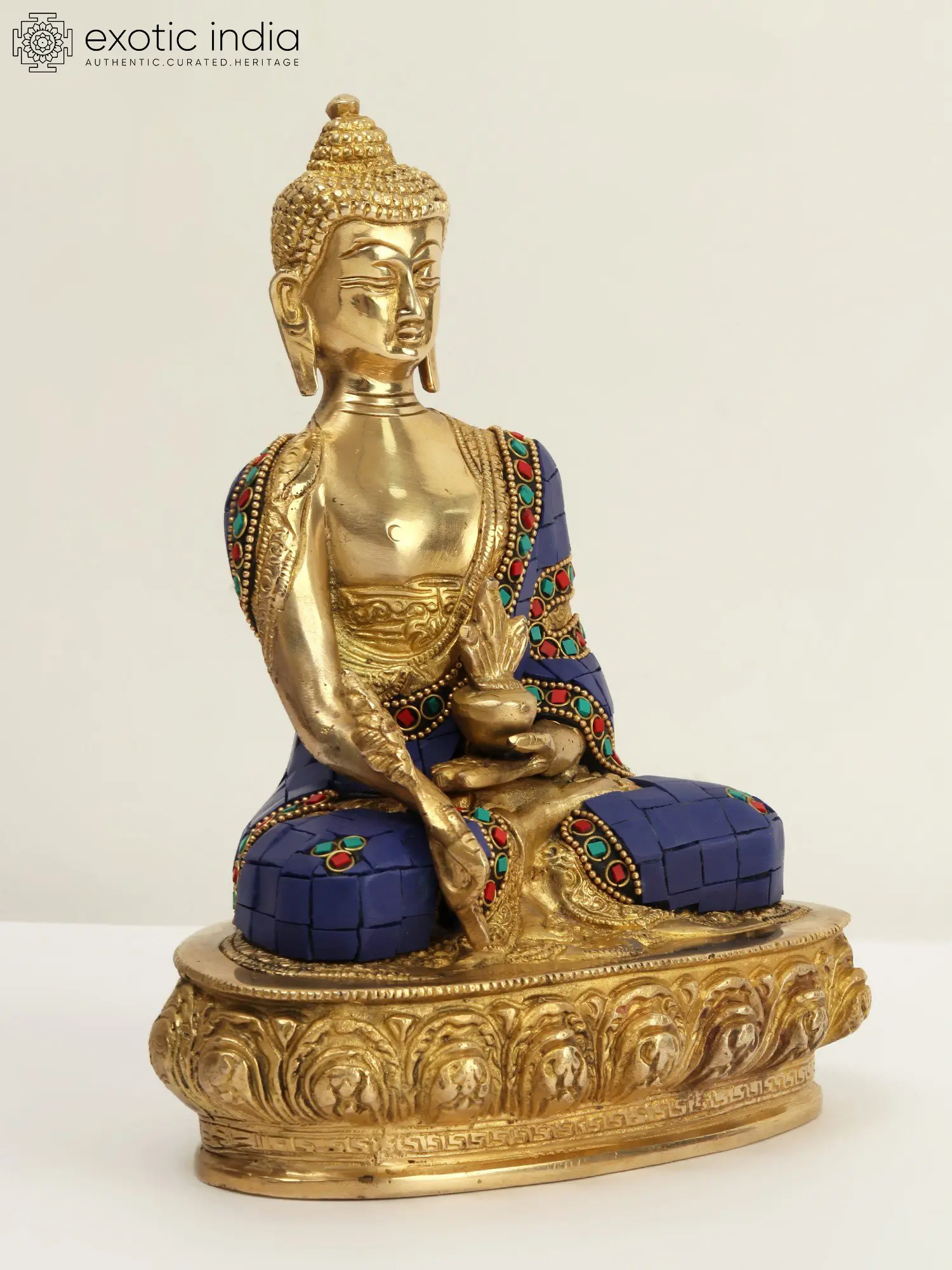 8" Tibetan Buddhist Lapis Buddha of Healing (Medicine Buddha) In Brass | Handmade | Made In India