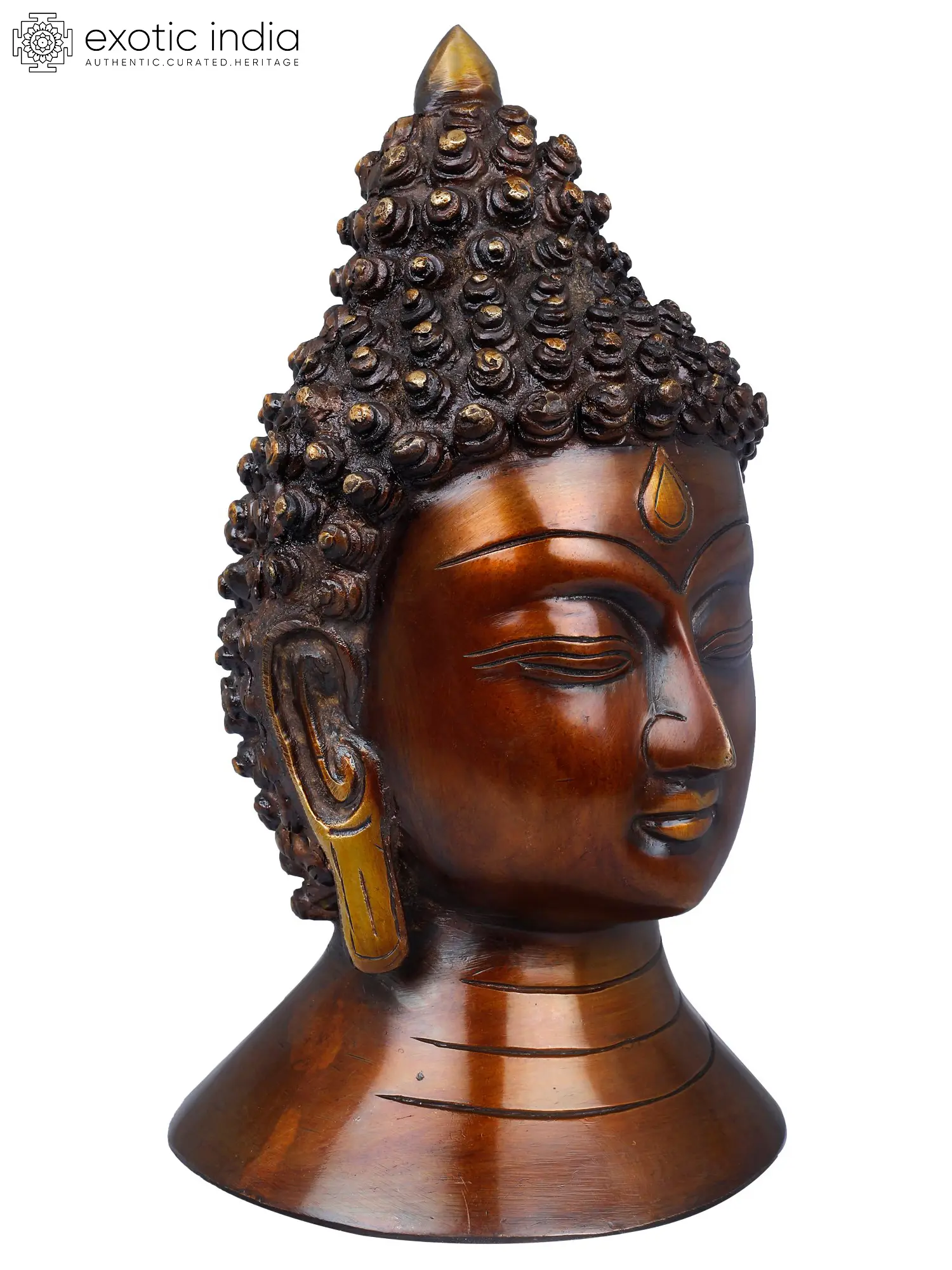 8" Tibetan Buddhist Lord Buddha Head In Brass | Handmade | Made In India