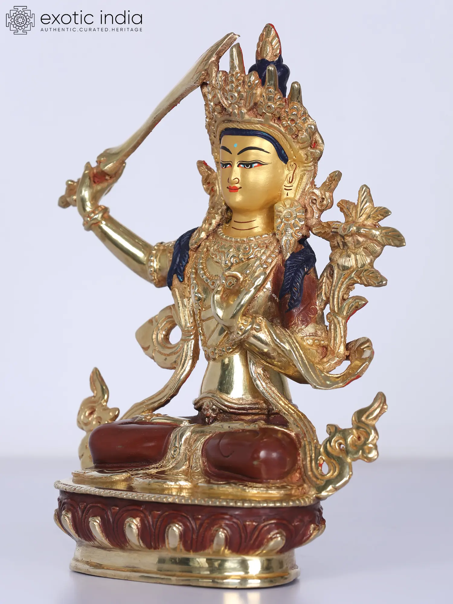 The brilliant presence of Manjushri, the embodiment of knowledge, radiates like a heavenly melody in the ethereal realm of “Mahayana Buddhism.” His name, a poetic symphony, means "Gentle Glory" in Sanskrit and represents the majestic essence of wisdom. Manjushri personifies the perfection of knowledge, wielding a flaming sword (Also known as the Prajna khadga or the Sword of Wisdom), piercing the veil of ignorance.