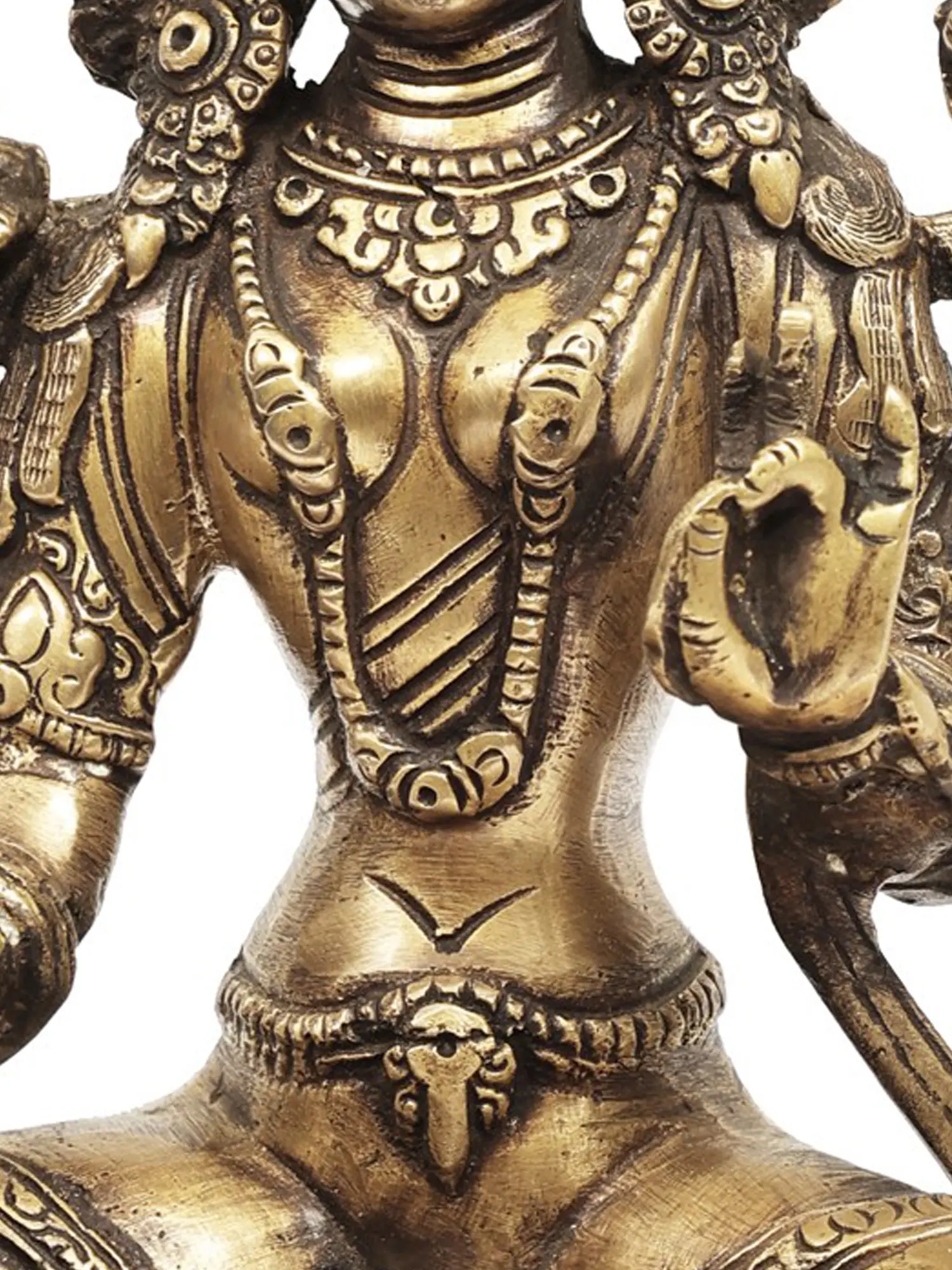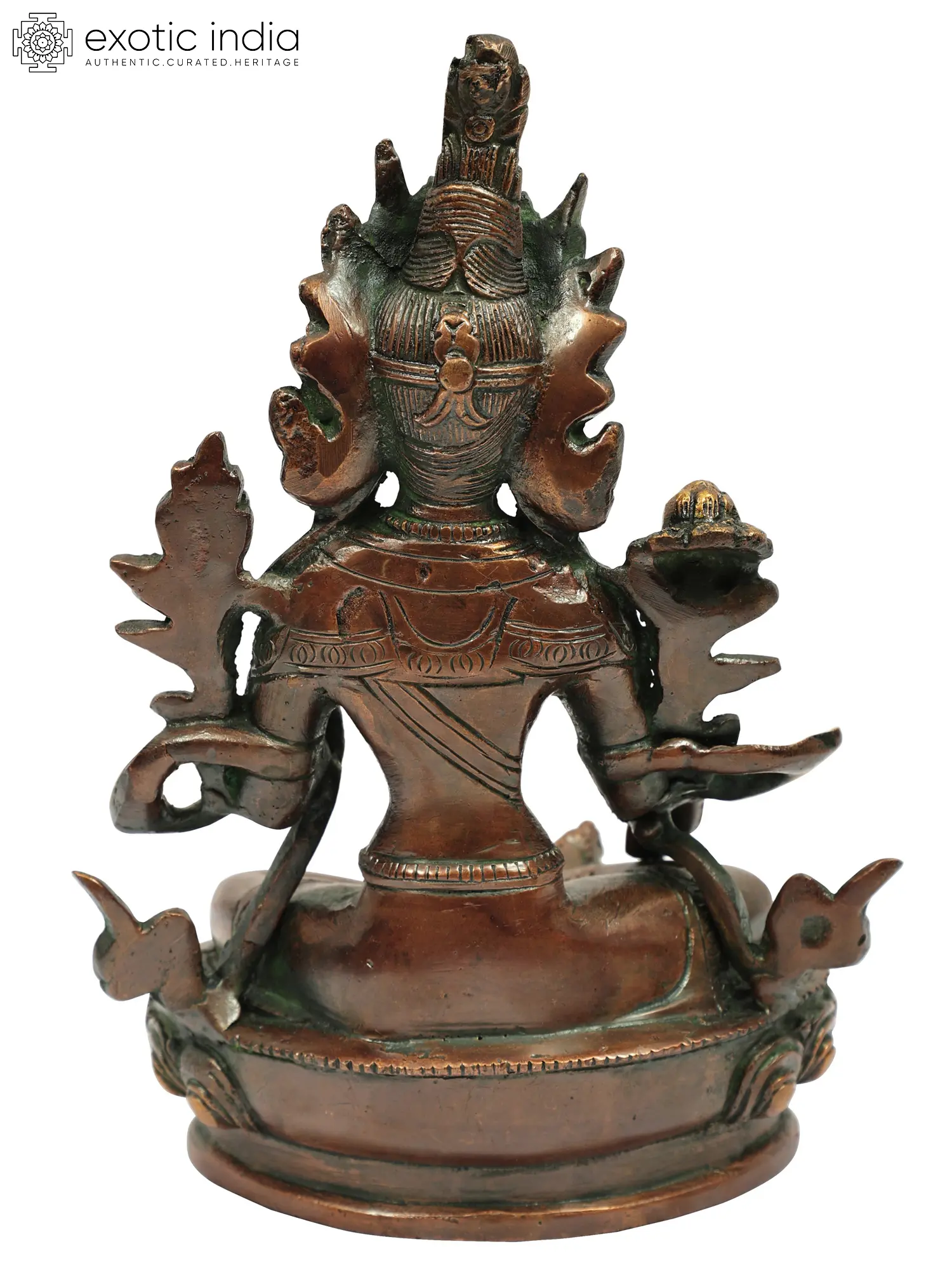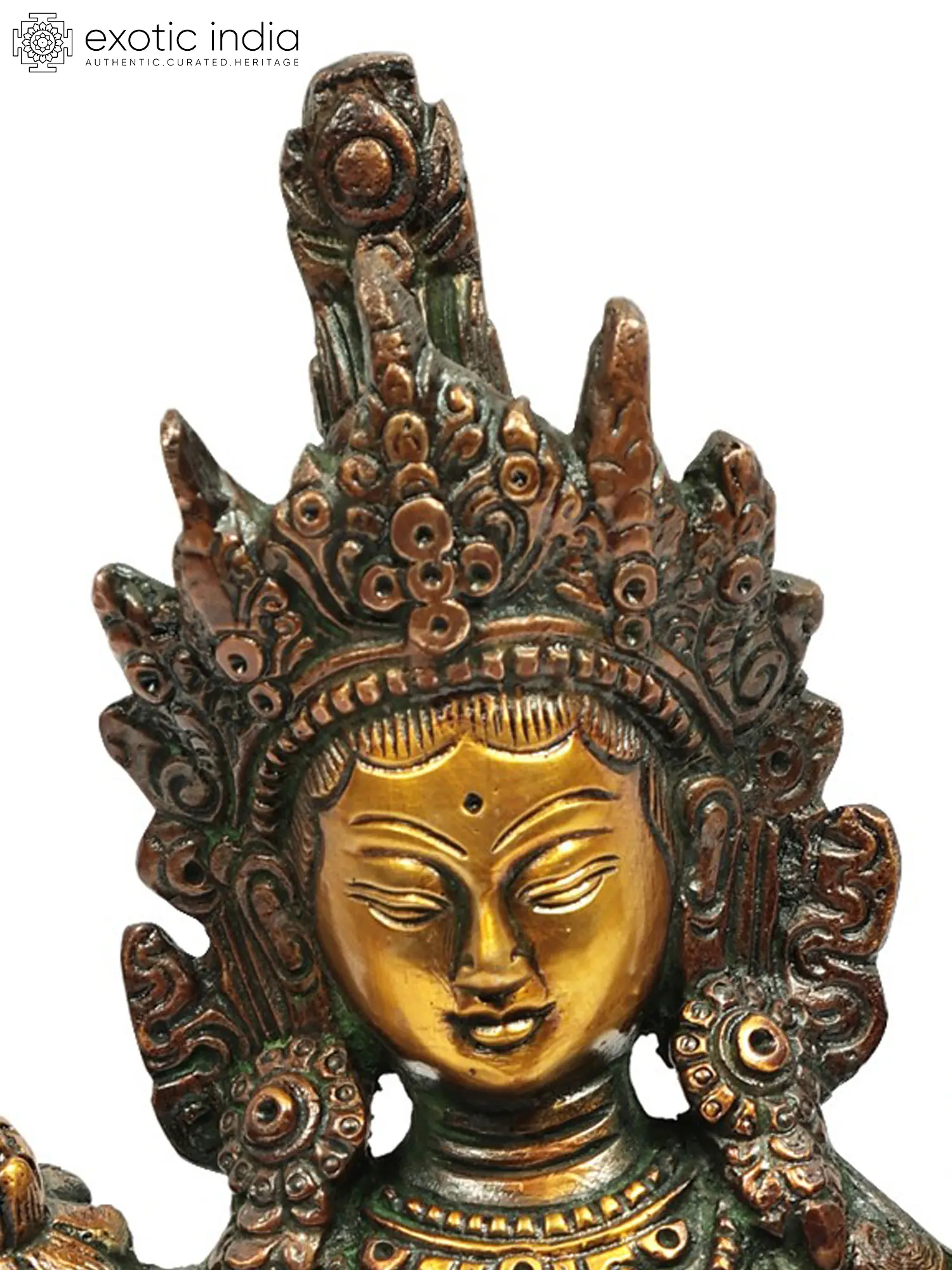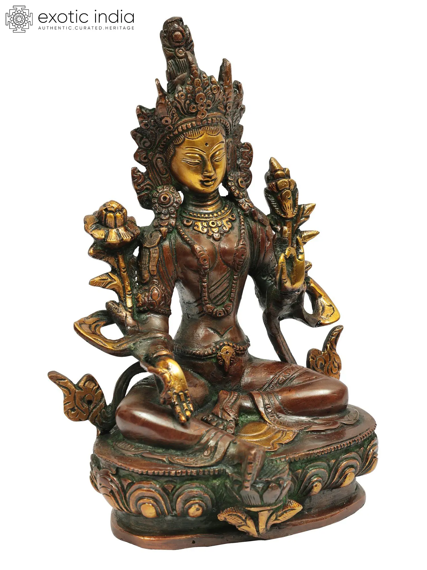 8" Tibetan Buddhist Savior Goddess Green Tara In Brass | Handmade | Made In India