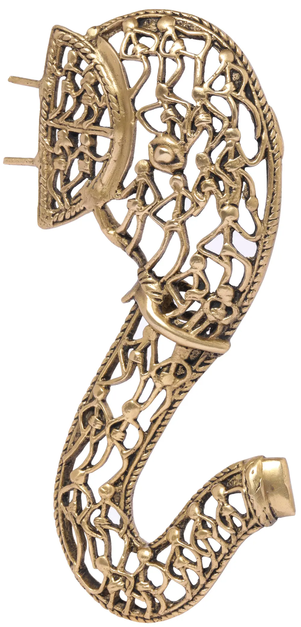 This stunning tribal style Ganesha wall hanging head is a unique and eye-catching piece of art that will add a touch of whimsy and spirituality to any home. The head is made of brass and features an intricate design of human figures that are both playful and profound. Ganesha is the Hindu god of wisdom, good luck, and new beginnings, and this beautiful wall hanging is a perfect way to bring his blessings into your home.