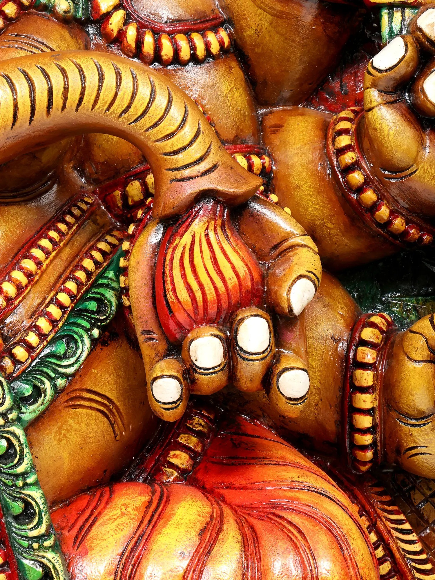 In Hindu mythology, Ganesha’s multiple arms represent his multifaceted abilities and blessings. Each hand holds a symbolic object, each telling a story of his divine power and benevolent nature. This eight-armed Ganesha, therefore, embodies the totality of his divine essence, representing his dominion over all aspects of life, from worldly success to spiritual enlightenment. His image is a powerful reminder that even the most complex challenges can be overcome with faith, devotion, and wisdom. This statue, thus, serves as a powerful symbol of protection, prosperity, and the triumph of good over evil. The vibrant colors and intricate details of this particular statue amplify its spiritual presence, enhancing the mystical energy that it radiates.