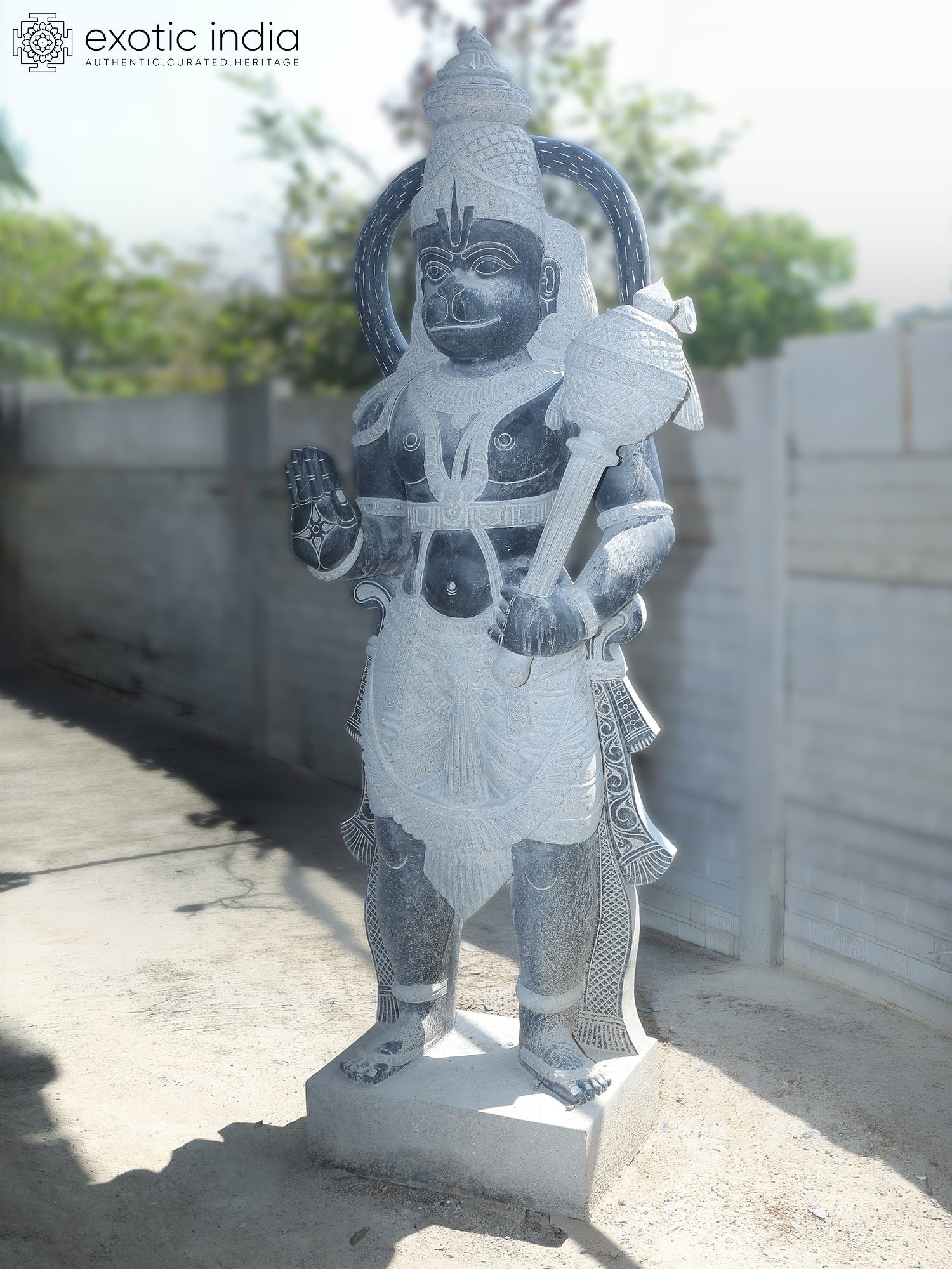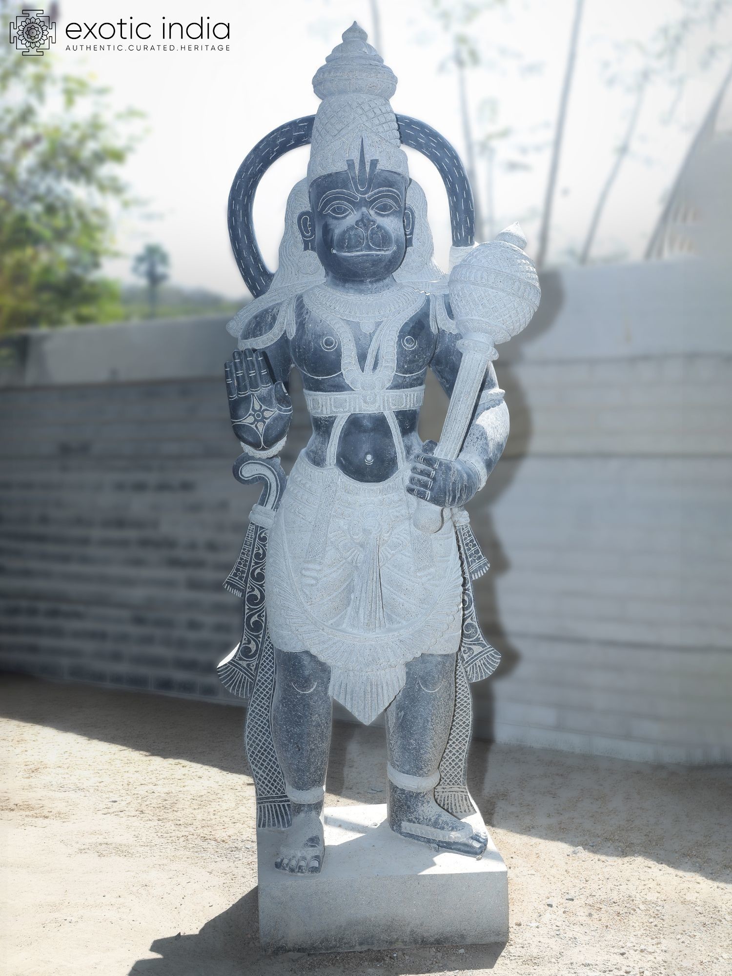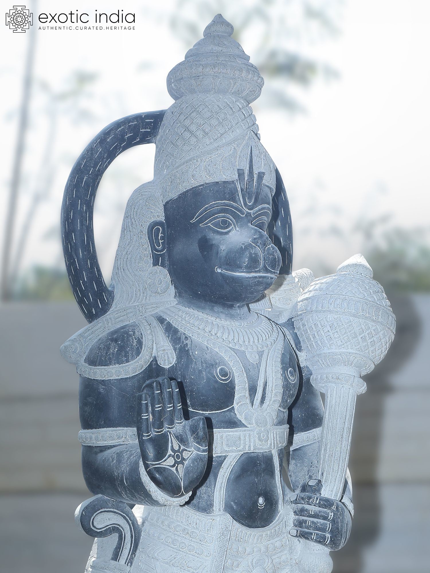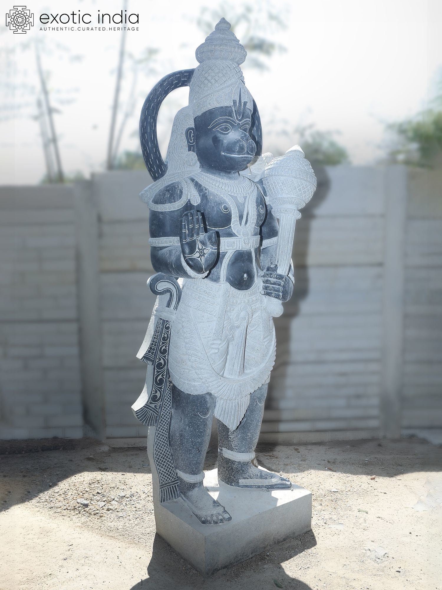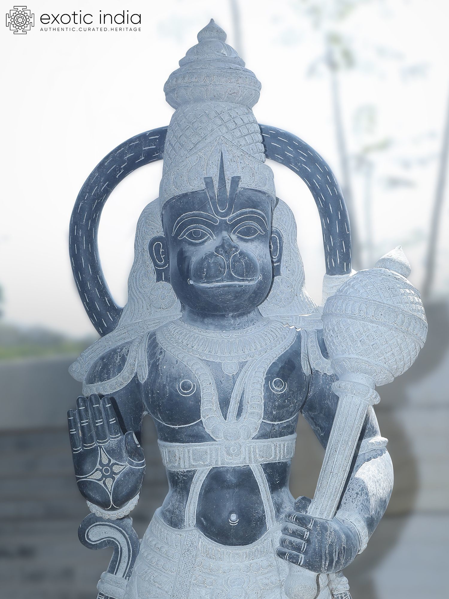 80" Lord Hanuman Holding Mace | Granite Statue | Handmade Indian Art