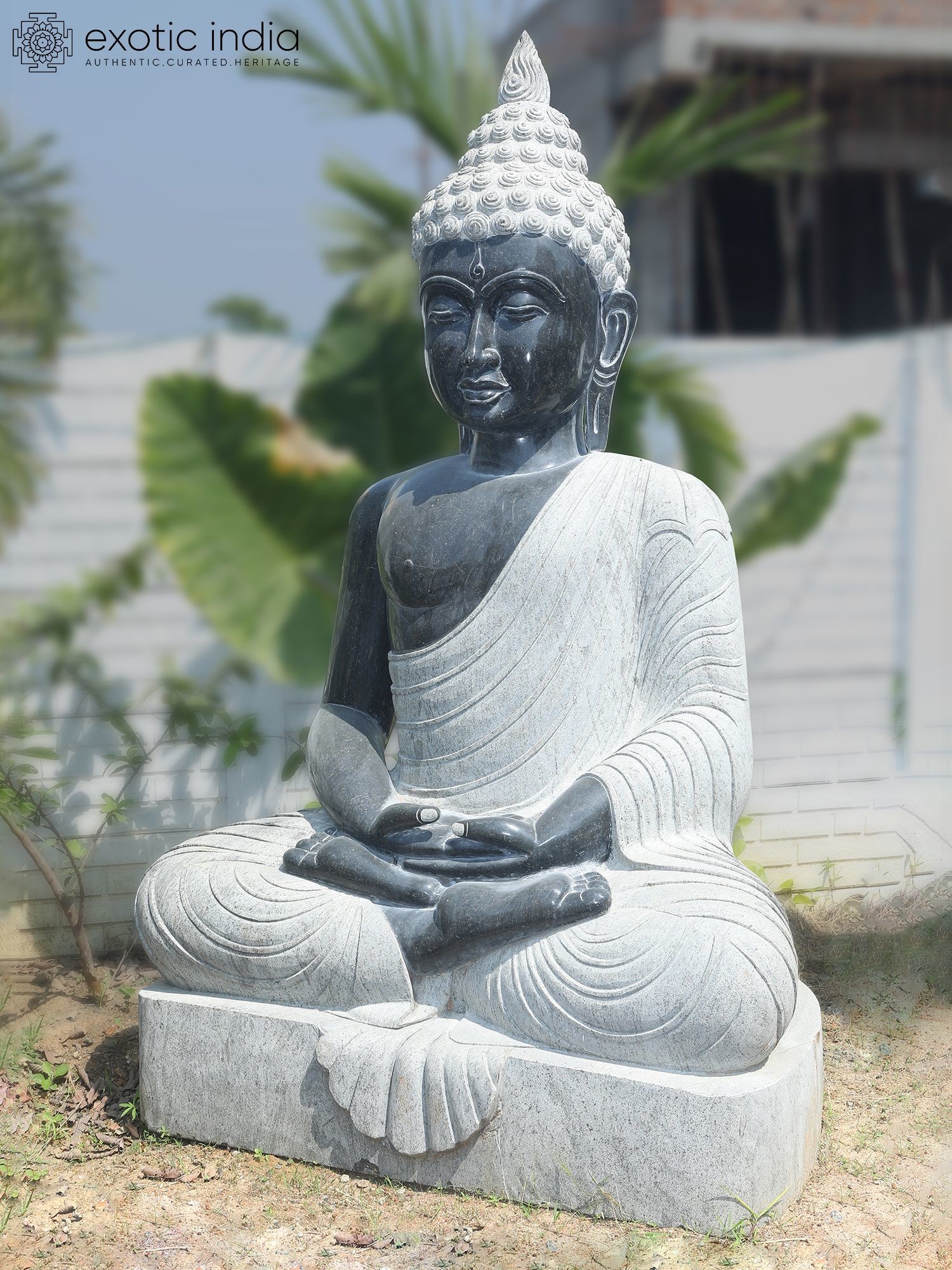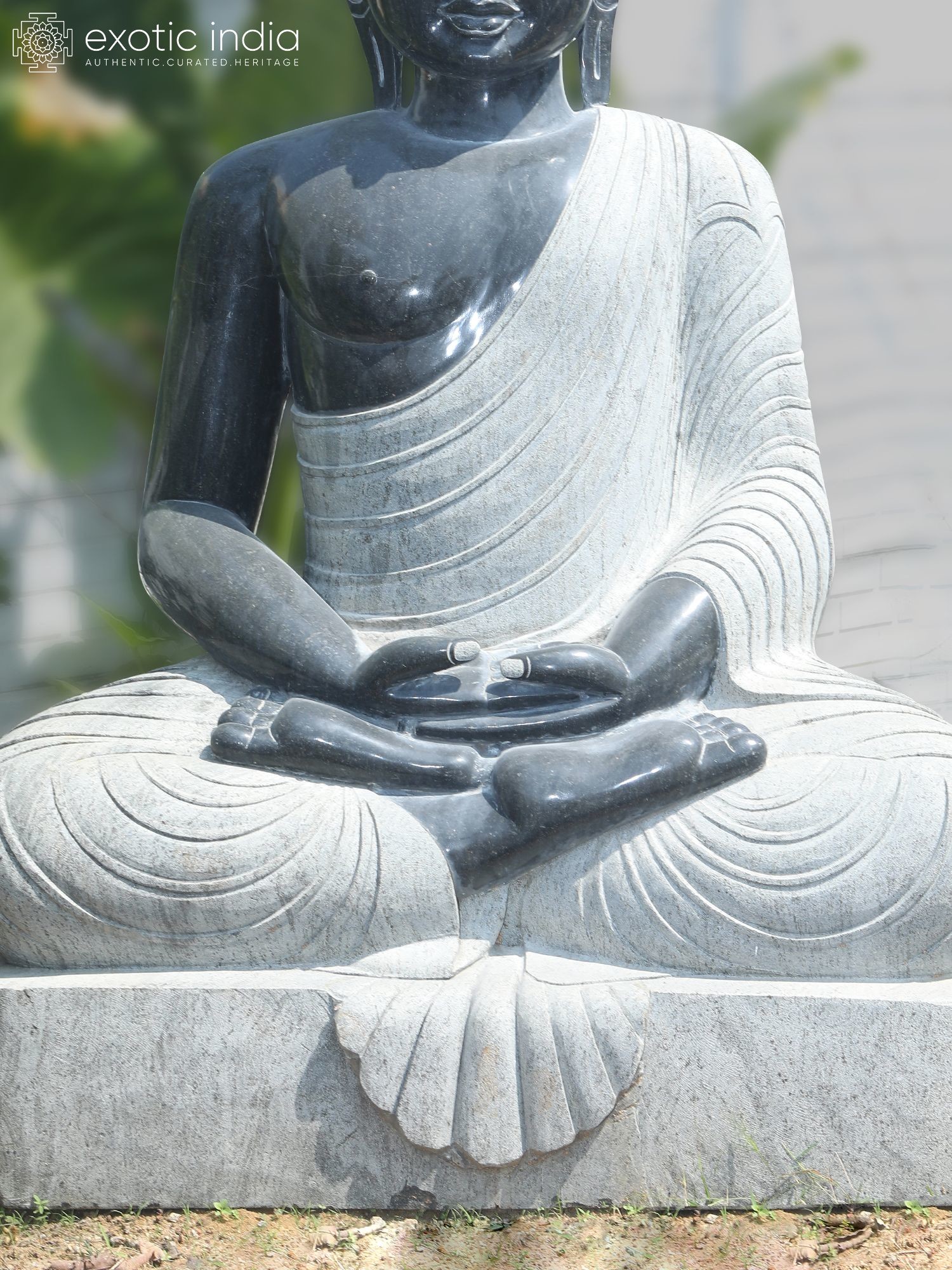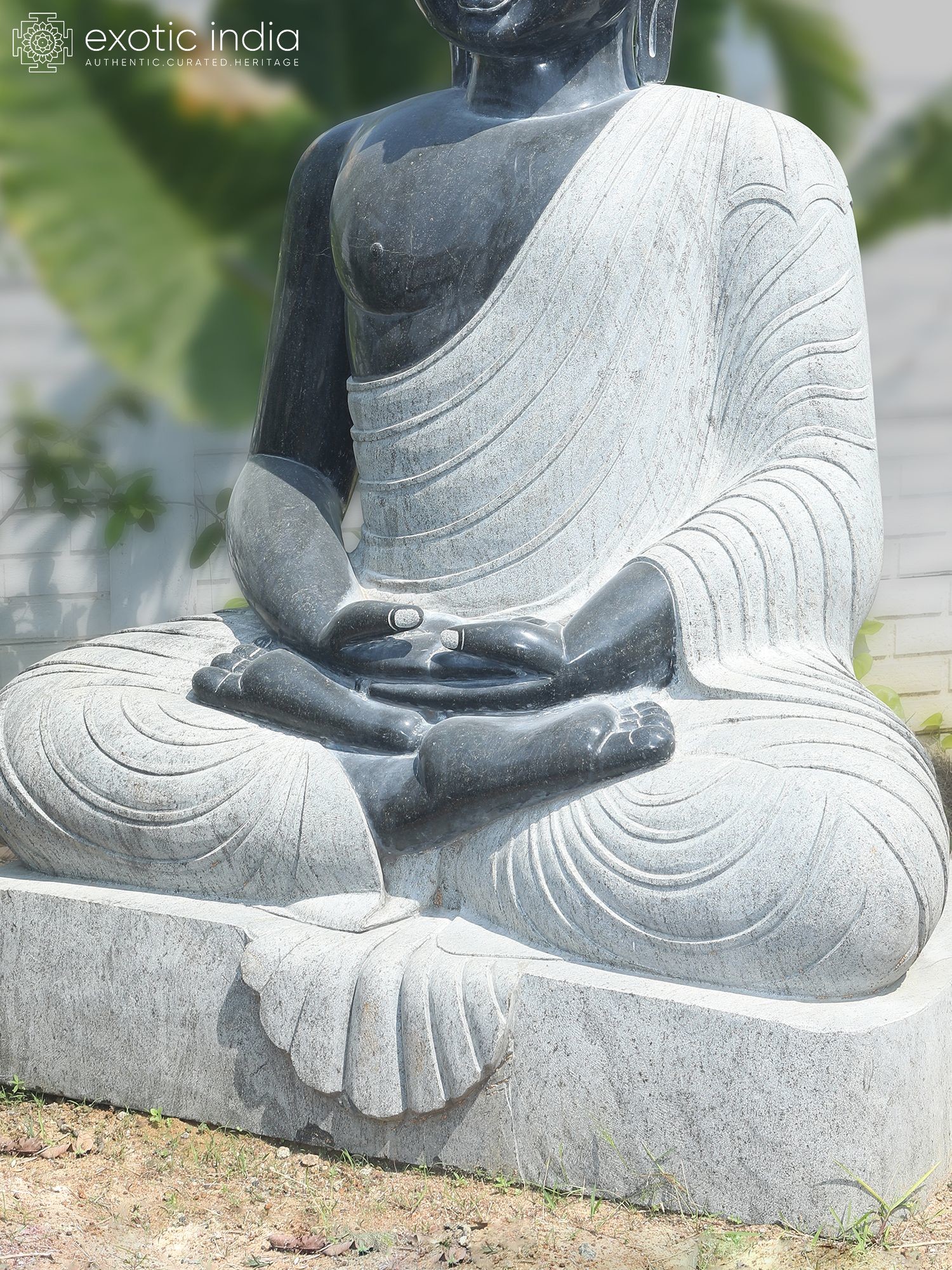 Majestic 82-inch granite statue depicting Lord Buddha in a tranquil meditation pose.
