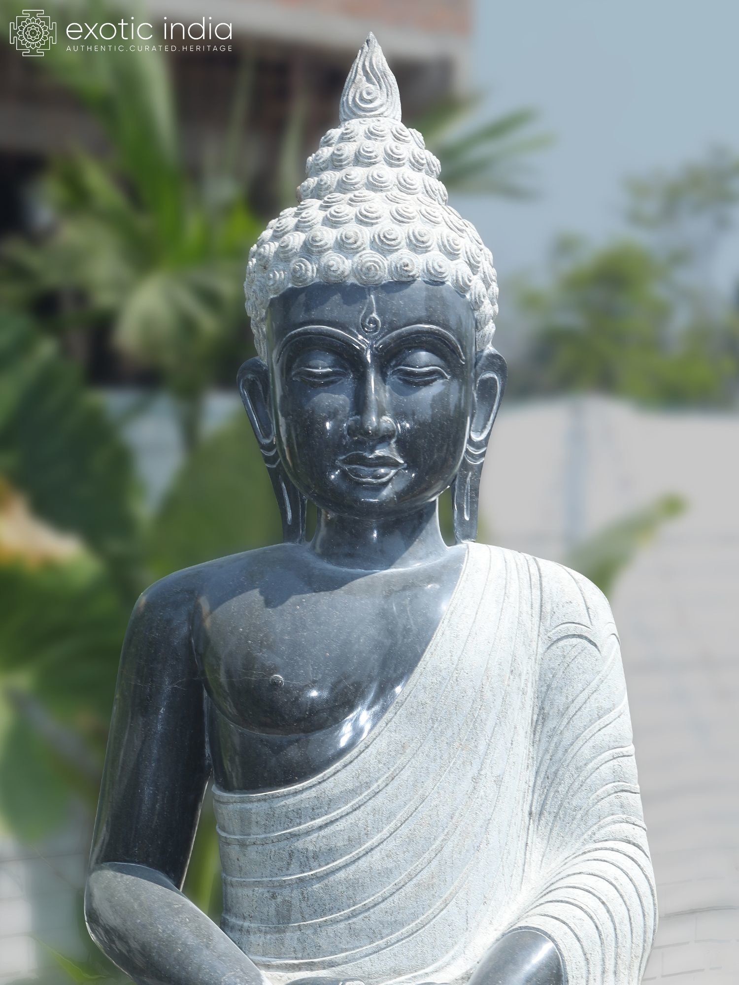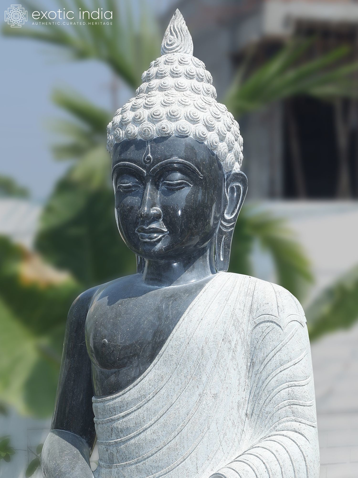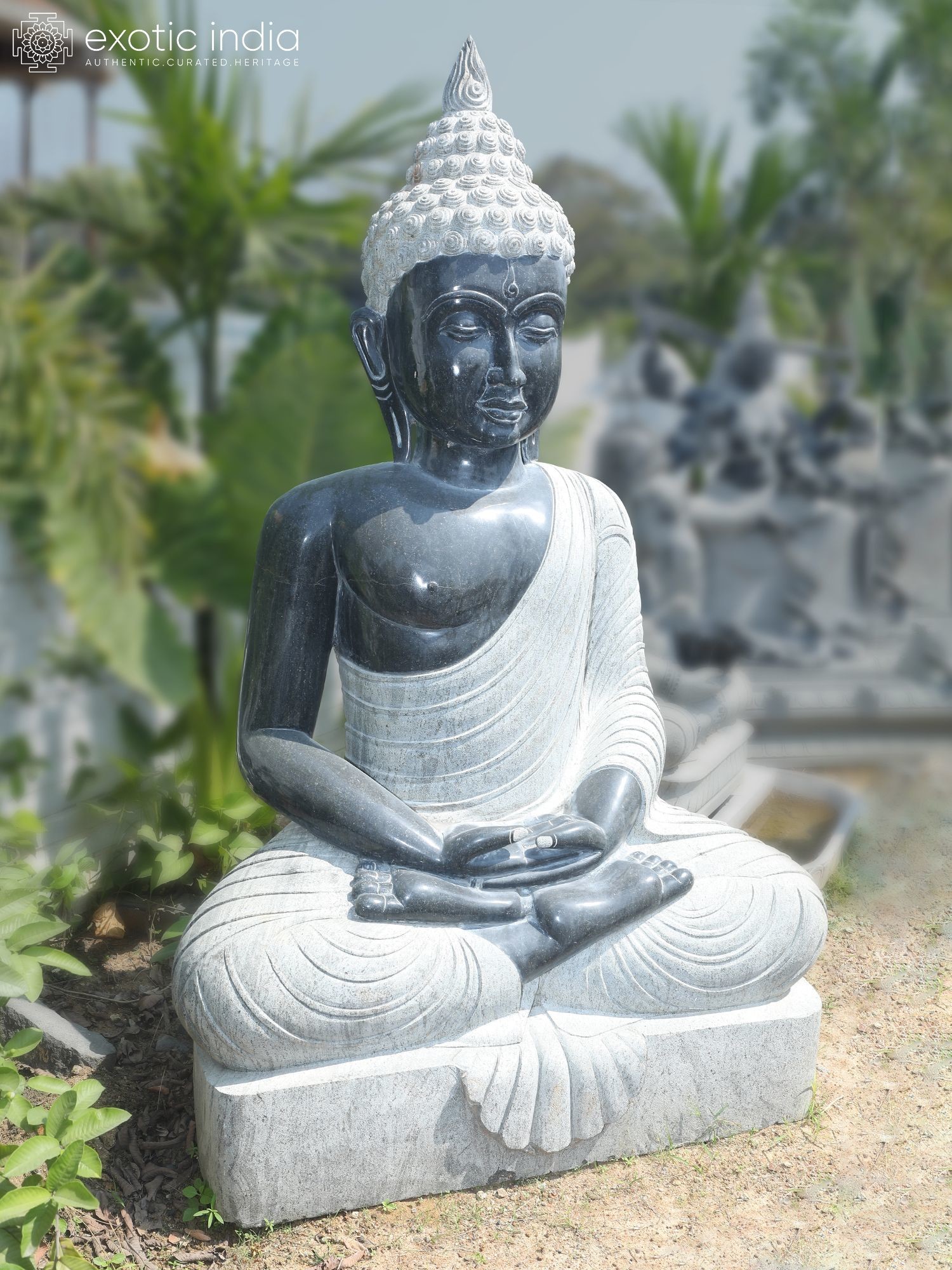 Majestic 82-inch granite statue depicting Lord Buddha in a tranquil meditation pose.