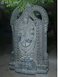 This magnificent 82-inch hand-carved granite stone statue of Lord Tirupati Balaji is a breathtaking testament to the artistry and spiritual devotion of India's rich cultural heritage. The intricate details and imposing size of this piece make it a truly exceptional addition to any collection or outdoor space. Crafted from black granite, its dark, polished surface beautifully contrasts with the detailed carvings, creating a powerful visual impact. Each element, from the Lord's serene expression to the elaborate ornamentation of his attire and the architectural framing, tells a story of ancient traditions and enduring faith.