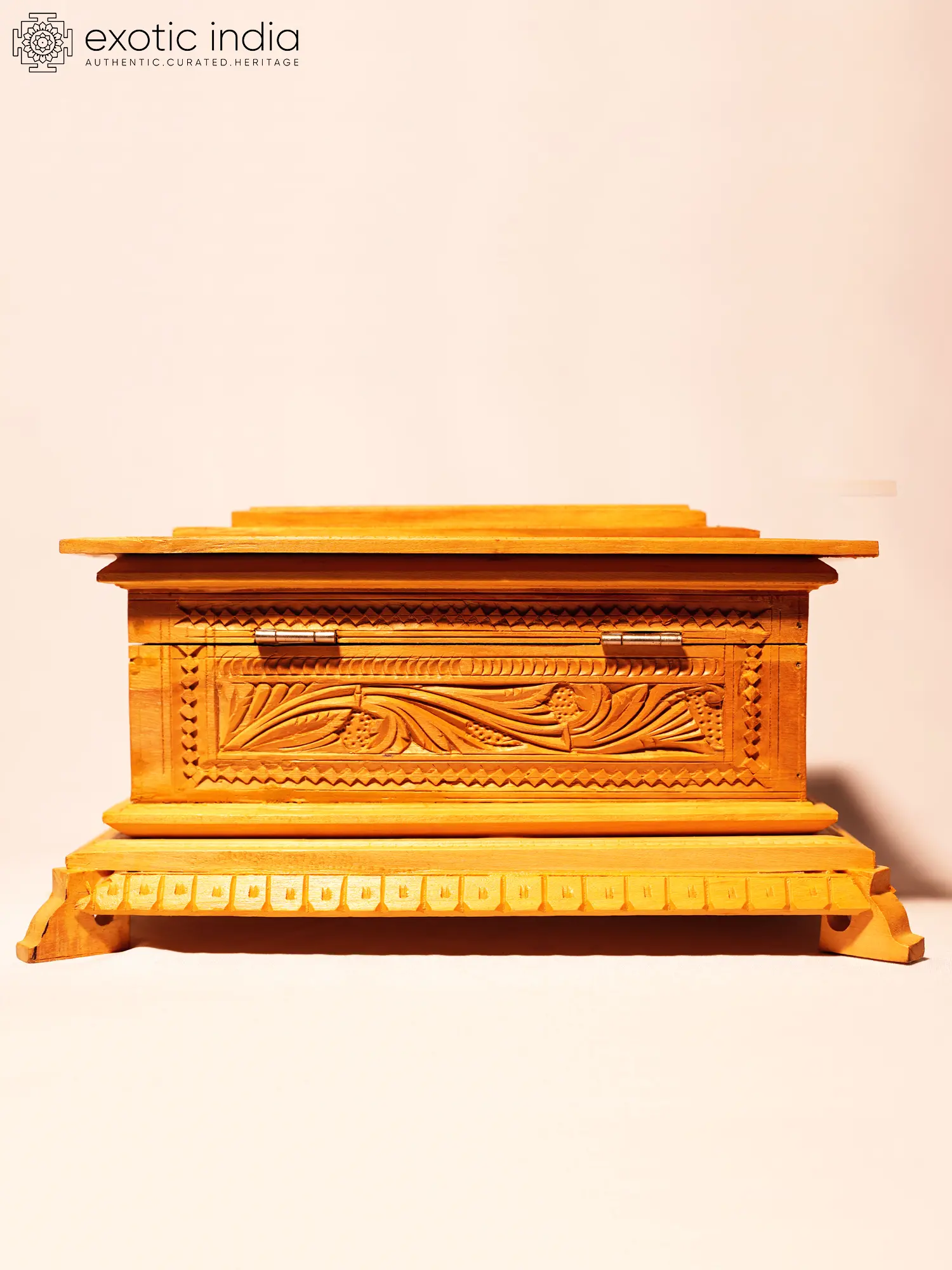 This Beautiful Handcrafted Jewellery Box made of sandalwood is a tempting treasure for art lovers who value unique pieces. The use of sandalwood not only adds a fragrant and luxurious touch but also showcases the artisan's mastery in working with this rare and precious material. Sandalwood's intrinsic aesthetic appeal, coupled with its fine grain and natural fragrance, elevates the box to an exquisite art form.