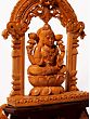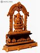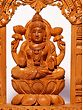 9" Sitting Goddess Lakshmi on Lotus Pedestal | Sandalwood Carved Statue