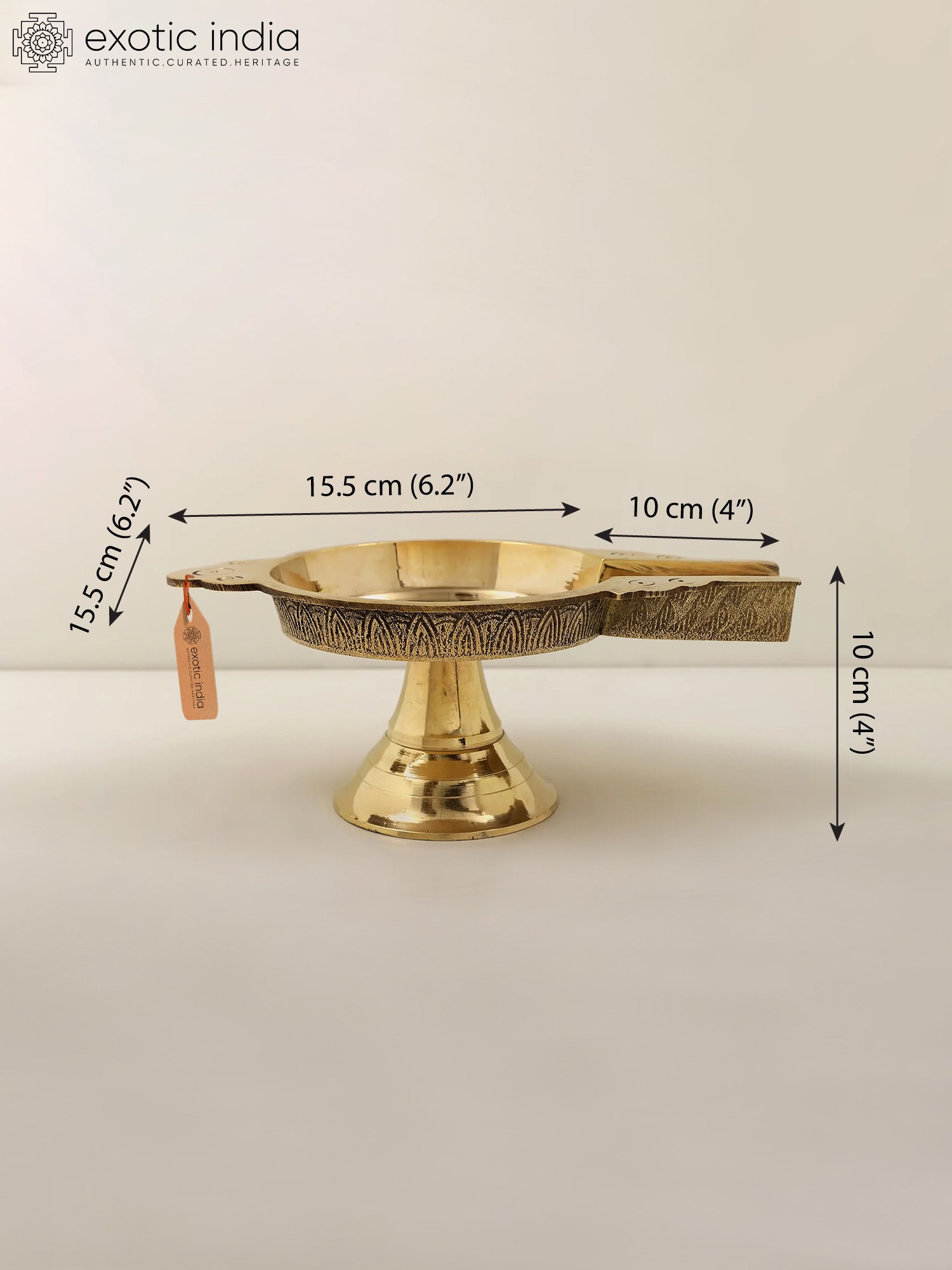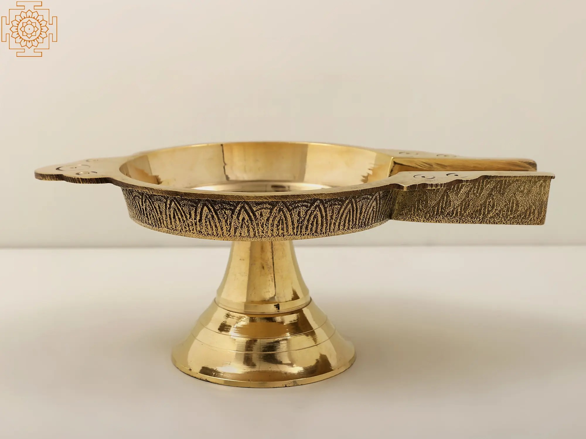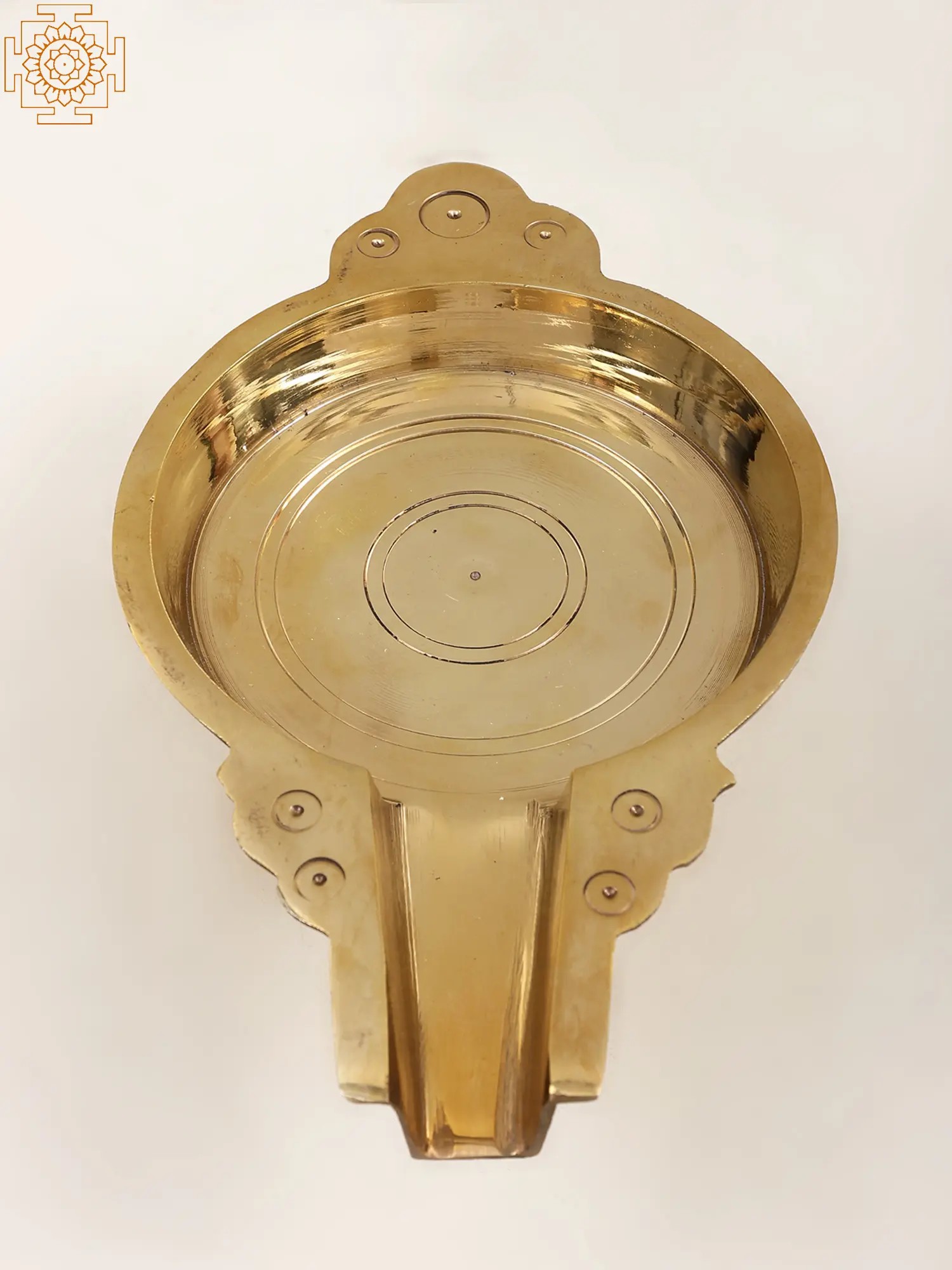 Abhishekam or Abhisheka, literally- sprinkling (of water), is a part of Hindu ritual worship where the devotee consecrates their deity with either Ganga Jal (water from the holy river Ganga) or a combination of milk, curd, honey, clarified butter and water known as “Panchamrita” – five nectars. To assist you in your daily worship routine, Exotic India Art brings to you this brass Abhisheka Patra (vessel).