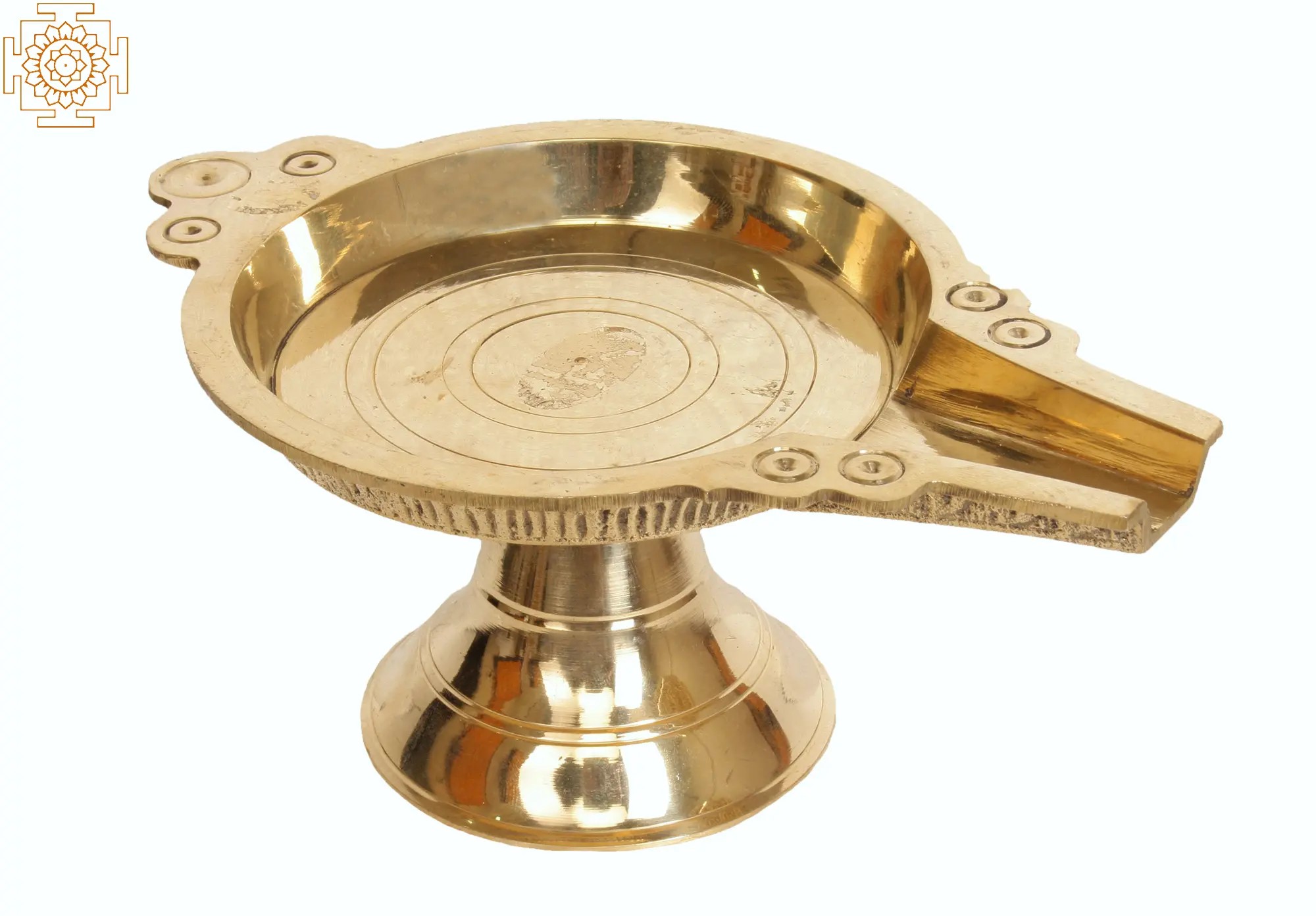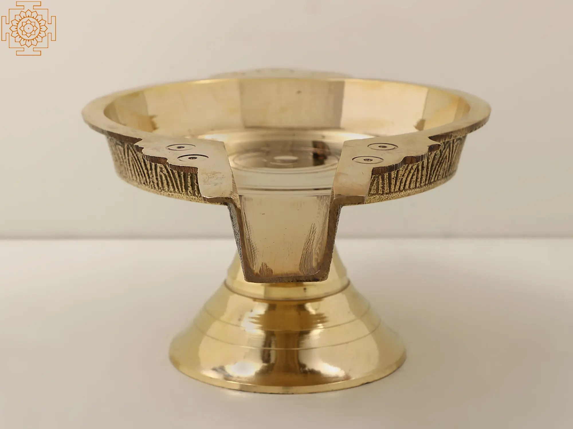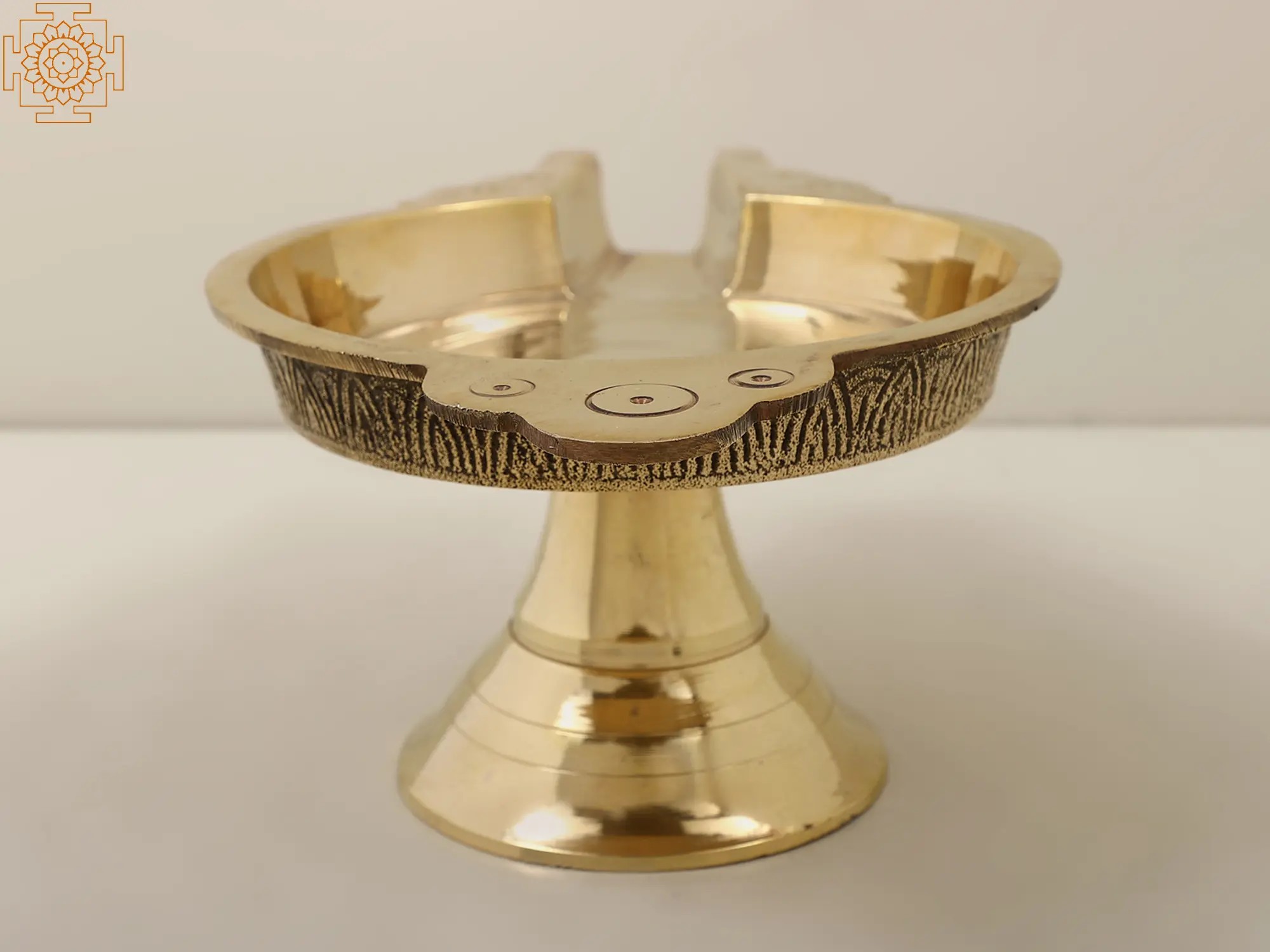 Abhishekam or Abhisheka, literally- sprinkling (of water), is a part of Hindu ritual worship where the devotee consecrates their deity with either Ganga Jal (water from the holy river Ganga) or a combination of milk, curd, honey, clarified butter and water known as “Panchamrita” – five nectars. To assist you in your daily worship routine, Exotic India Art brings to you this brass Abhisheka Patra (vessel).