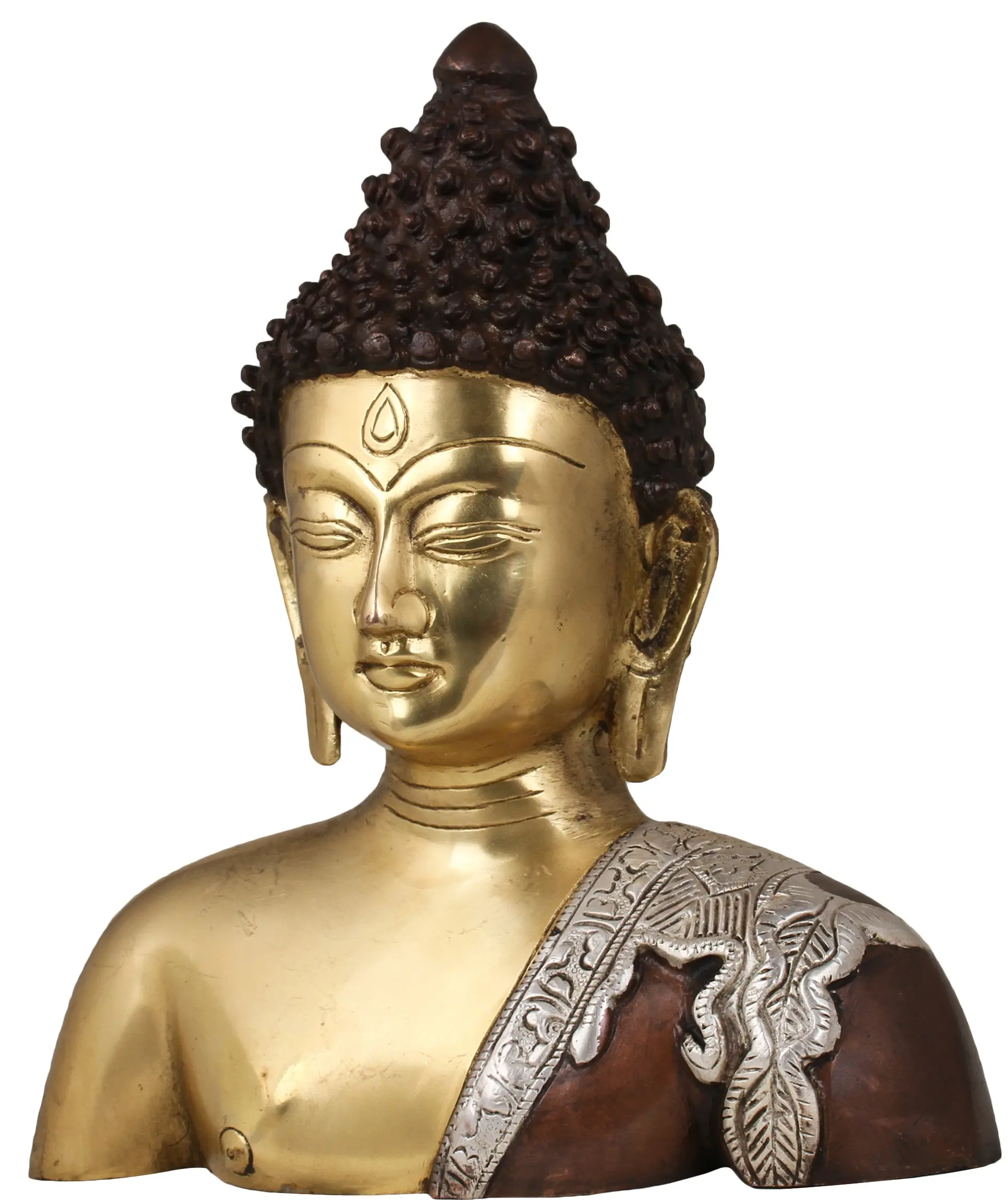The Buddha Bust, a tribute to the enlightened one, is a remarkable piece of artistry handcrafted in India. This brass creation beautifully captures the serenity and wisdom of the Tibetan Buddhist tradition. As you gaze upon this deity, you're reminded of the path to inner peace and enlightenment. May it inspire you to seek tranquillity within your own being and embark on your personal journey towards spiritual awakening.