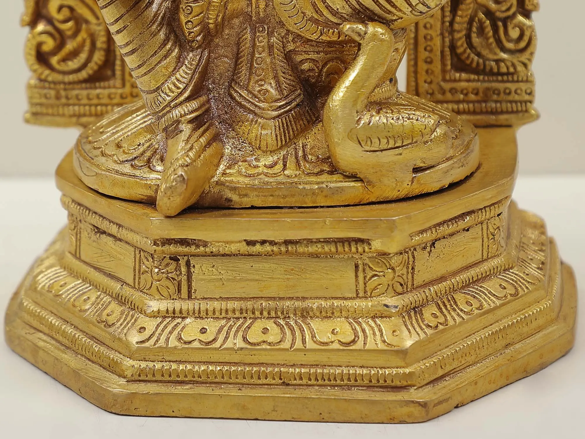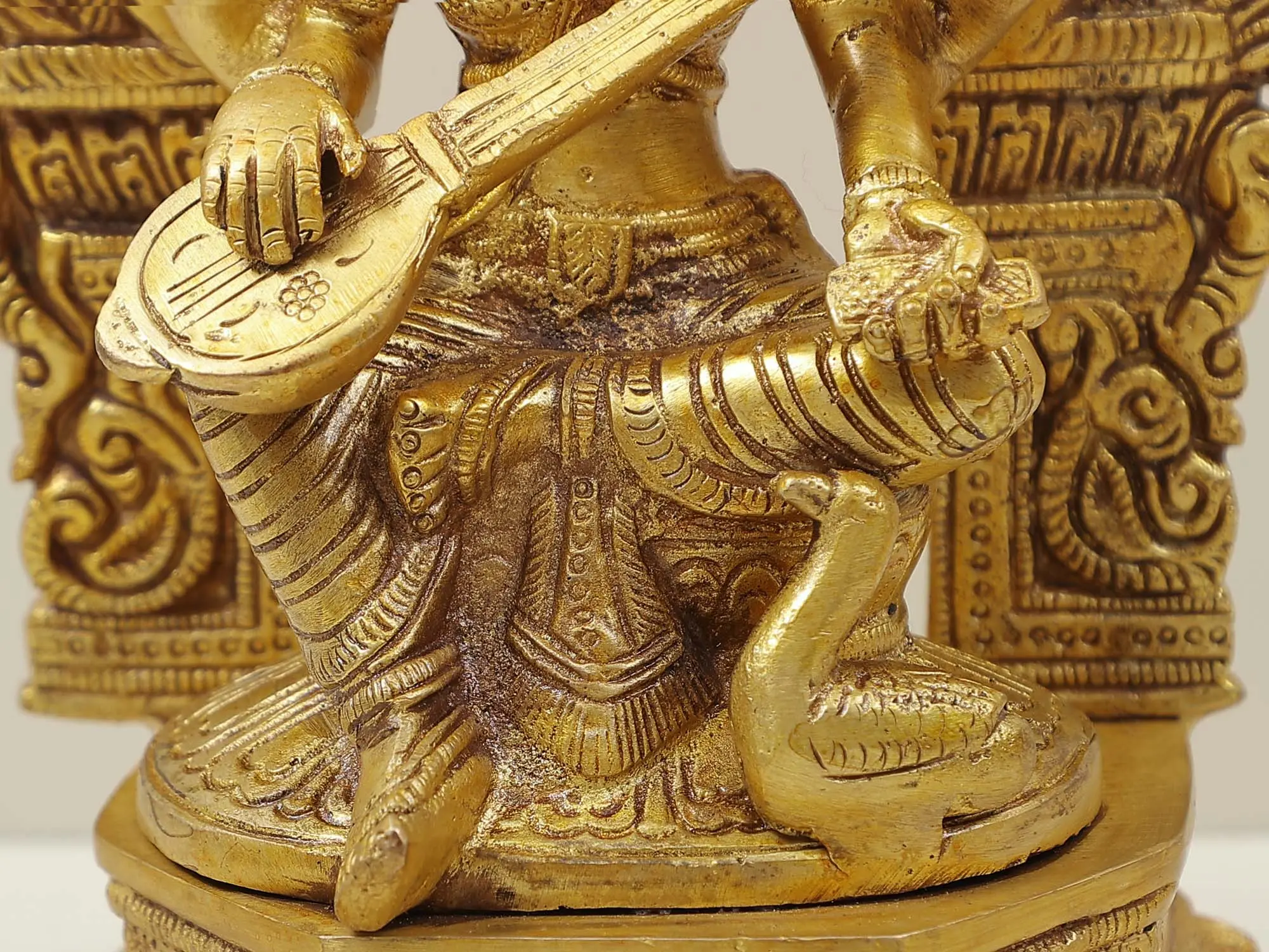 Immerse yourself in the divine world of knowledge and art with our splendid brass sculpture of Goddess Saraswati.