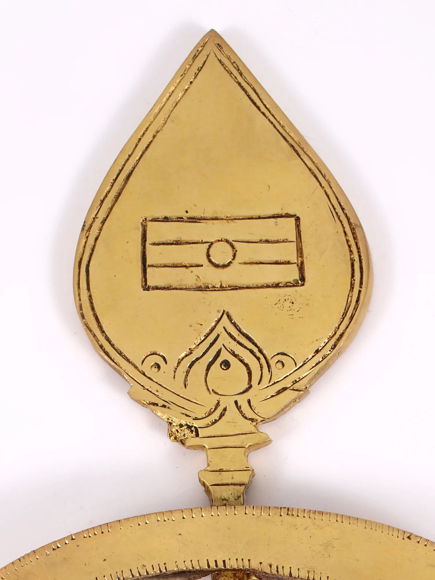 When the Demon Tarkasur declared war on the Gods, they sought Shiva and Parvati and pleaded that their son be sent to defeat the demon. The Divine Lance, known as the 'Vel,' was gifted to Murugan at this time by Goddess Parvati. No force in the Universe could survive the attack of this tremendous Lance, which was endowed with the energies of all the Gods. This Brass Karttikeya Vel with Tamil Om is a symbol that narrates the story and courage of Lord Kartikeya. The Brass Karttikeya Vel is a divine representation, with the sacred Tamil Om as its backdrop. At the center of this emblem, the Vel stands adorned with the Tripundra, a symbol of Lord Shiva, gracing it with spiritual significance. This unique composition embodies the essence of divine protection and blessings.