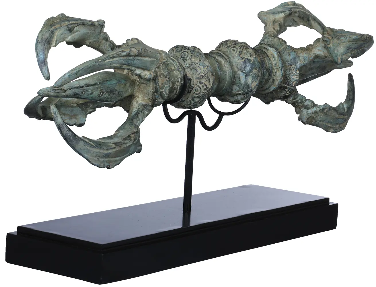 Immerse yourself in the mystique of Tibetan Buddhism with our Large Five-Pronged Dorje on a wooden stand - this brass piece carries the essence of the Vajra, a symbol representing the indestructible and thunderbolt-like qualities of the enlightened mind. The Dorje's five prongs symbolise the five wisdoms and the five elements, offering profound insights into the interconnectedness of life. It's a spiritual tool that empowers you to cut through ignorance and delusion, ultimately leading to enlightenment. Add a touch of Tibetan spirituality to your space and embark on a journey of self-discovery and wisdom with this unique and meaningful artefact.