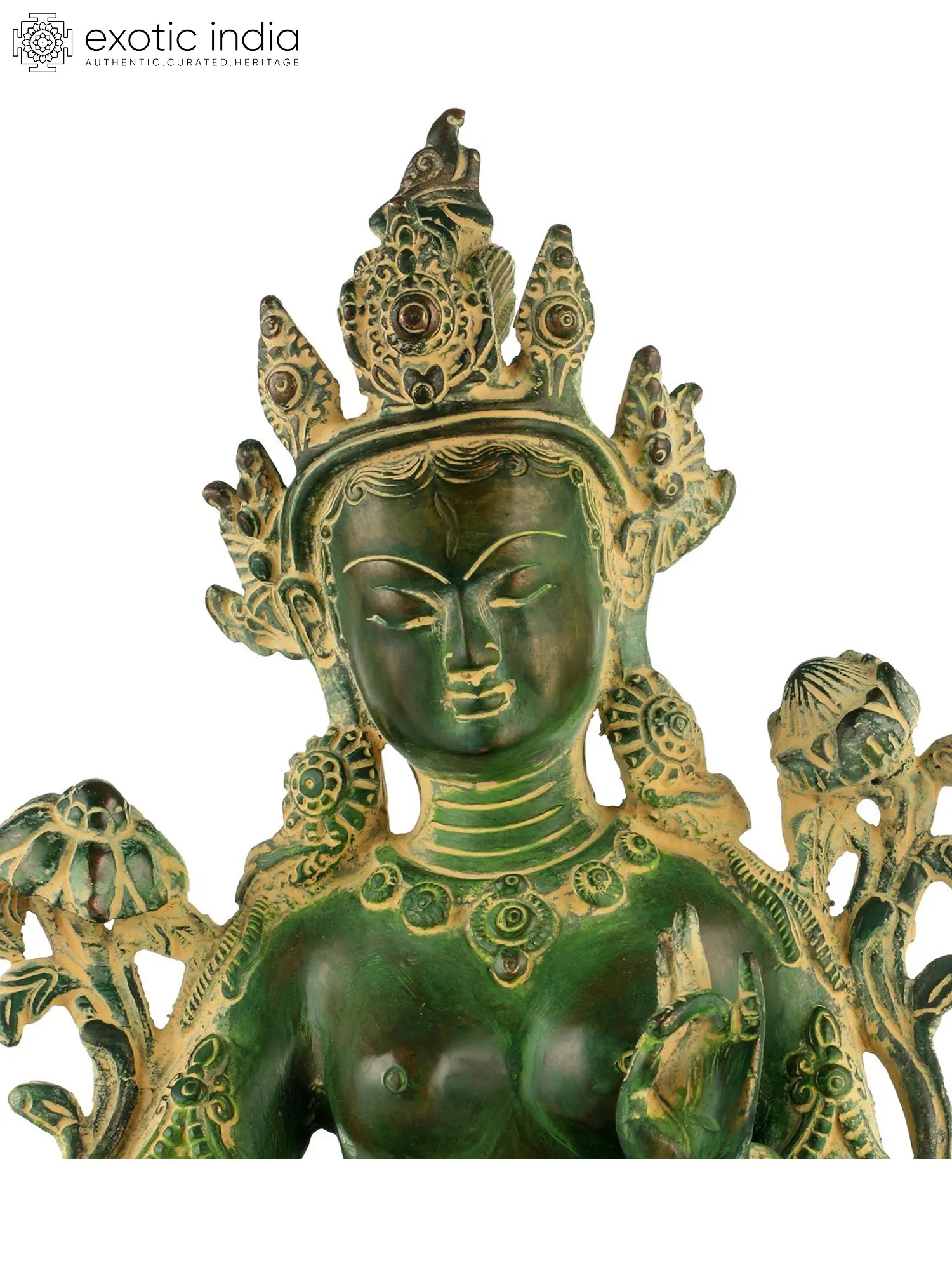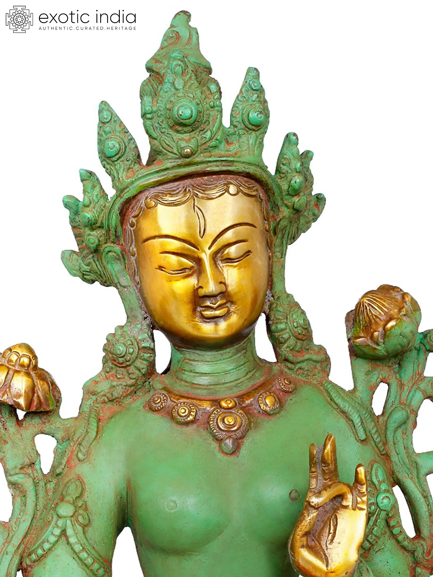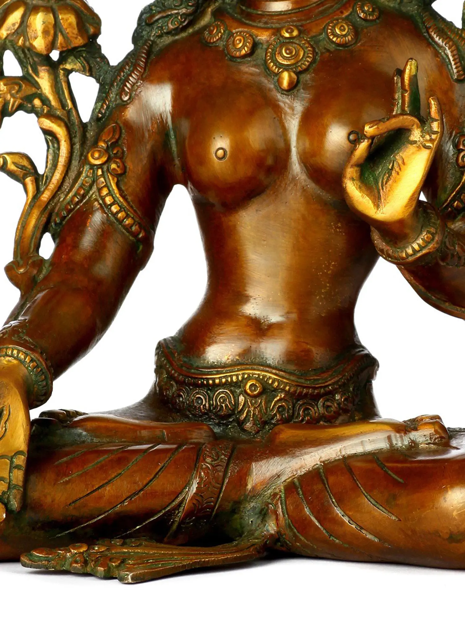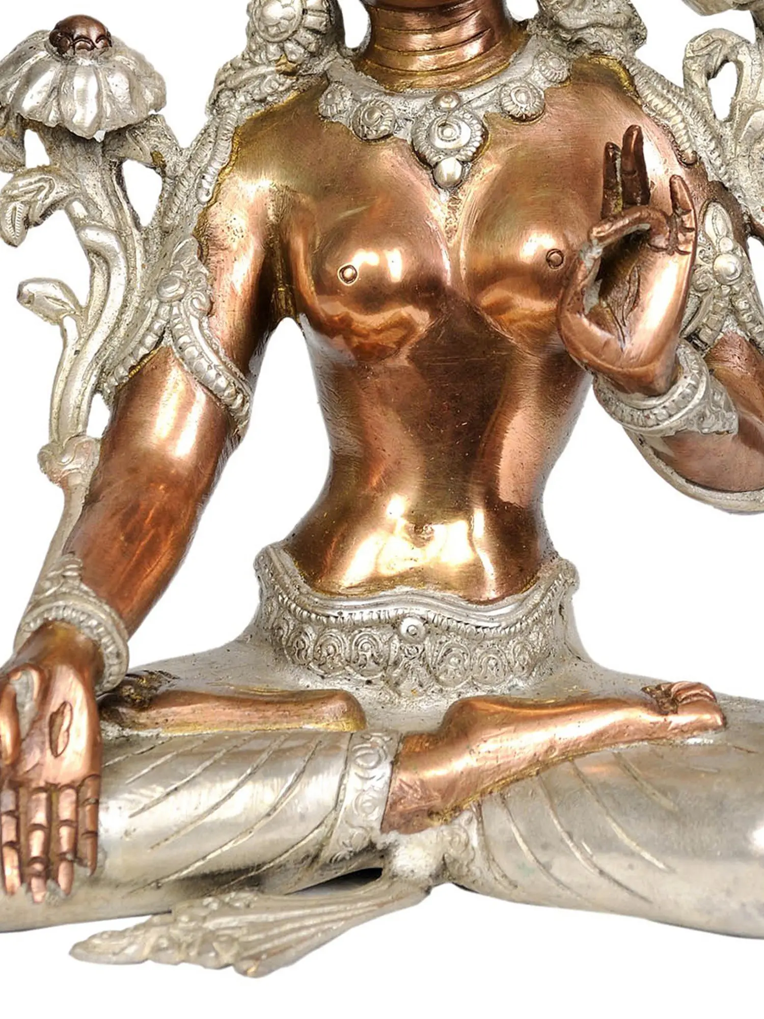 Personifying compassion, purity, and the capacity to ease suffering, the White Tara is a highly regarded figure in Buddhism. By using brass to give the statue an aged and refined appearance, this depiction expertly portrays her tranquil and graceful beauty. Crafted from this noble substance, the artwork represents blessings, healing, and protection. It serves as a focus of devotion and inspiration for people looking for spiritual direction and comfort. Brass has been added to the sculpture, enhancing its aesthetic and cultural significance and highlighting the rich history and symbolism connected to White Tara in Buddhism.
