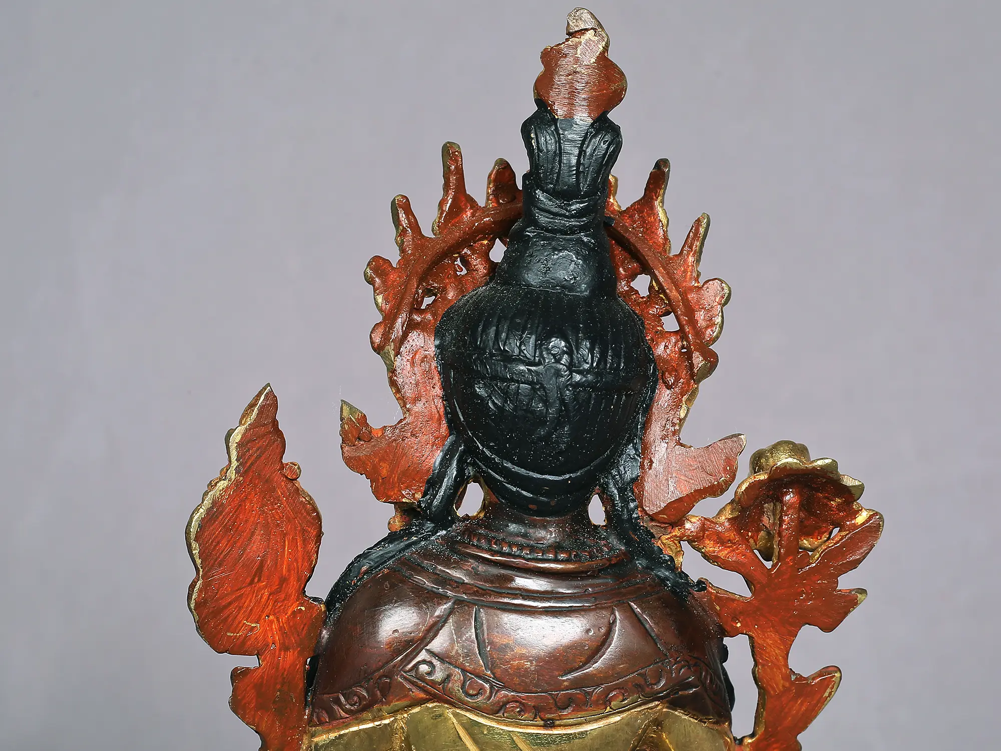 In this sacred depiction, White Tara's Vitarka Mudra becomes a gesture of compassionate guidance, offering solace and understanding to those who seek her benevolent presence. The delicate balance of her pose, combined with the serene countenance, creates a tableau of tranquility, inspiring contemplation and devotion.