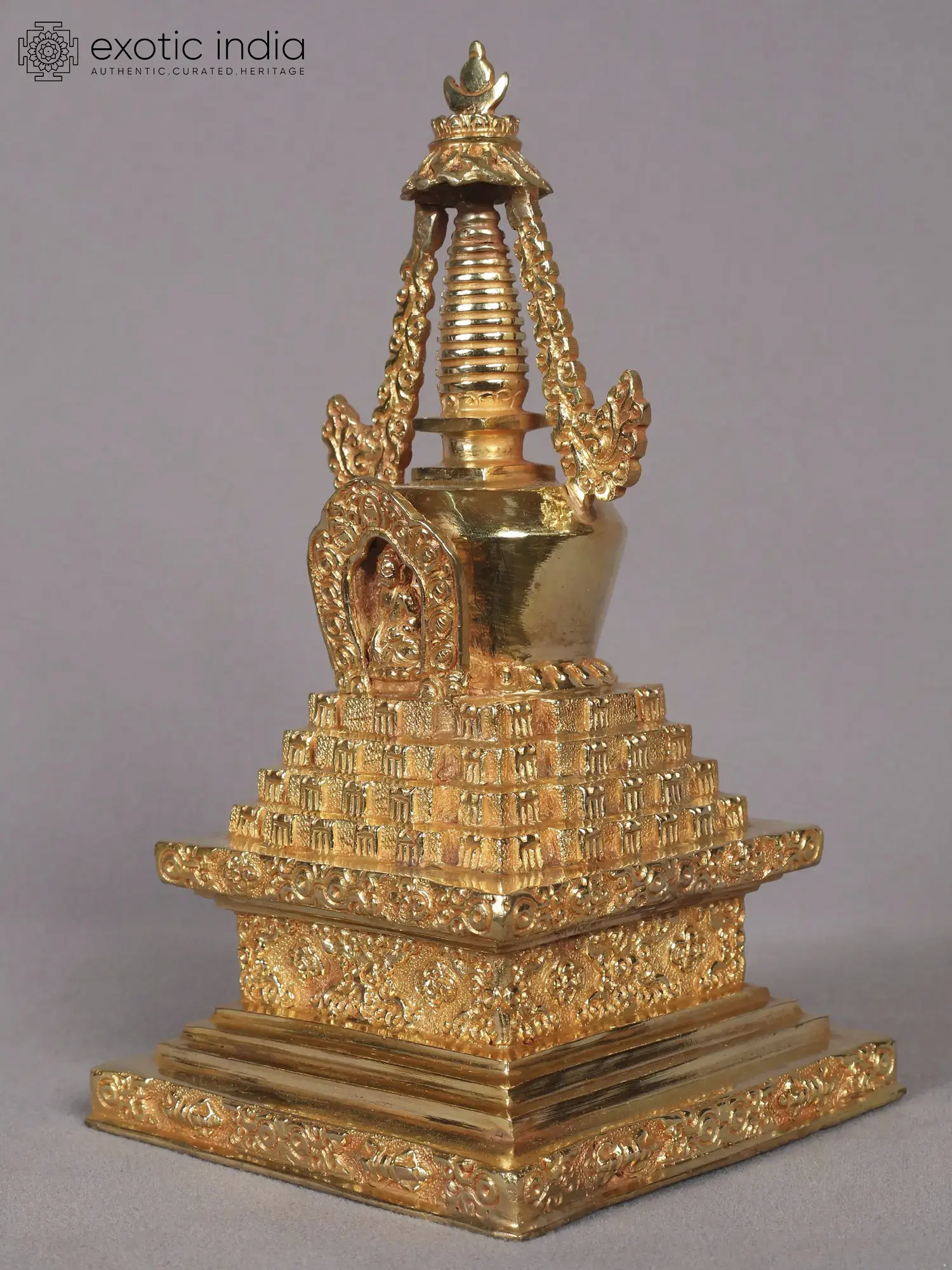 The stupa's elevated base embodies the meditative form of Buddha, signifying transcendence and spiritual elevation. Meditating and offering prayers near a Buddhist Stupa is believed to generate positive energy, dispelling negative influences and fostering inner peace. This sacred monument invites individuals on a spiritual journey and serves as a focal point for tranquility within the confines of a peaceful home environment, enveloping one in a sense of serenity and spiritual connection.