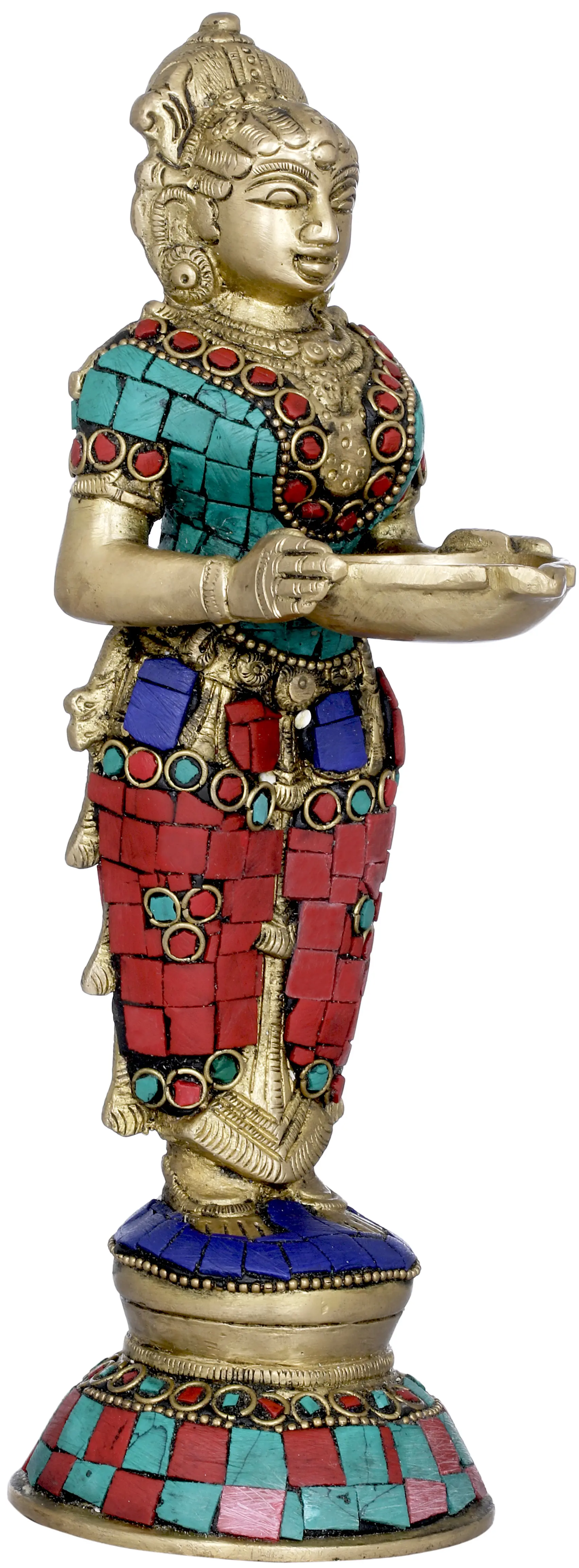 India's handcrafted masterpiece, the gorgeous 9-inch Deepalakshmi brass inlay, is very remarkable. This gorgeous brass lamp, which has an exquisitely adorned figure of Goddess Lakshmi, the symbol of riches and success, adds a further level of craftsmanship and elegance. This lamp is both a light source and a representation of a deity, both of which are painstakingly made by hand. With its intricate design and superb brass craftsmanship, it pays tribute to India's spiritual traditions and rich cultural heritage. Whether it is used for religious events or just as a gorgeous ornament, it gives your space a hallowed and opulent aura.