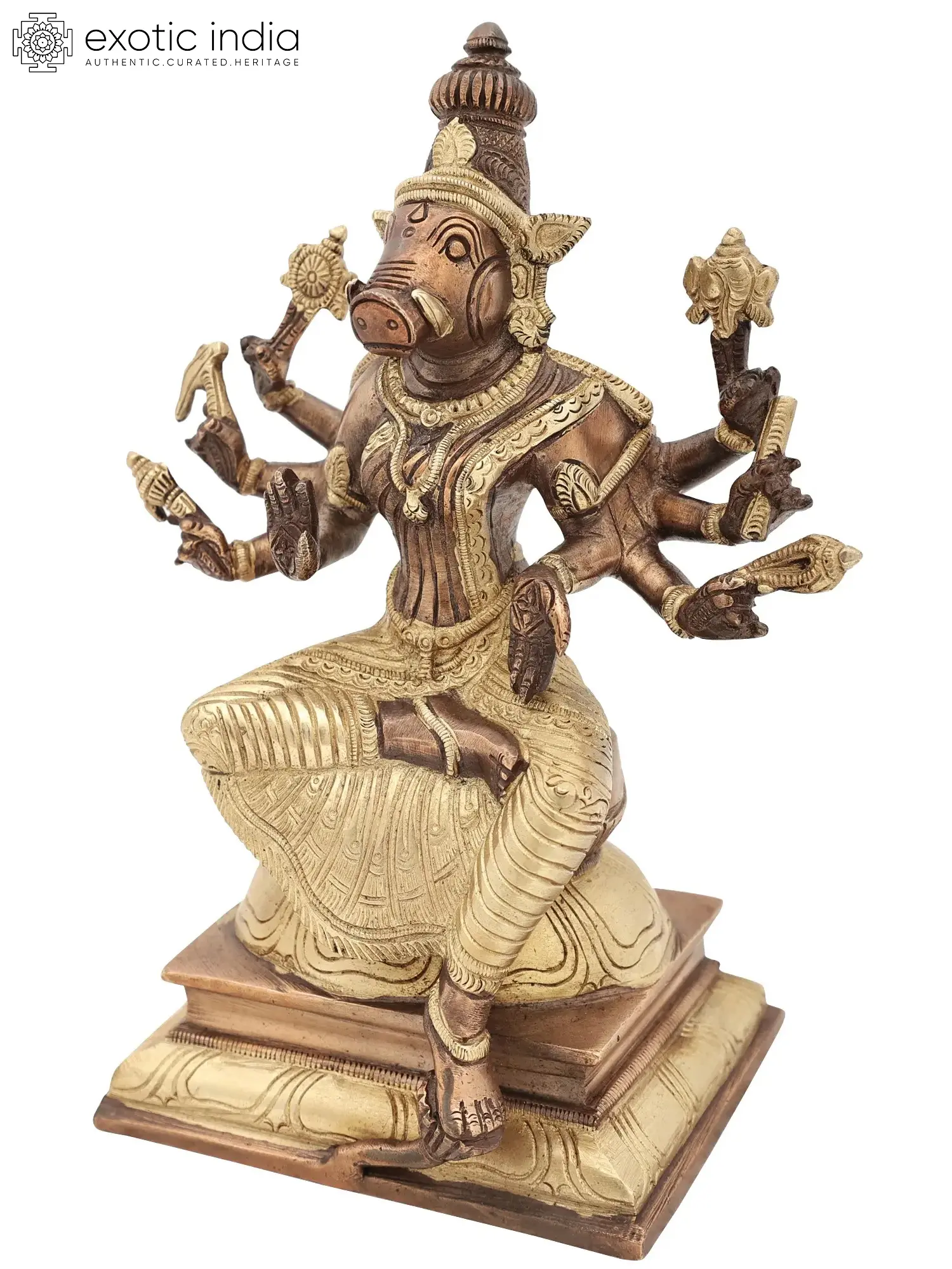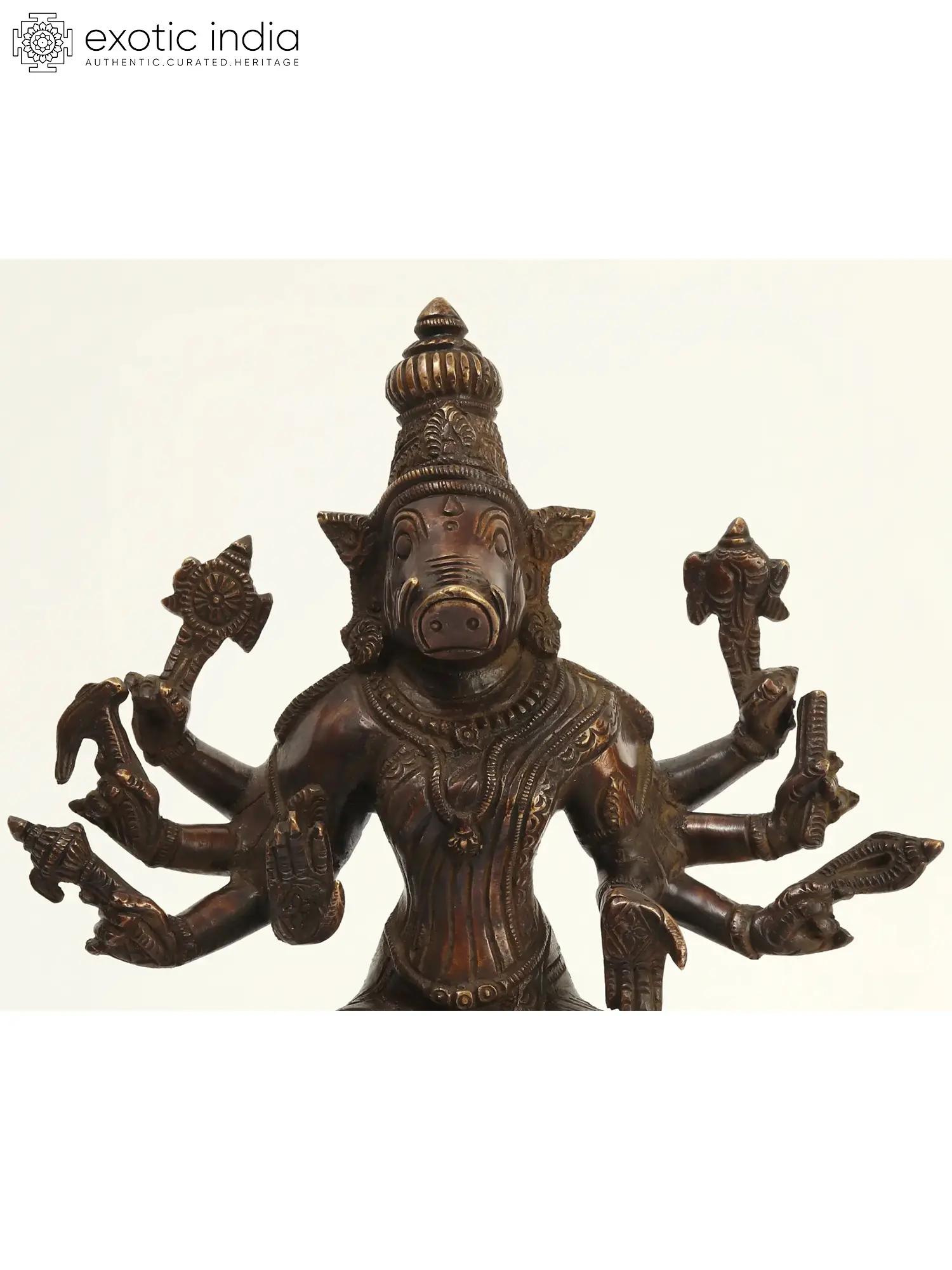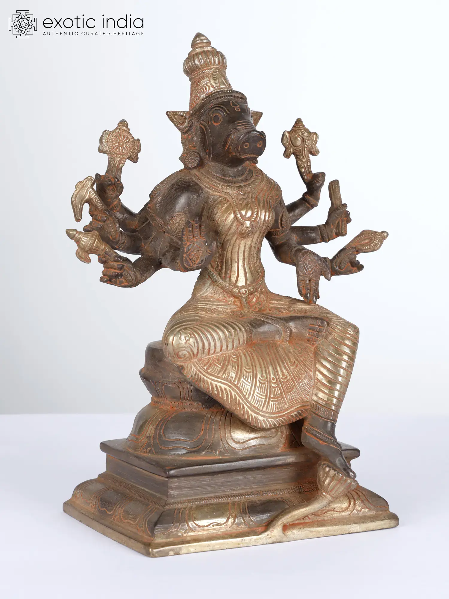 9" Eight-Armed Goddess Varahi Brass Idol | Handcrafted Indian Statues