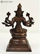 This magnificent 9.5-inch tall brass statue of Varahi, the eight-armed Goddess, is a testament to the rich artistry and spiritual depth of Indian craftsmanship. Each intricate detail, from the fierce yet serene expression on her face to the meticulously carved weapons in her hands, speaks volumes about the dedication and skill poured into its creation. The beautiful patina, a blend of dark and light tones, adds to its antique charm and evokes a sense of timeless reverence. This is not just a decorative piece; it's a powerful symbol of strength, protection, and divine energy, ready to grace your home or sacred space.