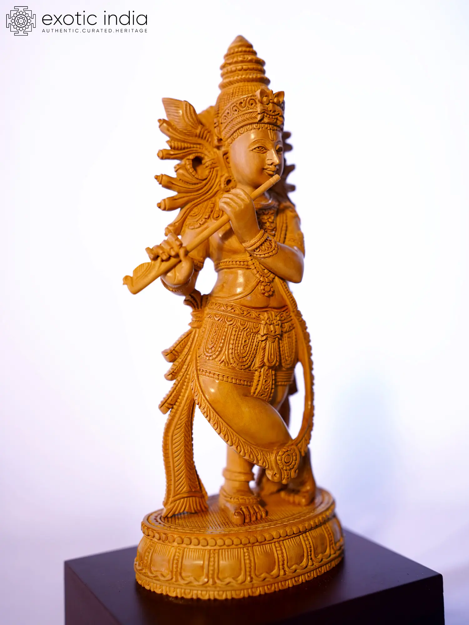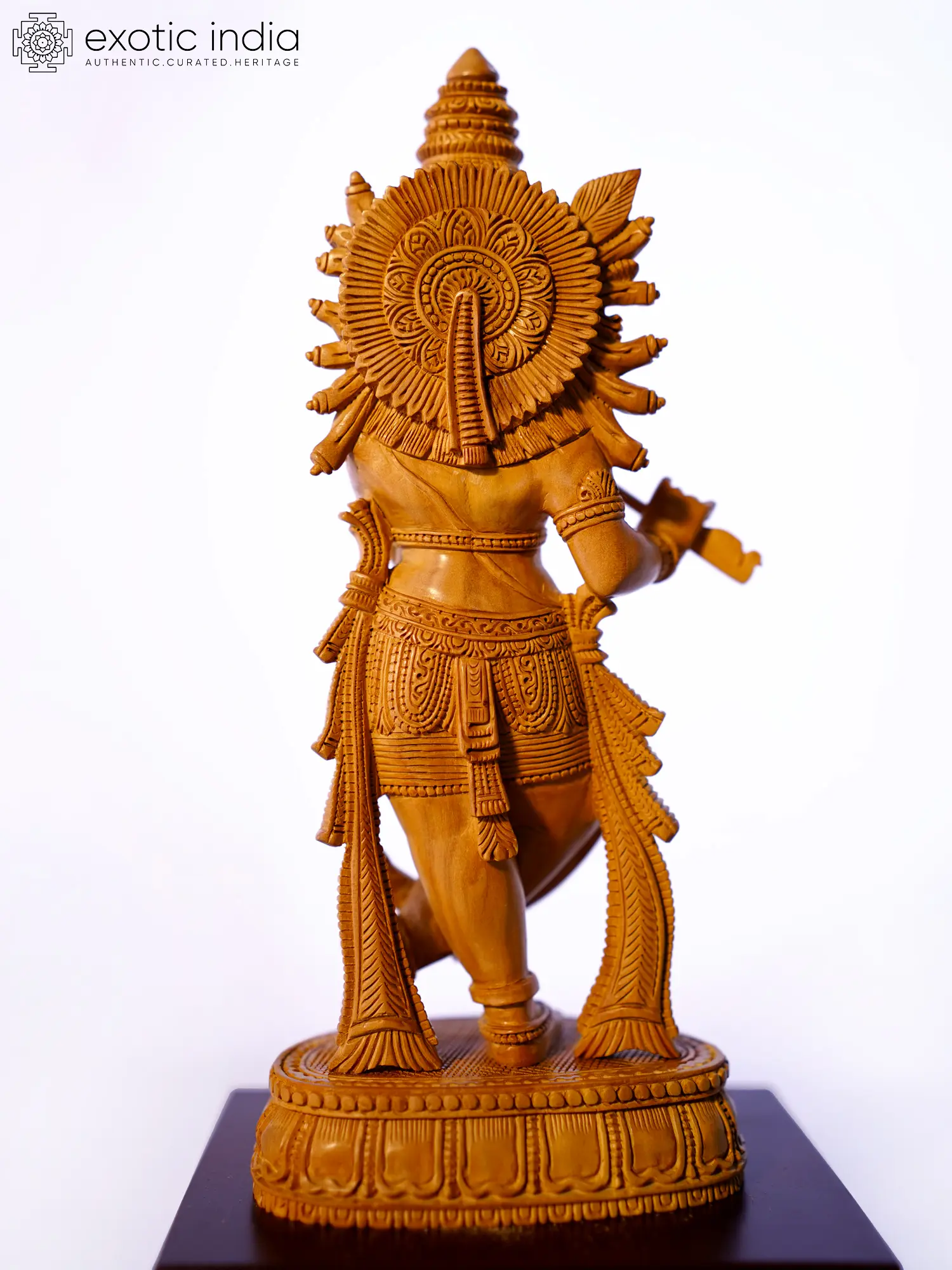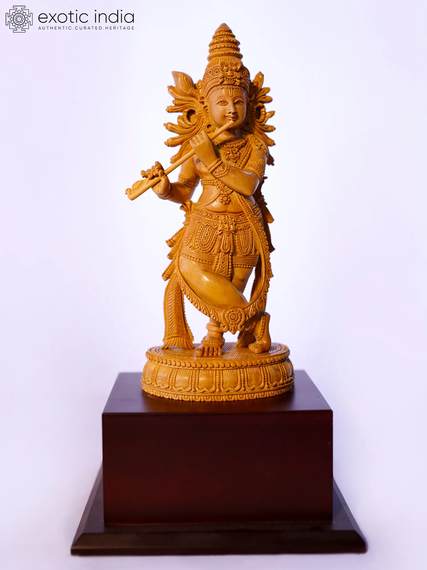 9" Fluting Lord Krishna | Sandalwood Carved Statue