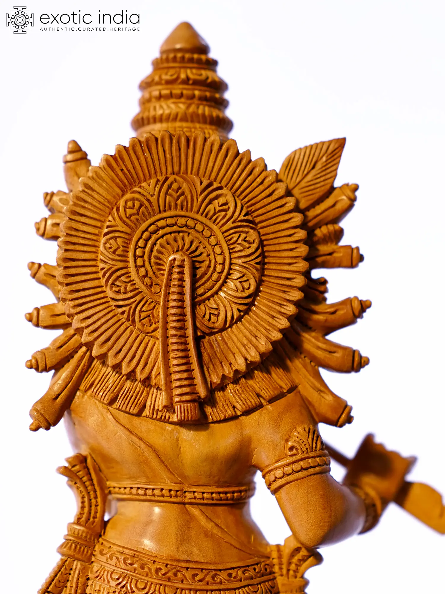 This sandalwood statue offers a tangible connection to the rich mythology and artistic heritage of India. It is an ideal centerpiece for any space, inviting contemplation and adding a touch of serenity to your home. Display it in your puja room, living room, or office – let the divine presence of Lord Krishna infuse your surroundings. This statue is a testament to the skill of the artisans who meticulously brought it to life and a reminder of the enduring power of faith and beauty. Every curve and detail is carved with precision and care. This statue, measuring 9.0 x 4.0 x 2.5 inches, serves as a beautiful reminder of the eternal love and joy that Krishna embodies.