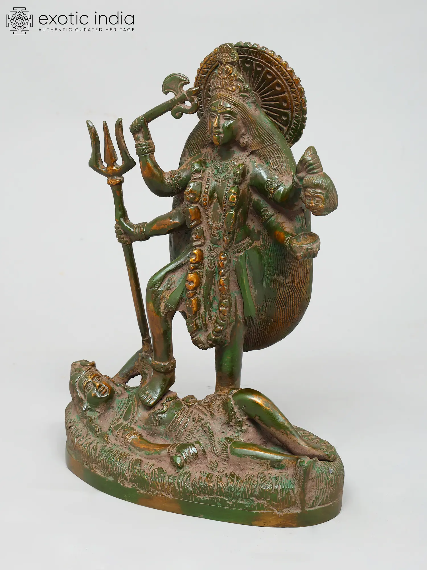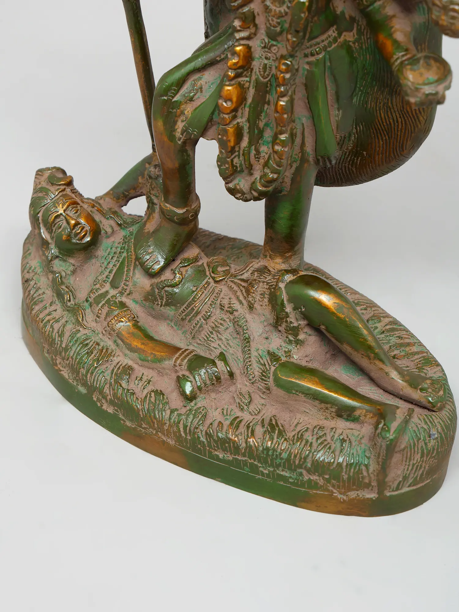 11" Brass Goddess Kali Statue Standing atop Lord Shiva