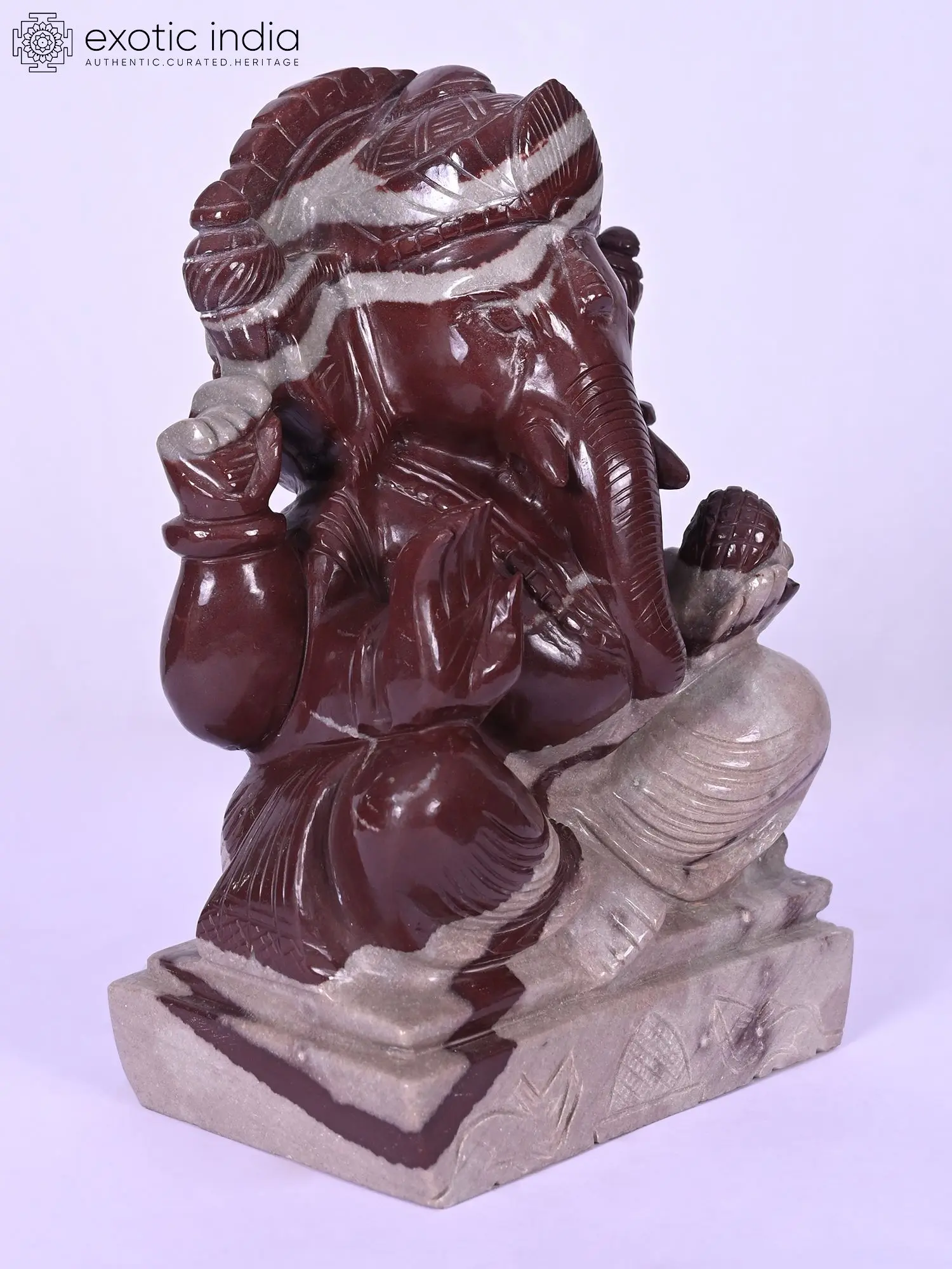 12" Chaturbhuj Lord Ganesha Statue Holding Modak | Orissa Stone Sculpture