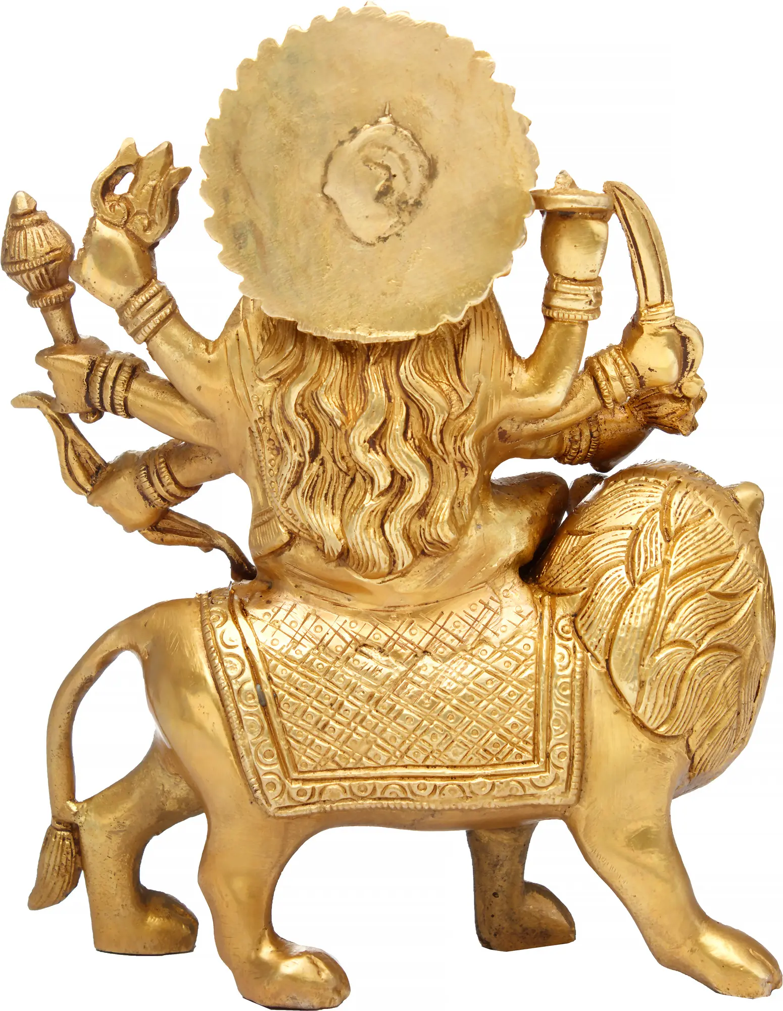 Embrace the divine power and protective aura of Goddess Durga with this exquisite brass sculpture. Crafted with meticulous attention to detail in India, this piece stands as a testament to the rich artistic heritage and spiritual devotion of its origin. The lustrous brass captures the essence of the Mother Goddess, radiating strength, grace, and unwavering resolve.