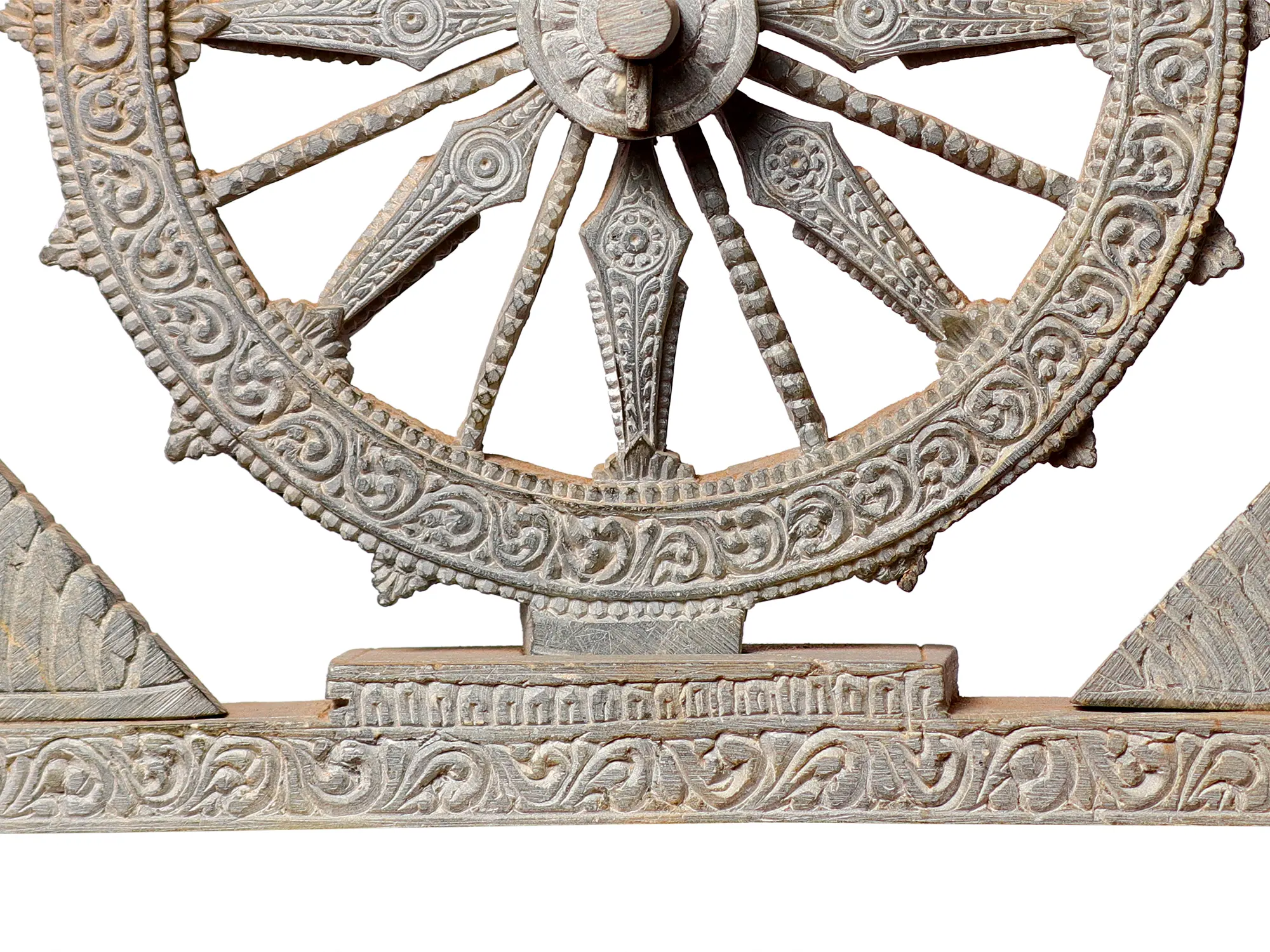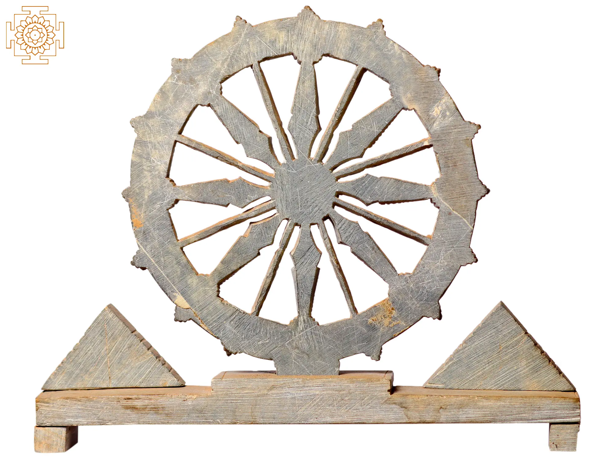To possess this carving is to invite a sense of peace, purpose, and spiritual awareness into your space. Its presence can serve as a constant reminder of the cyclical nature of life, the importance of righteous action (Dharma), and the ultimate pursuit of spiritual understanding. Whether placed in a meditation room, a study, or as a striking centerpiece in your home, this Dharma Chakra is sure to be a conversation starter and a source of profound inspiration, connecting you to the timeless wisdom that has shaped civilizations.