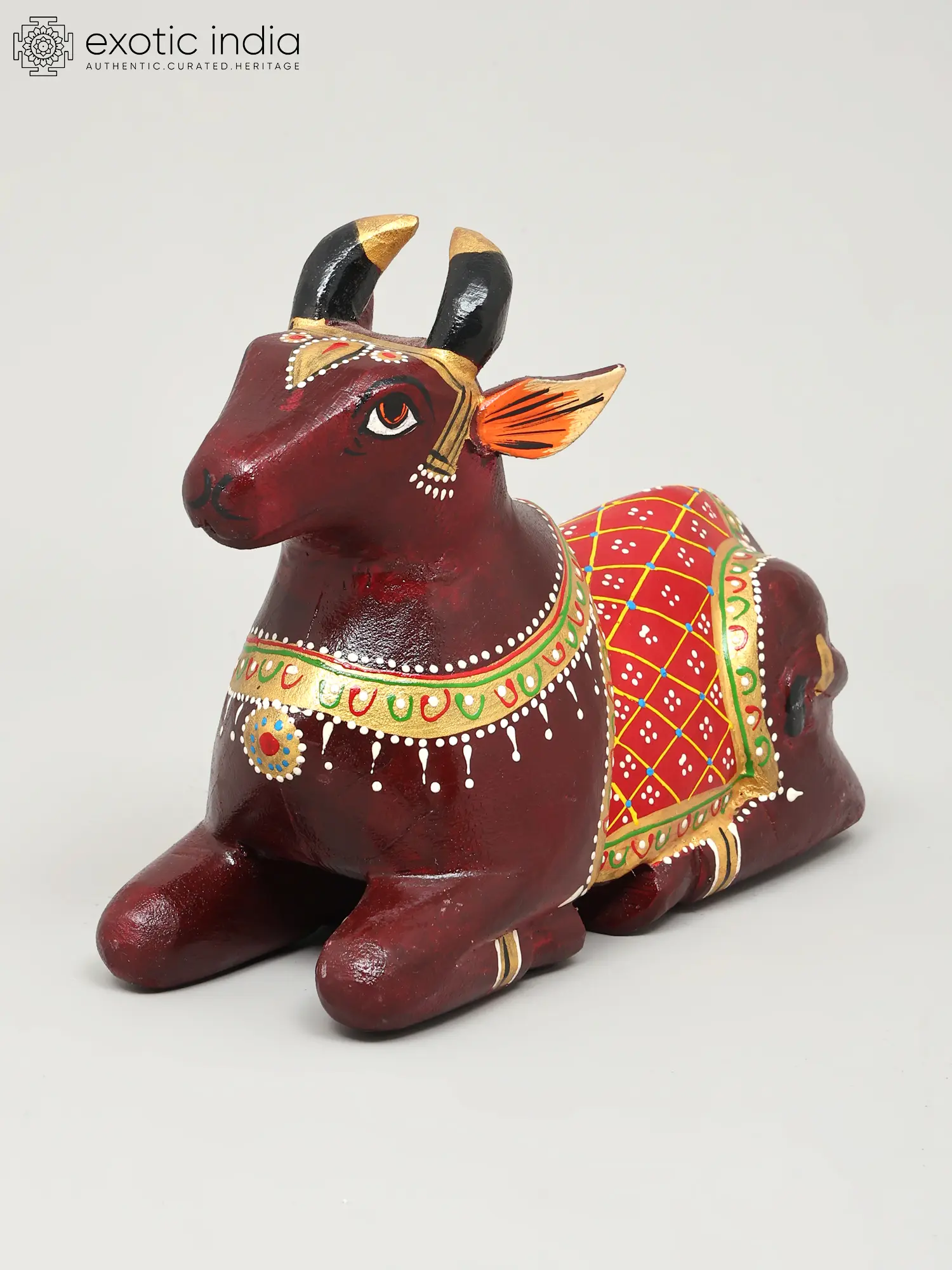 This representation embodies Nandi, the sacred bull and devoted mount of Lord Shiva in Hindu mythology. Revered for his unwavering loyalty, strength, and purity, Nandi symbolizes dharma and righteous living. His calm, seated posture signifies patience and steadfastness, reflecting an embodiment of divine virtue and a guardian of sacred spaces.