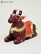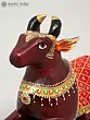 The graceful repose of this figure, measuring nine inches in height, is captivating. Its deep, rich maroon hue forms a striking base, beautifully offset by the intricate patterns adorning its back and neckline. Golden accents highlight the powerful horns, elegantly shaped ears, and the detailed depiction of the eyes, imbuing it with a lively, watchful presence.