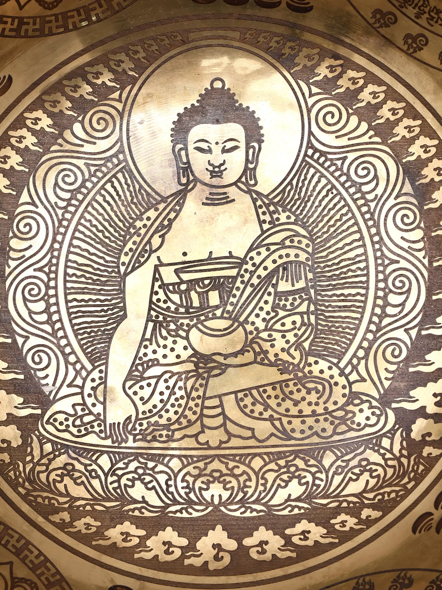 Imagine this magnificent bowl gracing your meditation corner, yoga studio, or quiet study. Its presence alone can transform a space, creating an ambiance conducive to healing and introspection. When struck or played, its ethereal tones will wash over you, guiding you into a state of deep relaxation and mental clarity. It serves as a beautiful reminder to pause, breathe, and reconnect with your inner stillness.