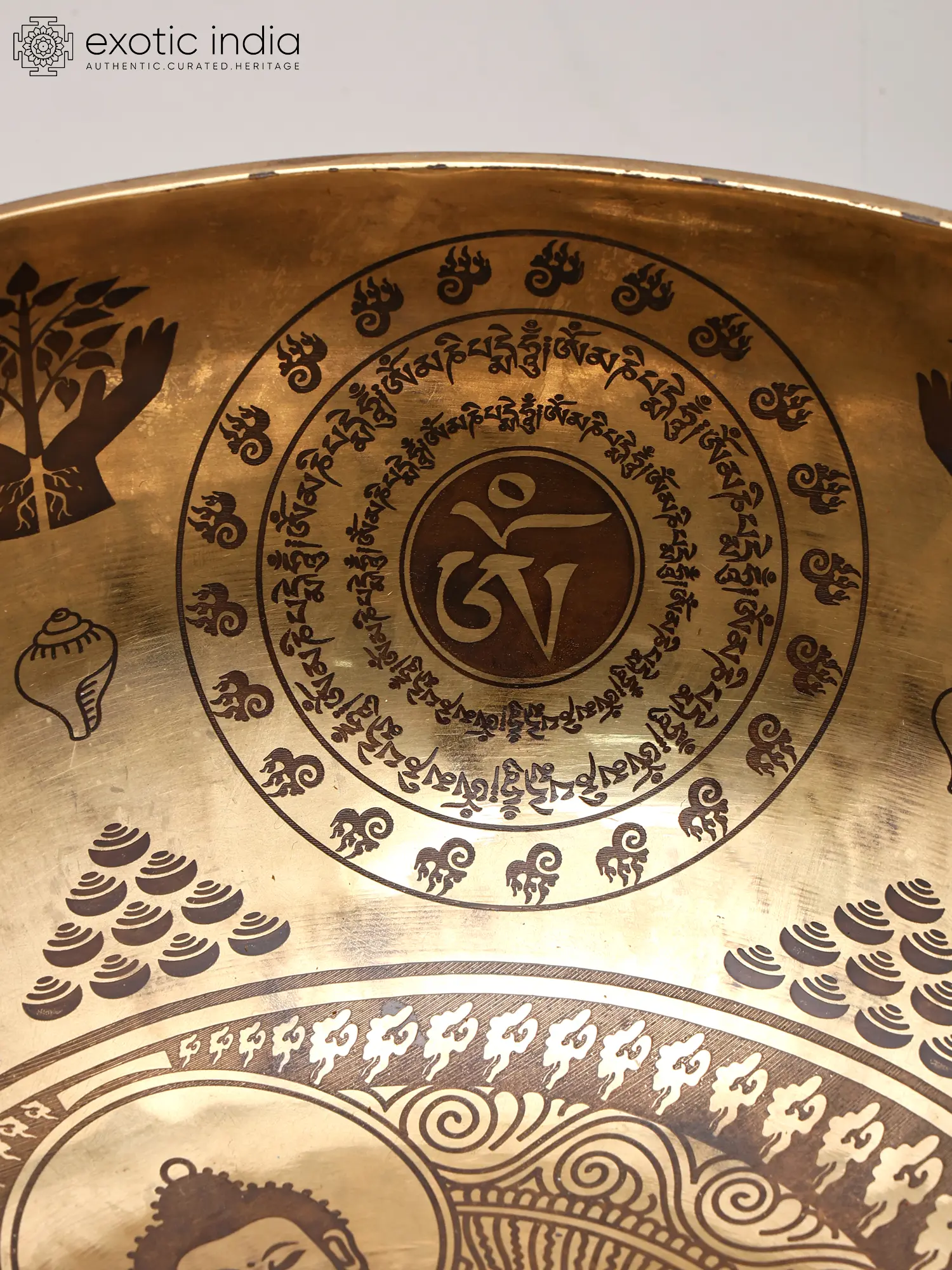 25" Large Superfine Tibetan Singing Bowl in Bronze with Carved Feet